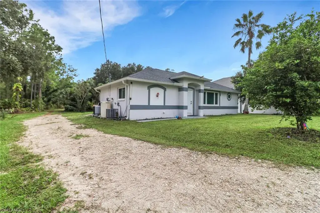 Welcome to this stunning single-family home set on 1.14 acres of 100% uplands in Golden Gate Estates. This 3-bedroom, 2-bath residence offers open living spaces, abundant natural light, and modern finishes throughout. The kitchen features white shaker cabinetry, granite countertops, and stainless-steel appliances.. The primary suite includes a walk-in closet and with dual sinks and a walk-in shower. Built with impact-resistant windows and a brand-new roof completed in 2023, this home combines style with peace of mind. Enjoy the Florida lifestyle with plenty of space for outdoor living, gardening, or a future pool. Conveniently located near schools, supermarkets, dining, and just a short drive to Naples’ white sandy beaches.