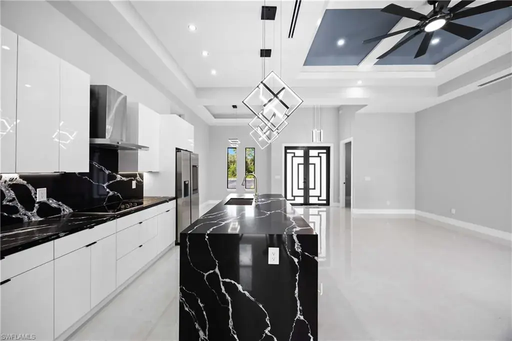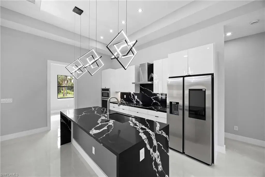 Nestled in the serene Golden Gate Estates, this stunning Stenwood New Construction offers the perfect blend of modern luxury and natural tranquility. This home features a one-of-a-kind design that stands out with its exceptional upgrades and modern finishes, making it truly unique. This home offers a 24′ asphalt driveway and a 16′ bayrock driveway that runs all the way to the end of the lot. Situated on an expansive 100% DRY LOT, this beautifully designed residence features 4 spacious bedrooms with custom made closets, a versatile den, and 3 elegantly appointed bathrooms. The open-concept layout boasts soaring ceilings with soffit in the master room, living and dinning room, fans thought the home, abundant natural light, and high-end finishes throughout. The gourmet kitchen is a chef’s dream, complete with sleek elegant quartz countertops, 42′ soft close cabinets with led light underneath, stainless steel appliances, and ample storage. Homes features a Reverse Osmosis Water System, gutters all around the home, sprinkler system, epoxy paint garage, high impact doors and windows as well as interiors and exteriors 8′ doors with 6′ baseboards, 24×48 porcelain tile and much more. Step outside to your private haven, where there’s plenty of space to create your ideal outdoor oasis. With no HOA restrictions, enjoy the freedom to personalize your property to suit your lifestyle. Conveniently located just minutes from Naples’ top-rated schools, shopping, dining, and world-class beaches, this home truly has it all. Don’t miss the opportunity to own your slice of paradise!
