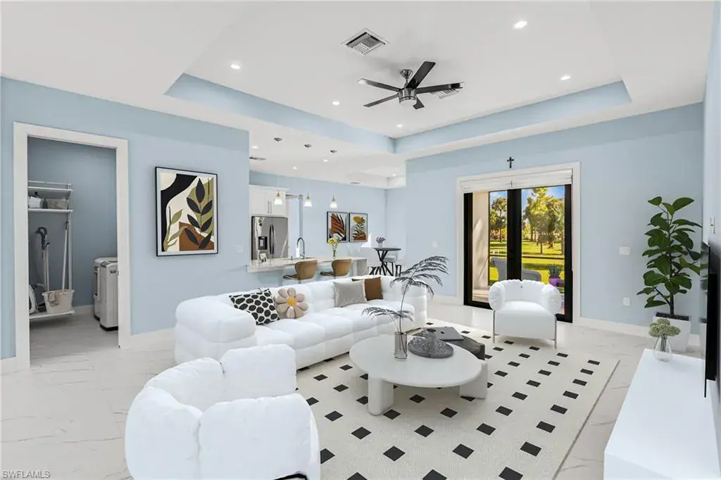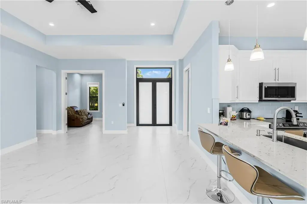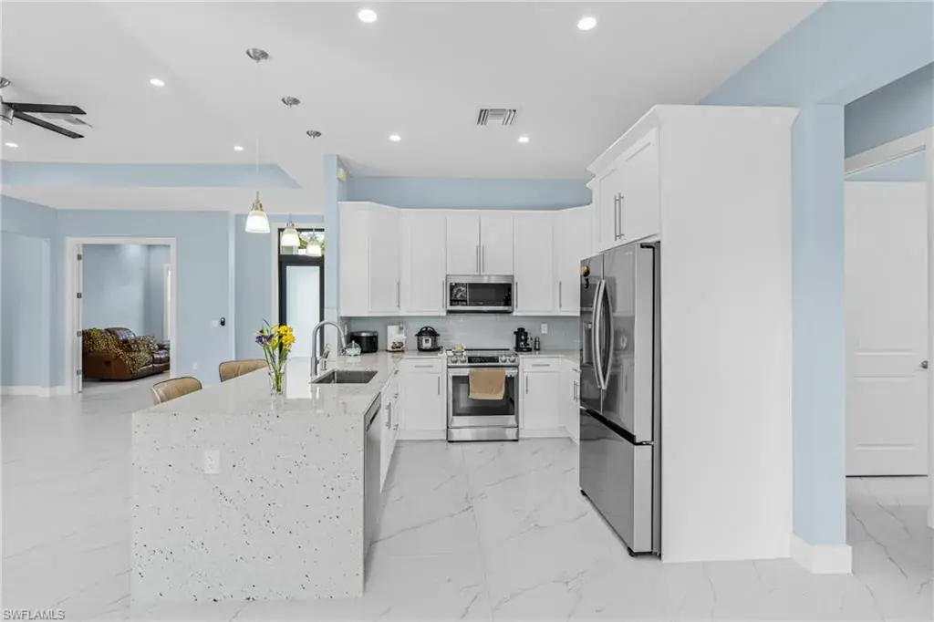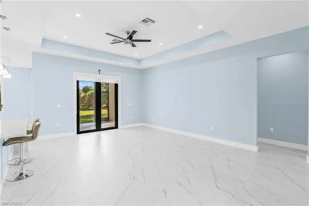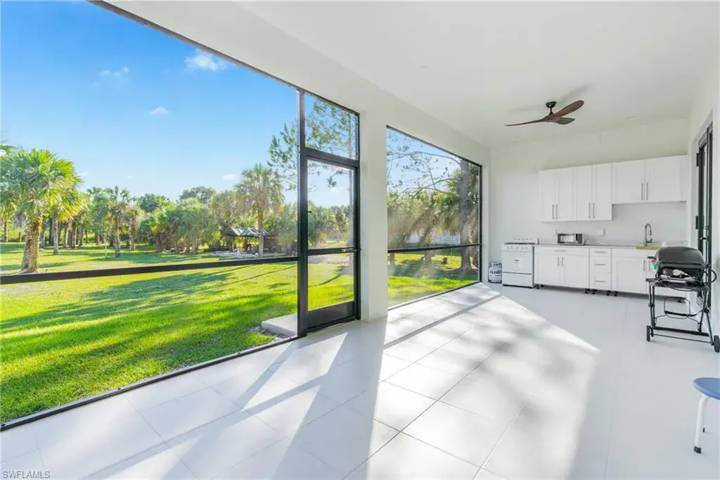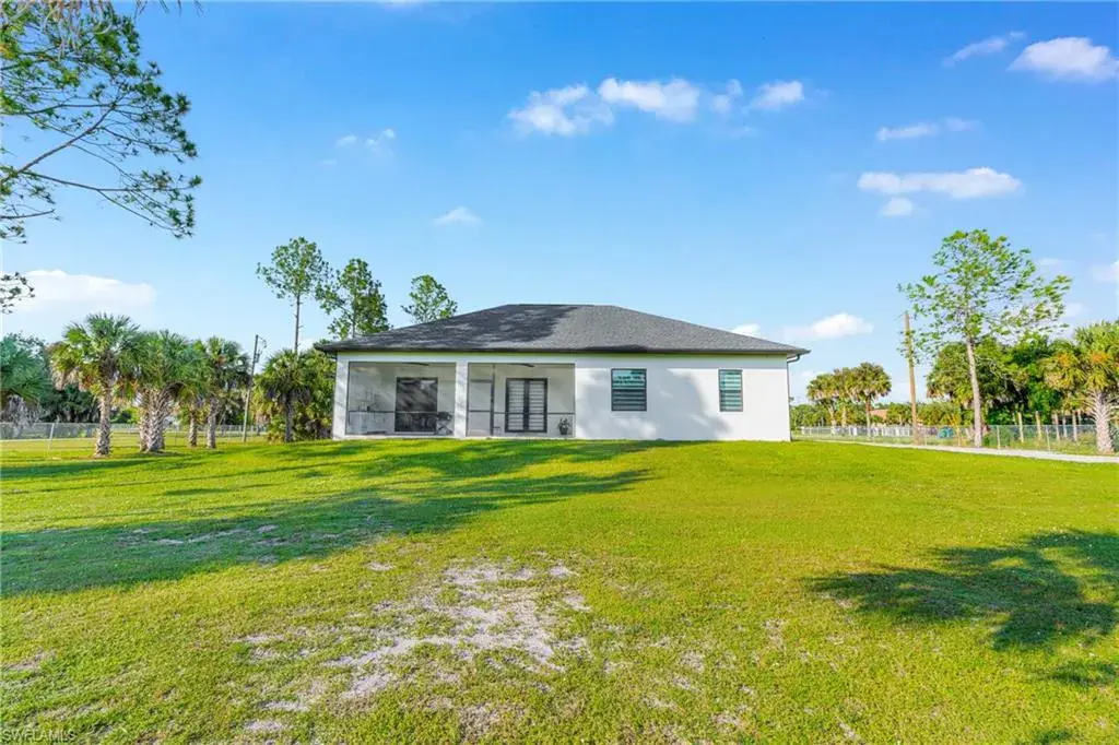 This stunning, beautifully maintained home offers 3 spacious bedrooms plus a versatile den or home office, along with 2 bathrooms, including a master suite with both a shower and soaking tub. The open formal living and dining areas feature elegant tray ceilings, tile floors, and abundant natural light, creating an inviting space for entertaining. The modern kitchen is equipped with stainless steel appliances and stylish cabinetry, while the large screened lanai—with a built-in wood cabinet, sink, and gas range—provides the perfect setting for outdoor dining and relaxation. Additional highlights include impact windows and doors, a 2-car garage with side entry, an automatic irrigation system, and an extra-large driveway with plenty of parking. Situated on a fully fenced 2.73-acre lot that is 100% upland, this property offers both privacy and ample space. Conveniently located near an elementary school and shopping centers, this exceptional home is truly a must-see!