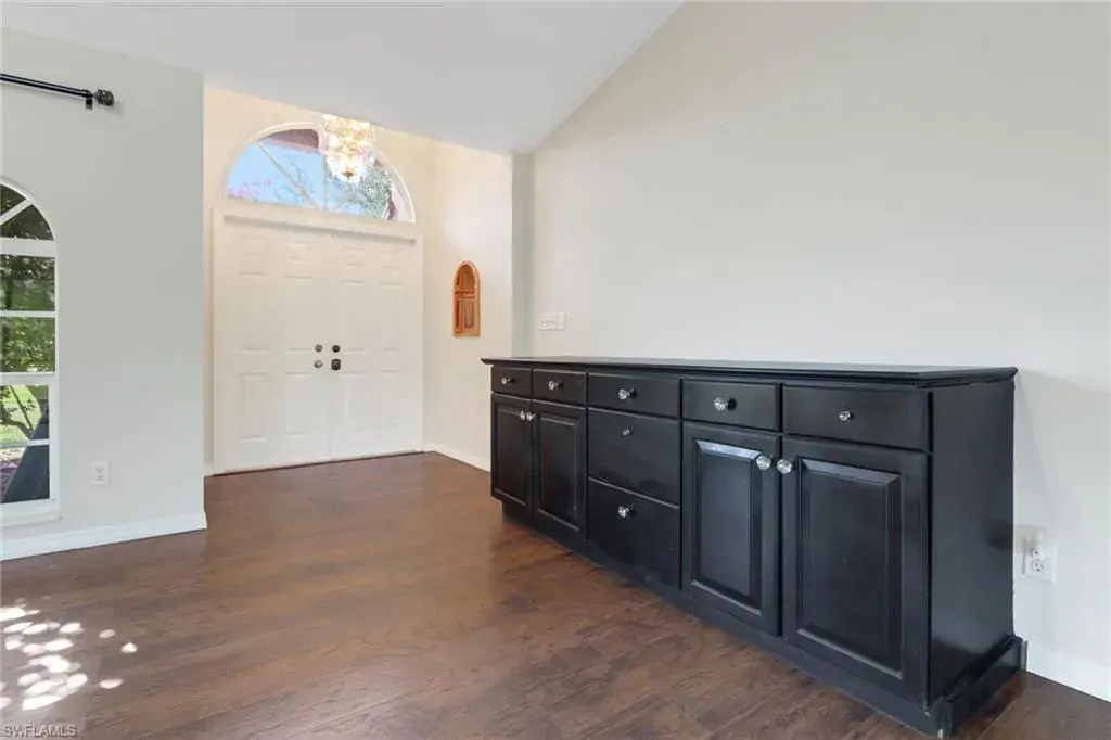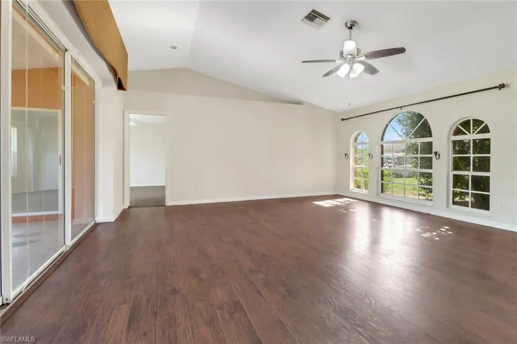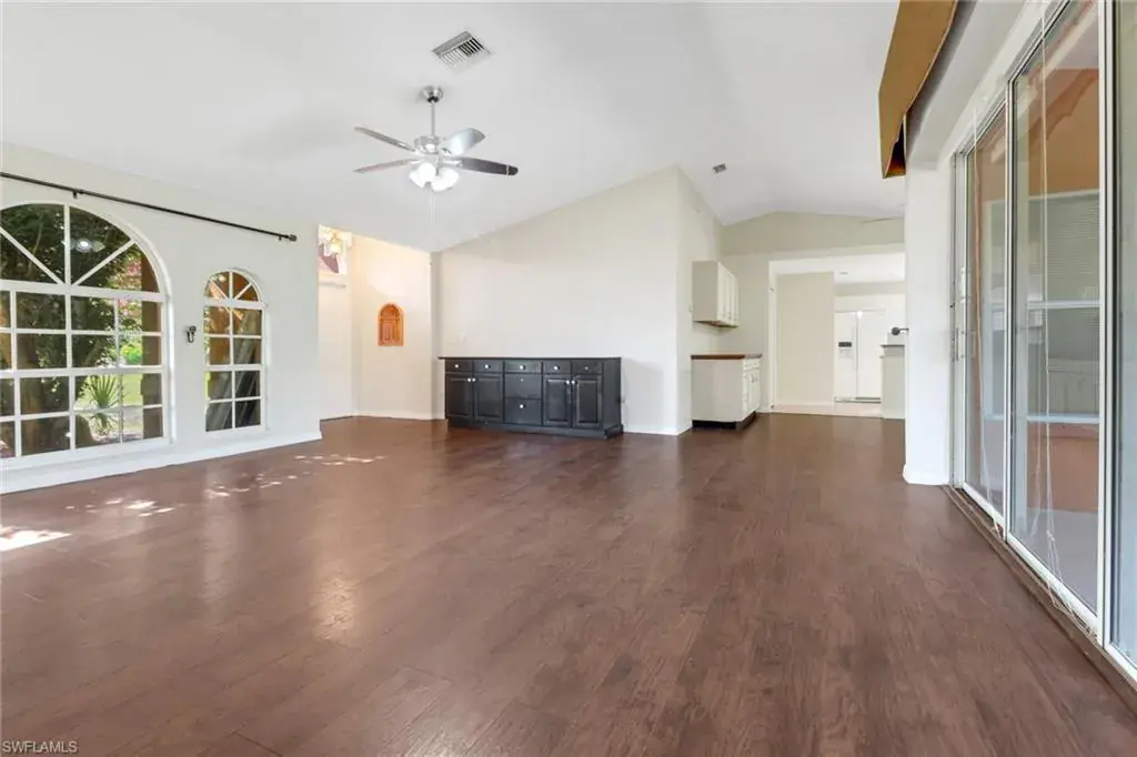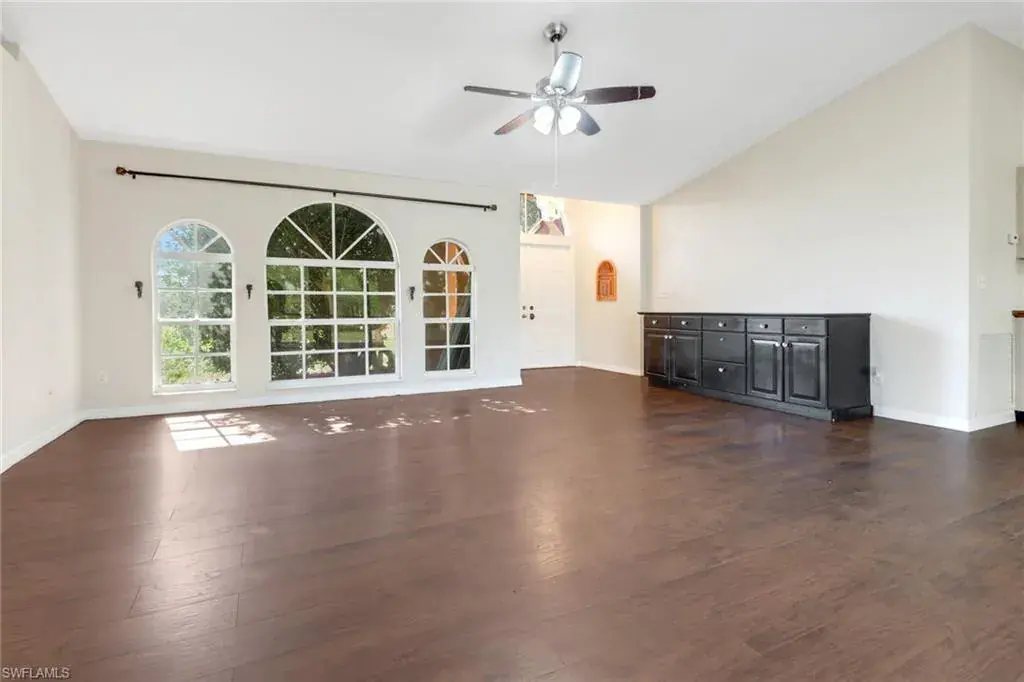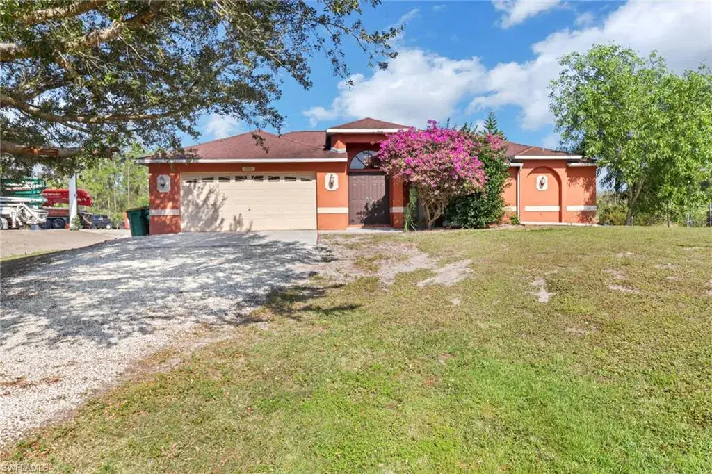ENDLESS POTENTIAL, NO RESTRICTIONS! Discover this exceptional home in Golden Gate Estates, offering a generous 1.59-acre lot and limitless possibilities for expansion or customization. This spacious three-bedroom, two-bathroom home features an open-concept floor plan, providing ample room to create the living space you’ve always dreamed of. The interior boasts neutral paint tones throughout, laminate wood flooring in the living areas, and brand-new carpeting in the bedrooms. Custom built-ins throughout the home offer convenient storage solutions. The home is equipped with a laundry room for added convenience, and the second bathroom is ideal as a potential pool bath should you choose to add a pool. The primary bedroom includes dual closets for extra storage space. Step outside through the large sliding glass doors to enjoy a screened lanai and an extended paver patio—perfect for outdoor entertaining. The expansive backyard is nearly fully cleared and partially fenced, offering plenty of space for future projects or activities. Located just minutes from the new Publix Shopping Center on Oilwell Road (under construction), less than 5 miles to the new and upcoming shopping center The Randall at Orangetree and Winchester Center, and only 8 miles to the Arthrex Manufacturing Center, this home provides easy access to shopping, dining, and employment hubs. Whether you’re looking to create your dream home or need space for a home business, this property is the perfect opportunity to make it your own.