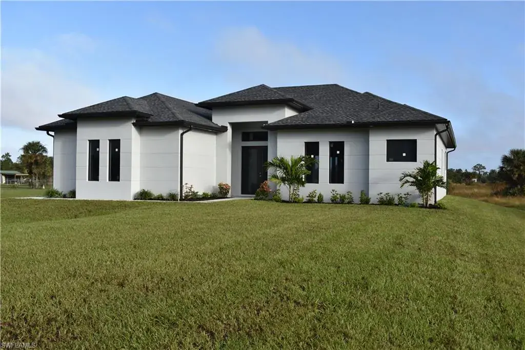 New construction in Golden Gate estates. The house has almost 2000 sqft of living area, 3 bedroom with a den/office and 2.5 baths 2.27 acres of land. Asphalt driveway with shingle roof and impact windows and doors. Porcelain tile through the house and shower walls, wood shaker cabinets, quartz granite countertops.