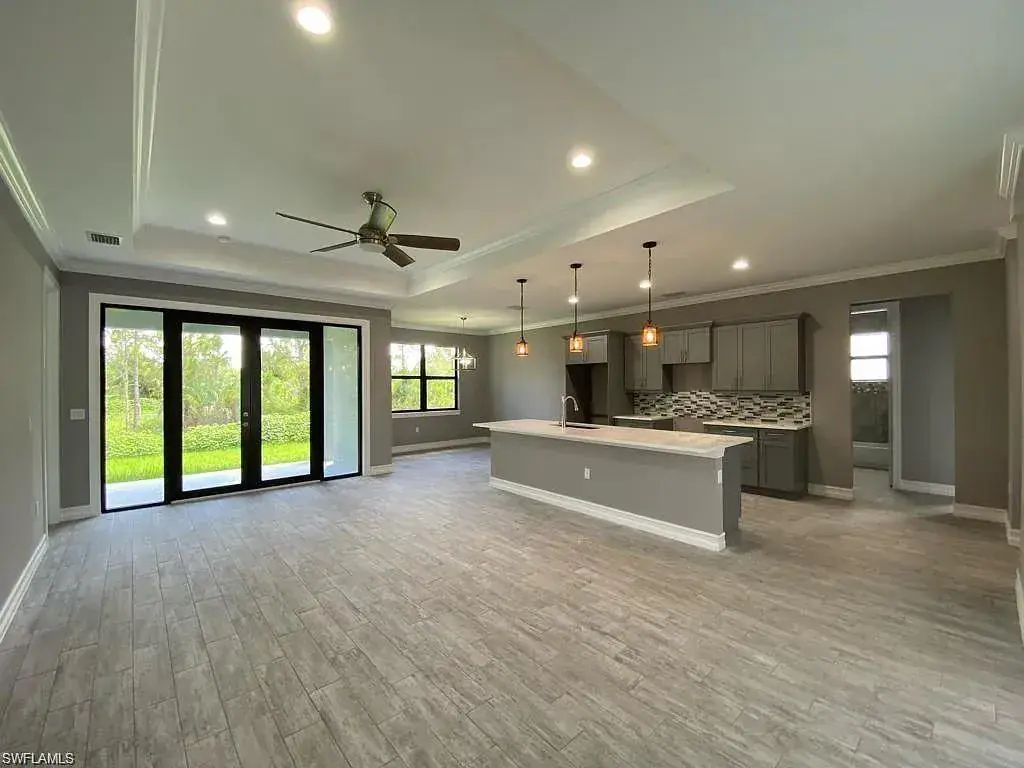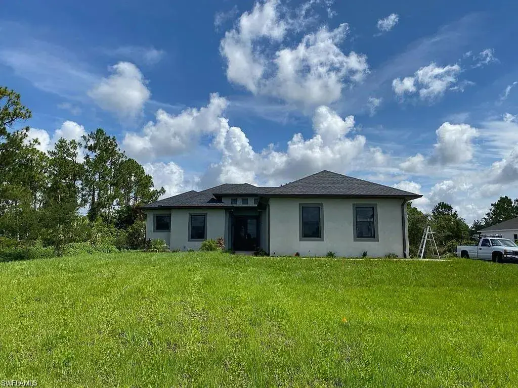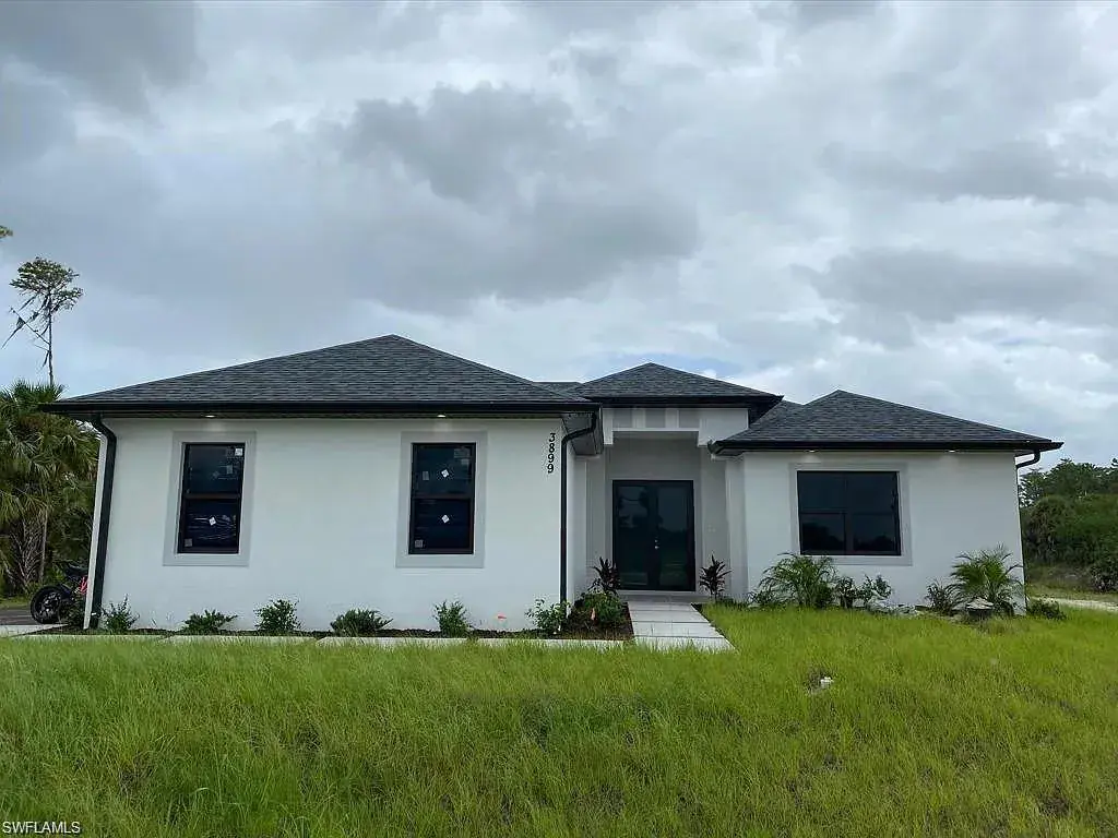 PRE-CONSTRUCTION HOME being built in the area of Golden Gate Estates, will feature 3 bedrooms + Den, 2 bath, & 2 car garage! Living area of 1,656 sq.ft and a grand total of 2,398 sq.ft. Upgrades include 24×24 porcelain tile throughout, crown molding, quartz countertops, stainless steel appliances, and solid wood cabinets! The kitchen will have 2 pantries. The living room and master suite will boast tray ceilings. Master wing will feature an oversized bedroom, 1 spacious closet, double vanity, and glass door enclosed shower. The outside of this home will not disappoint either with a beautiful landscape, auto sprinkler system, and a summer kitchen in the large lanai. Impact resistant windows/doors! Your brand new home will be ready in March 2023! Photos are from previous but same model home.