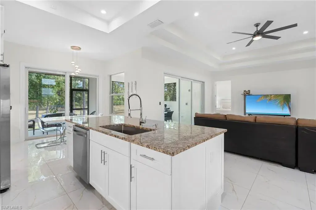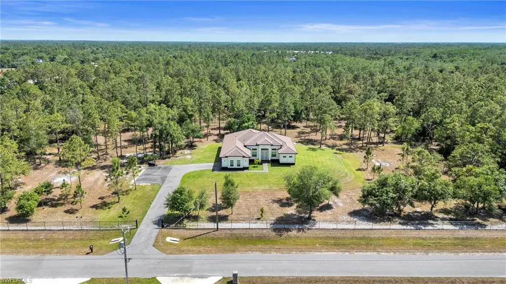 – – – >Only 2-year-old (!!!) modern and stylish 4-bed+den/3-bath Naples’s estate on 5+ acre corner lot with 2-car garage!  The largest and newest available with acreage in its price range and only 30 minutes from the beach for you to enjoy the best of West Coast, Florida! Besides the safety offered by newest building codes and high impact windows and doors, this stunning estate offers upgraded living spaces with 14-feet high ceiling on foyer and 12 feet high ceilings in other living areas, open kitchen with granite counter tops and grand island w state-of-the-art Samsung appliances and LG washer & dryer in laundry room under AC, 24×24 white porcelain floors through-out, split plan, master suite with walk-in closets for him and (x-large) walk-in closet for her and a spacious master bath with x-large dual shower and x-large vanity  4th bedroom has its own bath and to better enjoy Florida outdoor life, a large L-shaped lanai extension (screened and covered patio) with ceiling fans for you to enjoy dinner-al-fresco or BBQ, rain or shine! Lot starts on Everglades Blvd, and it can be sub-divided. Ready to buy your own paradise, equestrian property or retreat? Prperty website w video and floorplan available!