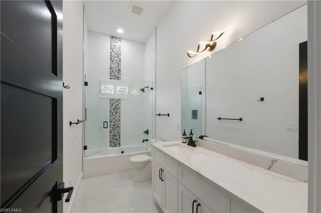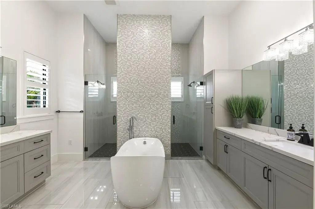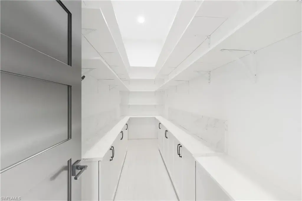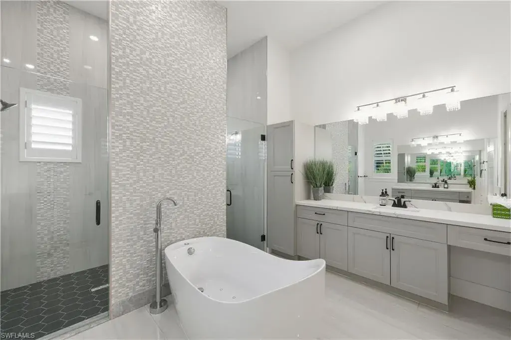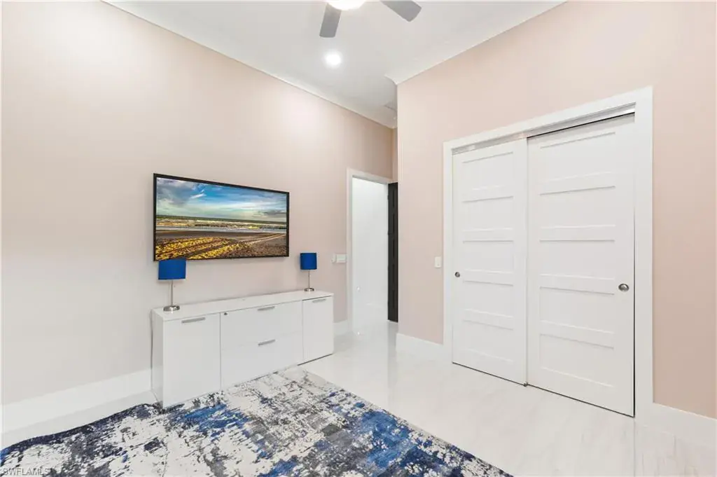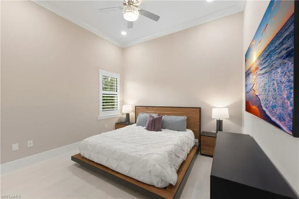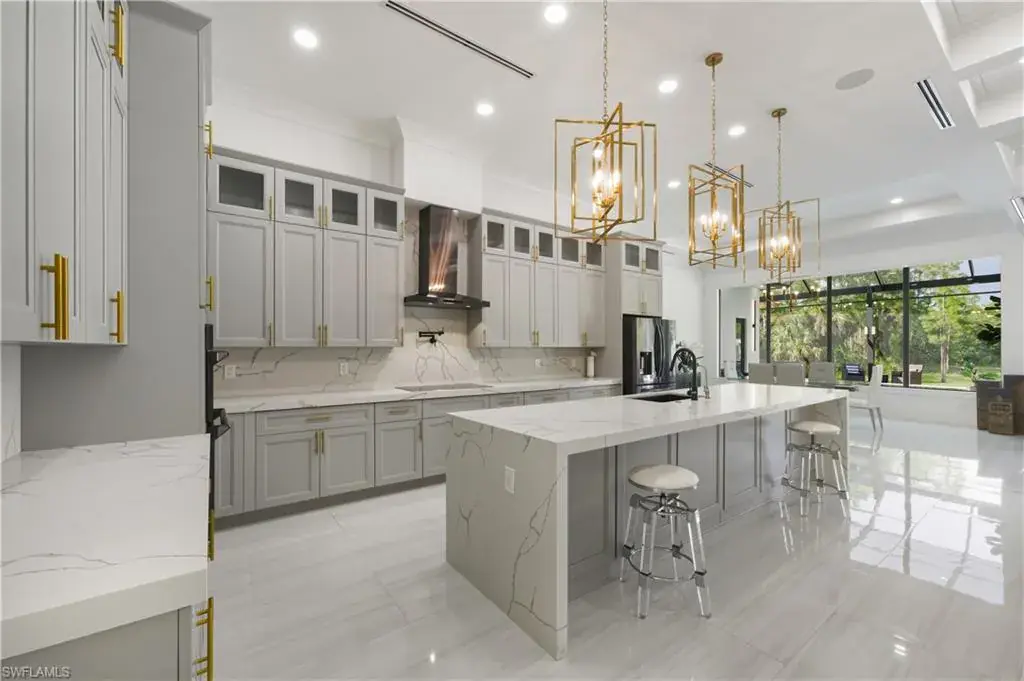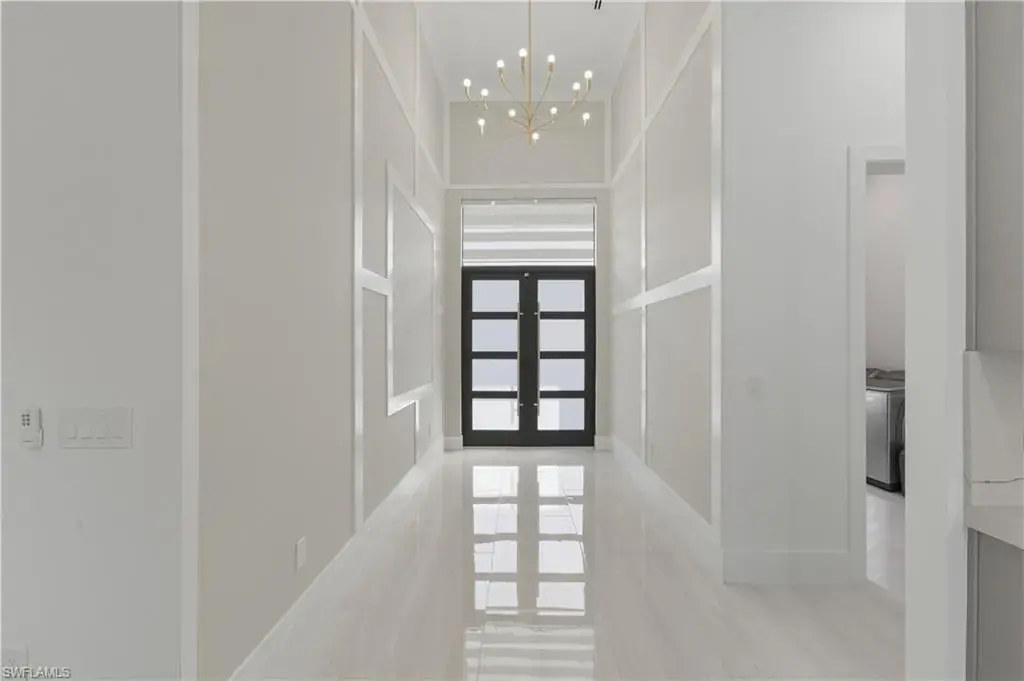 Experience unparalleled luxury and privacy in this custom-built 4-bedroom plus Den, 3-bathroom contemporary estate, perfectly set on 100% upland, 2.74 gated acres along a tranquil canal in Golden Gate Estates. Completed in 2021, this home boasts exceptional infrastructure including a resilient metal roof, energy-efficient solar panels, and a whole house generator for complete peace of mind. For ultimate protection, the entire home features impact doors and windows. The property offers an impressive and secure entrance with a private gate and an expansive pavered wrap around driveway. The heart of the home is the upgraded chef’s kitchen, featuring a large island and a large walk-in pantry, perfect for gourmet cooking. The magnificent interior showcases high ceilings and beautiful coffered ceilings throughout. The massive primary suite provides a true sanctuary, complete with a huge walk-in closet with a dedicated sitting area. Modern convenience is further enhanced by a tankless water heater. Outdoor living is elevated with a screened lanai, pool, spa, and a complete outdoor kitchen. The grounds feature a private fenced area, ideal for pets or play, and offer exclusive walking trails through the back acreage. Car enthusiasts will love the oversized 3-car garage, converted into an air-conditioned “dream garage,” complemented by two additional air-conditioned storage units for climate-controlled storage. This estate is a rare find, combining expansive acreage, high-end upgrades, and waterfront.
