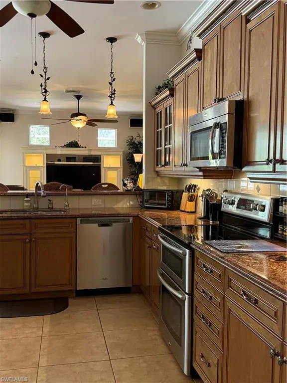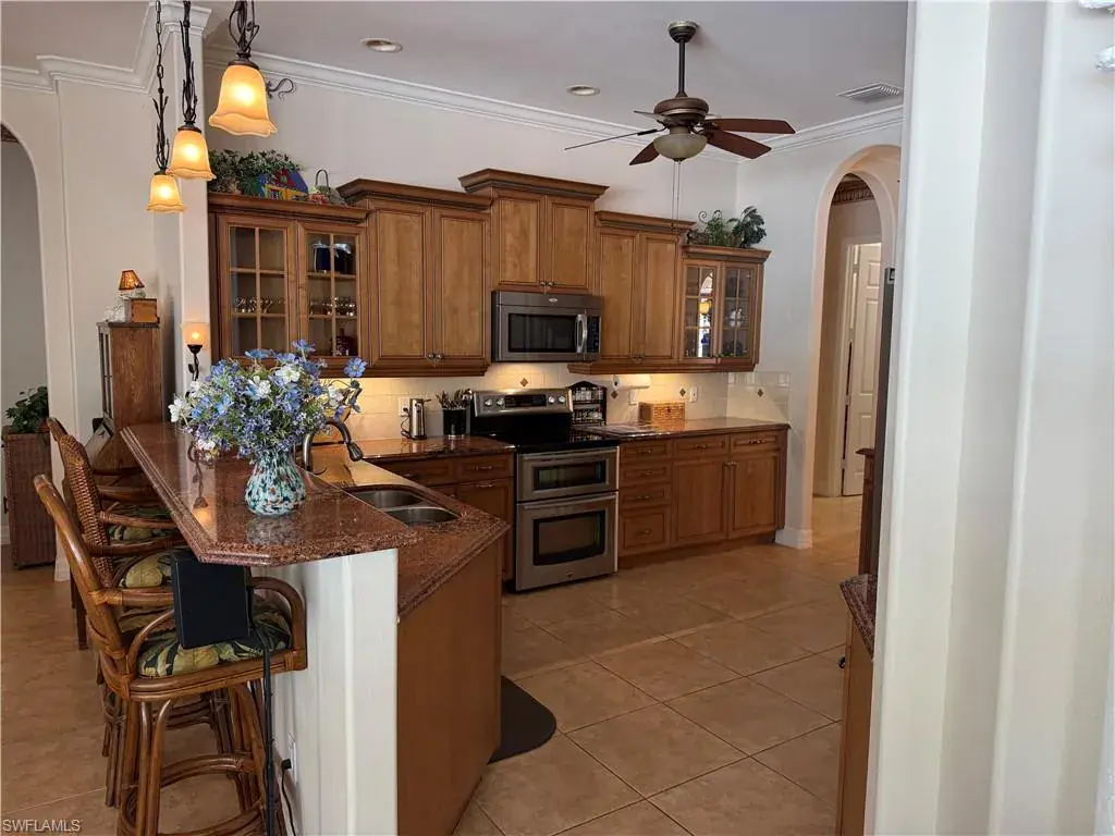 The backyard oasis provides ultimate privacy around the heated pool and spa, enhanced by a new screen and Smart Screen Hurricane Fabric. Additional highlights include landscape lighting, a Kinetico RO water system, a solar water heater, a front gate with a video interface, and an 8-zone sprinkler system. The home is comfortably climate-controlled year-round with two AC units—a 4-ton unit installed in 2018 and a 2.5-ton unit installed in 2020.