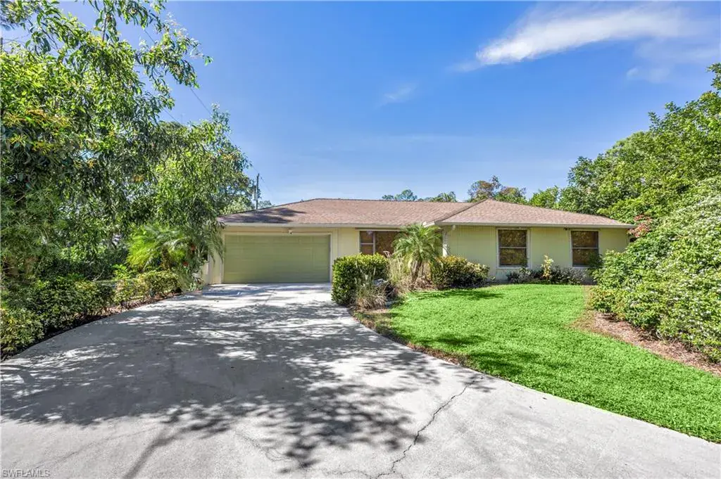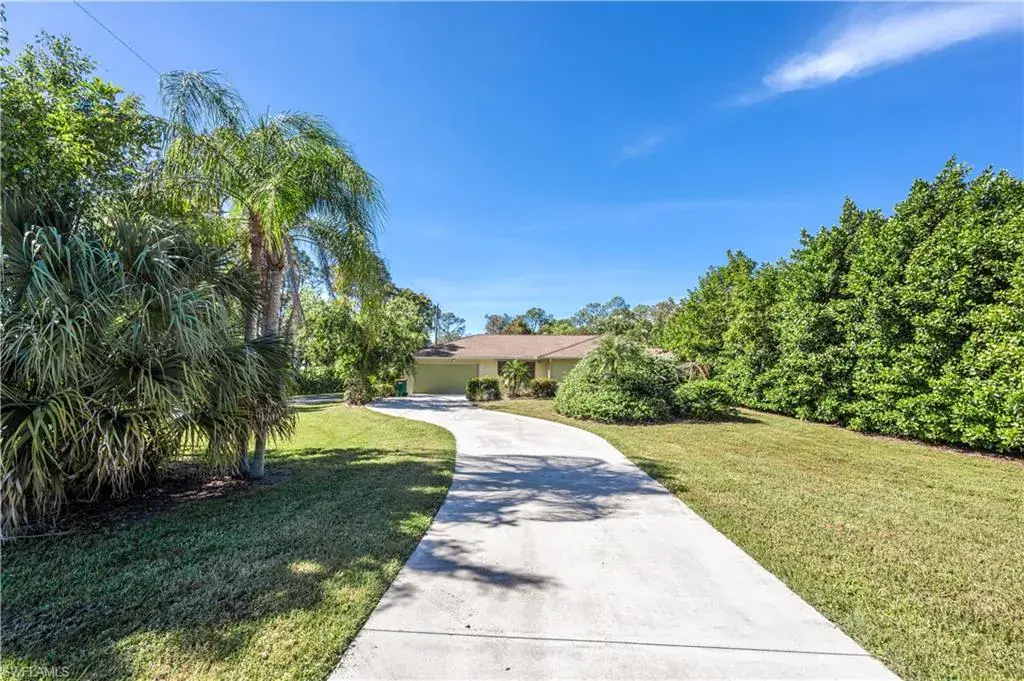 This charming 3-bedroom, 2-bathroom home in Golden Gate Estates offers 1,326 sq ft of living space, plus an additional 333 sq ft of screened lanai and pool area, totaling 1,659 sq ft. Set on 1.14 acres with a fenced backyard, it provides plenty of privacy, room for outdoor living and growth. The home features an updated kitchen, inviting screened lanai, and a private pool, ideal for entertaining. With a two-car garage and close proximity to Naples’ beaches, shopping, dining, and major roads, this property offers the perfect balance of comfort and convenience. Don’t miss out! Updated landscaping and septic tank pumped and inspected 5/2025. Well water pump and pool pump 1 years old.