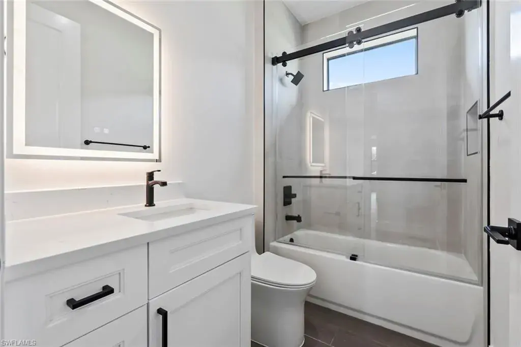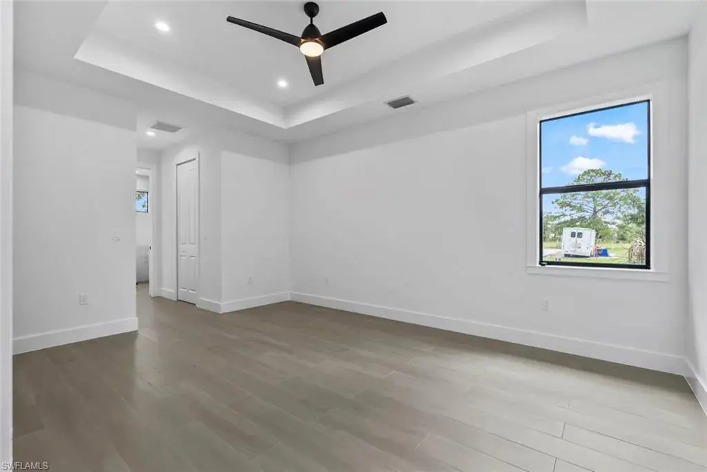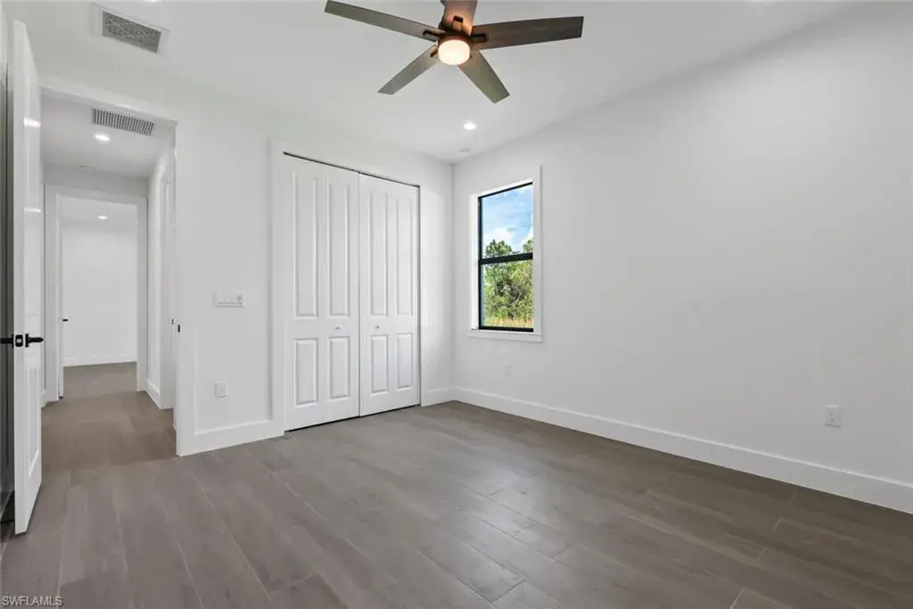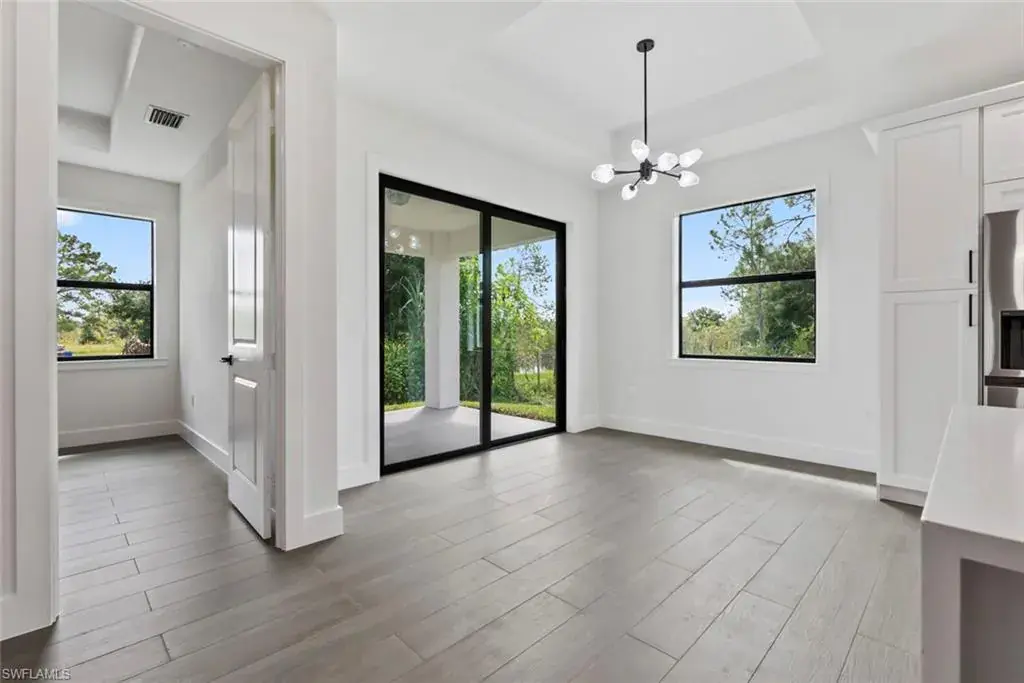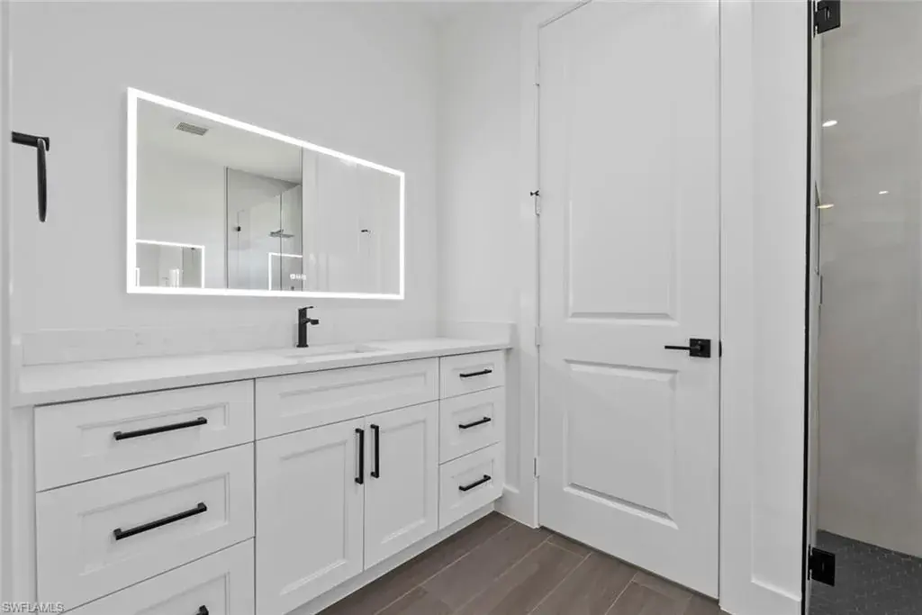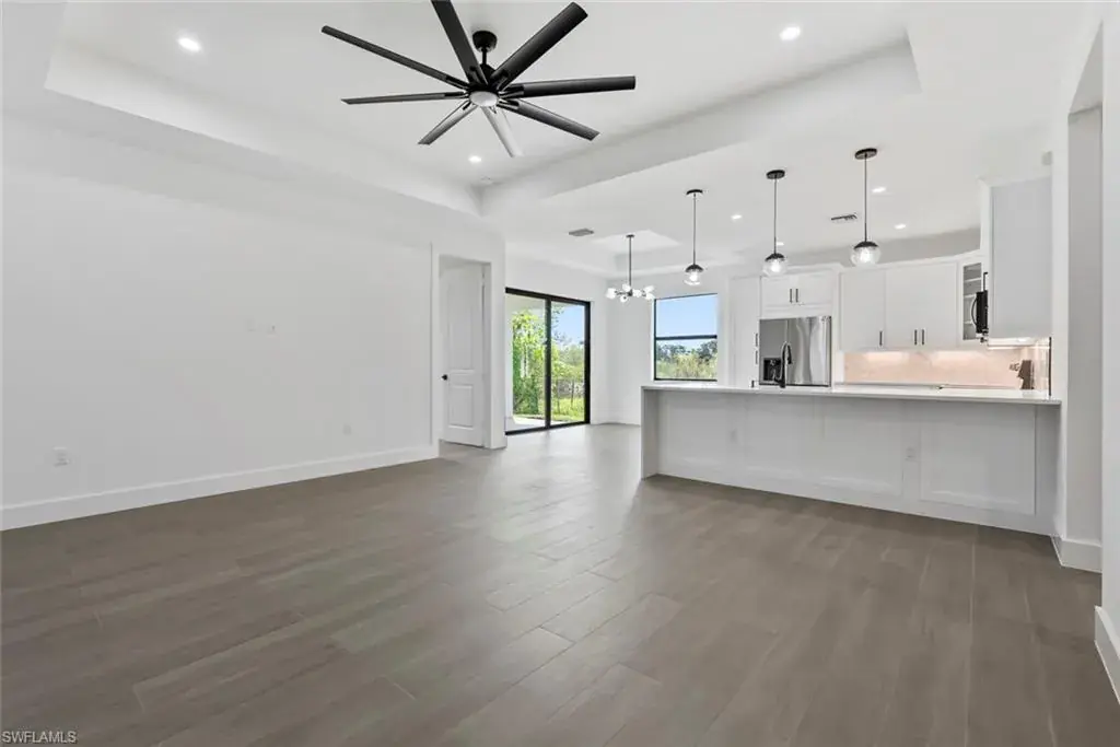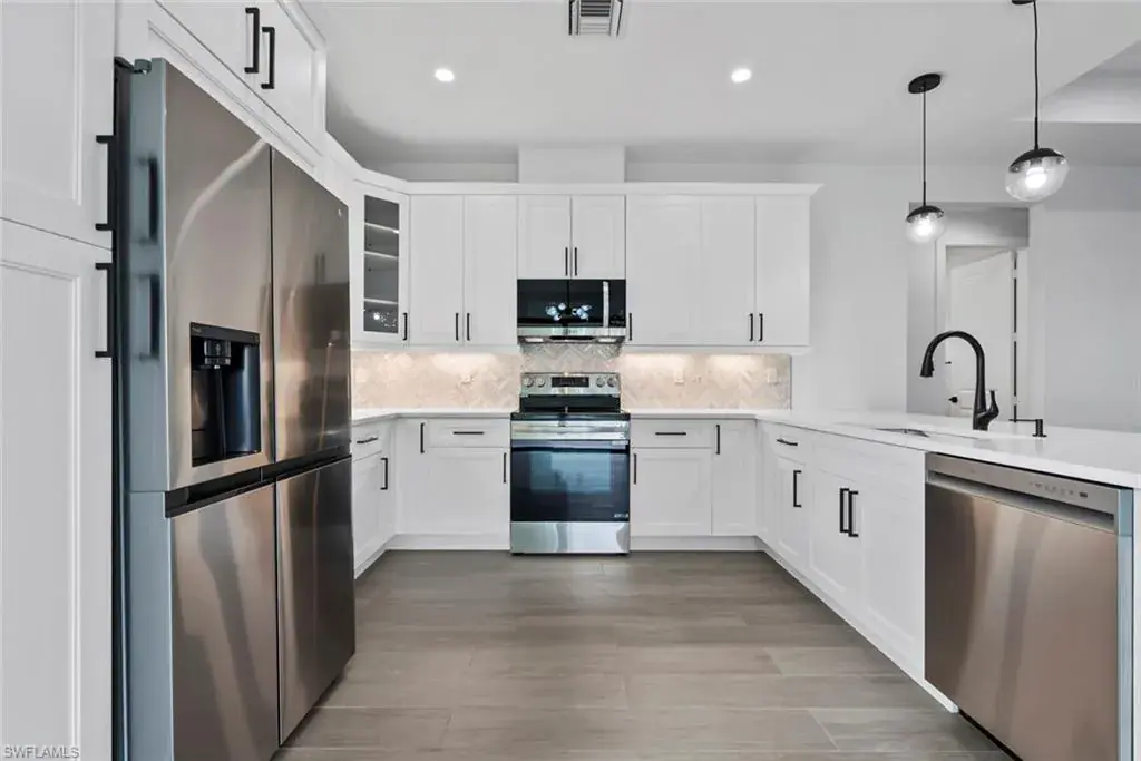 Welcome to your dream home in Naples, Florida! This stunning new construction is 100% completed and offers 3 bedrooms and 2 baths on a 1.14 acres lot that is 100% uplands! The kitchen is equipped with LG stainless steel appliances, 42″ wood cabinets, and striking quartz waterfall countertops with under cabinet lighting offering a unique combination for cooking and entertaining. Porcelain tile floors throughout the home add a touch of elegance and sophistication. The primary suite is a luxurious retreat, featuring dual walk-in closets, dual vanities, and an walk-in shower with tempered glass. On the other side of the home, you’ll find two additional spacious bedrooms and a guest bathroom. This property includes exceptional upgrades, such as: hurricane impact-resistant windows and doors, a whole-house reverse osmosis system and full broadcast epoxy garage floors!