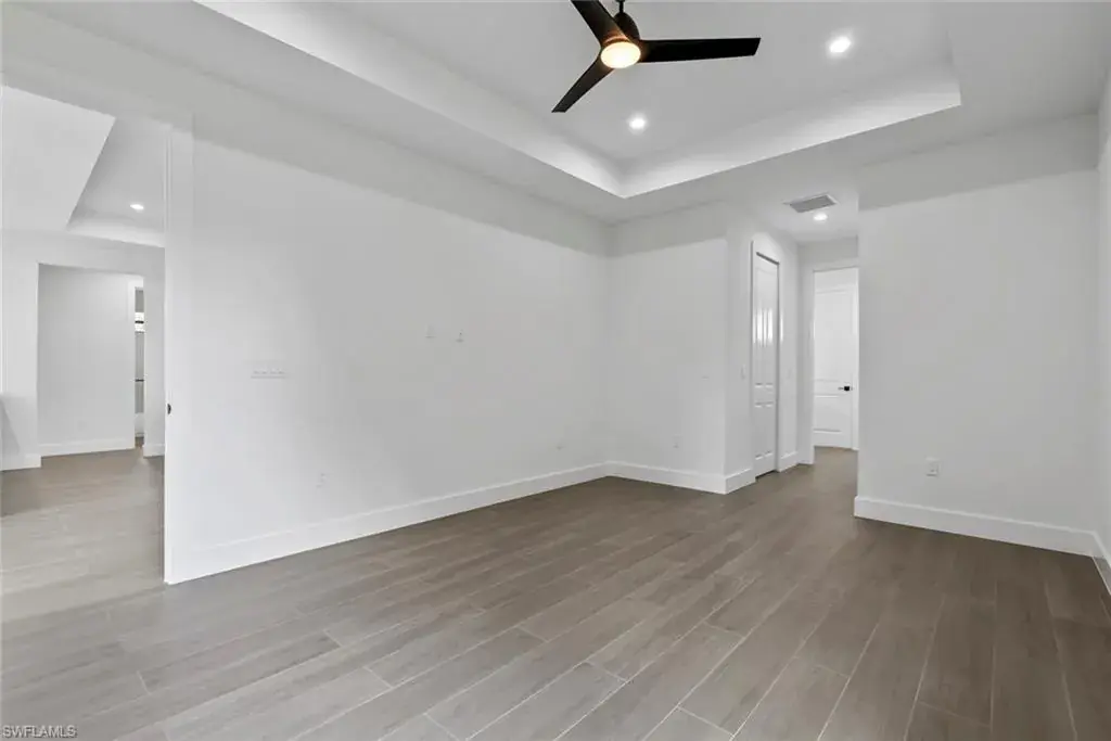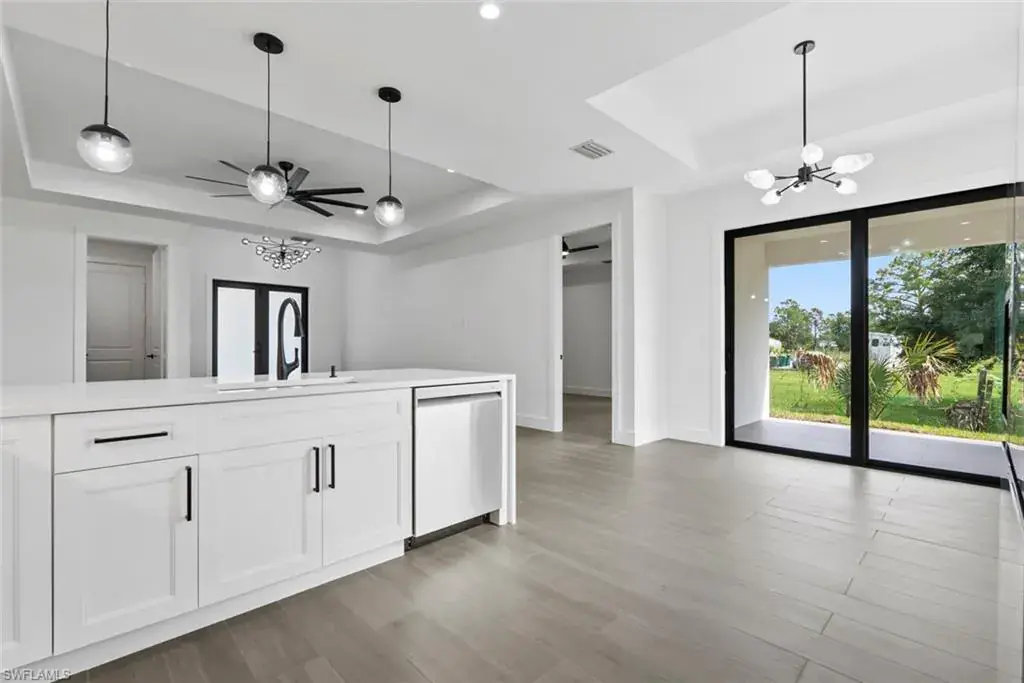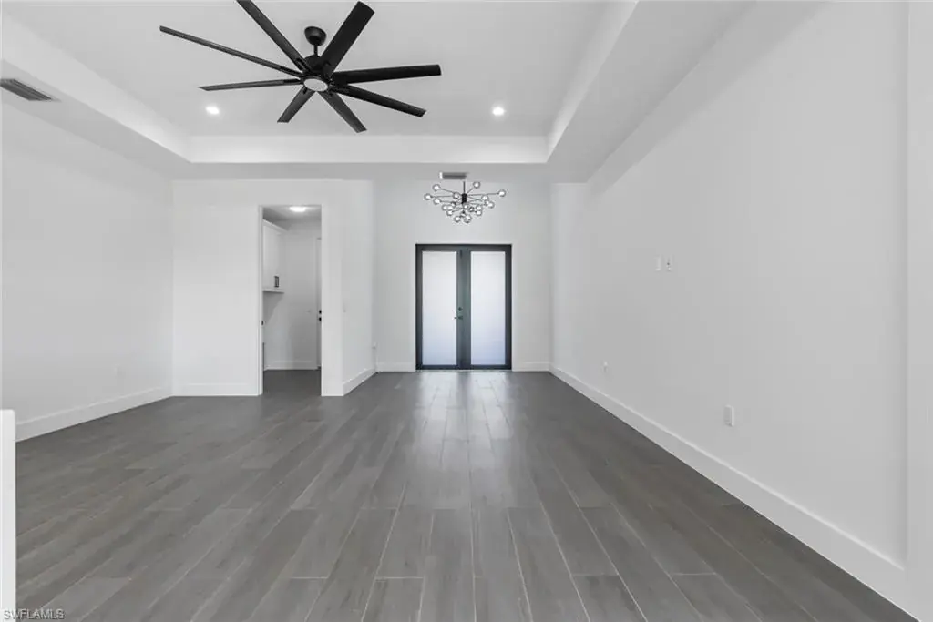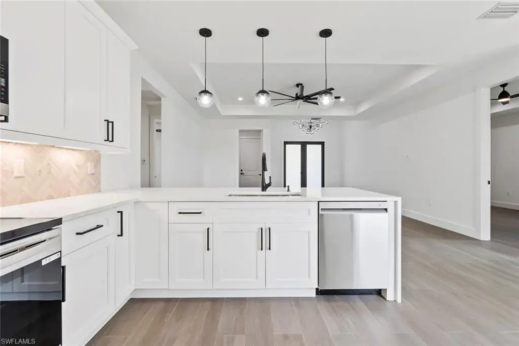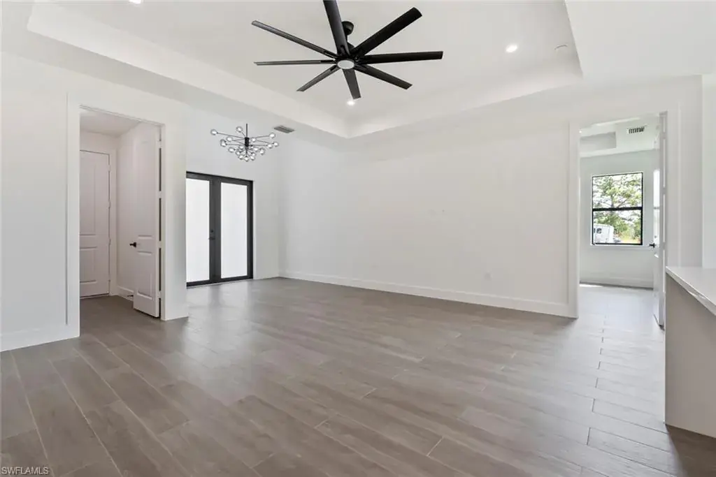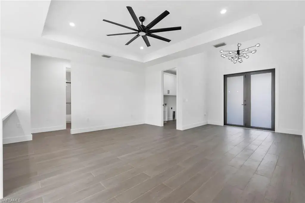 Welcome to your dream home in Naples, Florida! This stunning new construction is 100% completed and offers 3 bedrooms and 2 baths on a 1.14 acres lot that is 100% uplands! The kitchen is equipped with LG stainless steel appliances, 42″ wood cabinets, and striking quartz waterfall countertops with under cabinet lighting offering a unique combination for cooking and entertaining. Porcelain tile floors throughout the home add a touch of elegance and sophistication. The primary suite is a luxurious retreat, featuring dual walk-in closets, dual vanities, and an walk-in shower with tempered glass. On the other side of the home, you’ll find two additional spacious bedrooms and a guest bathroom. This property includes exceptional upgrades, such as: hurricane impact-resistant windows and doors, a whole-house reverse osmosis system and full broadcast epoxy garage floors!