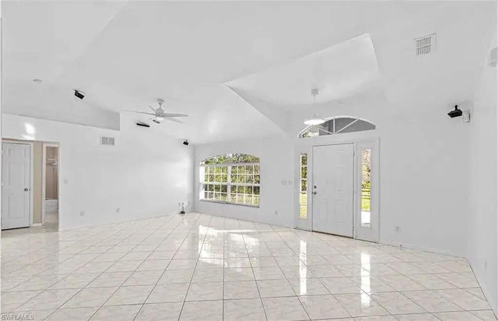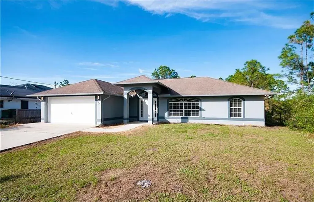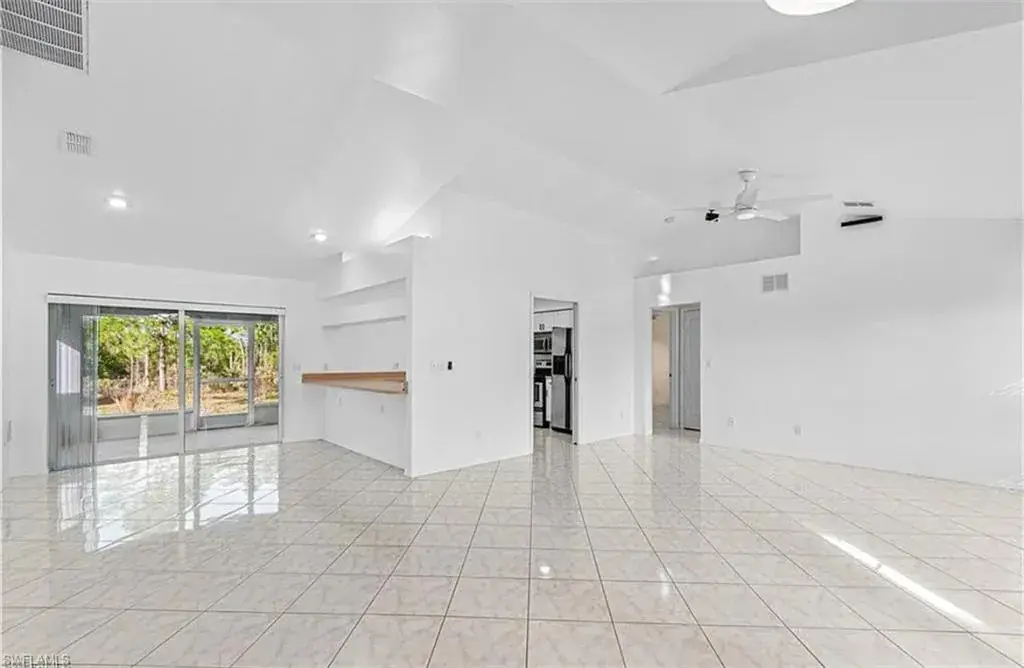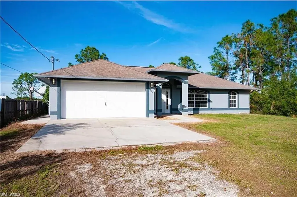 Set on spacious 1.14-acre lot in the heart of Golden Gate Estates, this charming 3-bedroom, 2-bath home offers the perfect blend of comfort and convenience. With 1,425 square feet of living space, the interior is bright and welcoming, featuring tile floors throughout and a vaulted ceiling in the main living and dining areas that adds a sense of openness and flow. The kitchen is both stylish and functional, complete with a tray ceiling, stainless steel appliances, pantry, and a convenient pass-through bar for casual dining or entertaining. You’ll also appreciate the dedicated laundry room and a 2-car garage that comes equipped with removable hurricane shutters for added security. Outside, the FULLY FENCED YARD offers plenty of room to spread out—whether you’re dreaming of a garden, a pool, or just space to enjoy the Florida sunshine. And when you’re ready to explore, BIG CORKSCREW ISLAND PARK is just minutes away, offering an incredible aquatic complex, athletic fields, shaded pavilions, and the largest playground in Collier County. This is a home where comfort meets lifestyle—and it’s ready for you to make it your own.