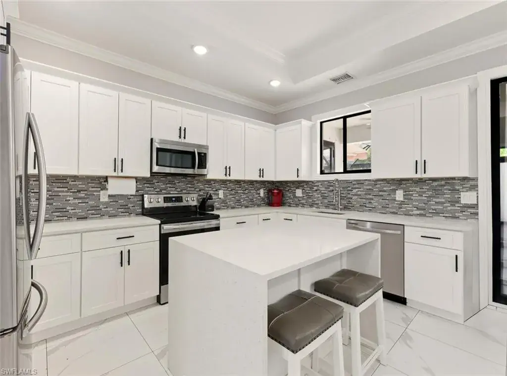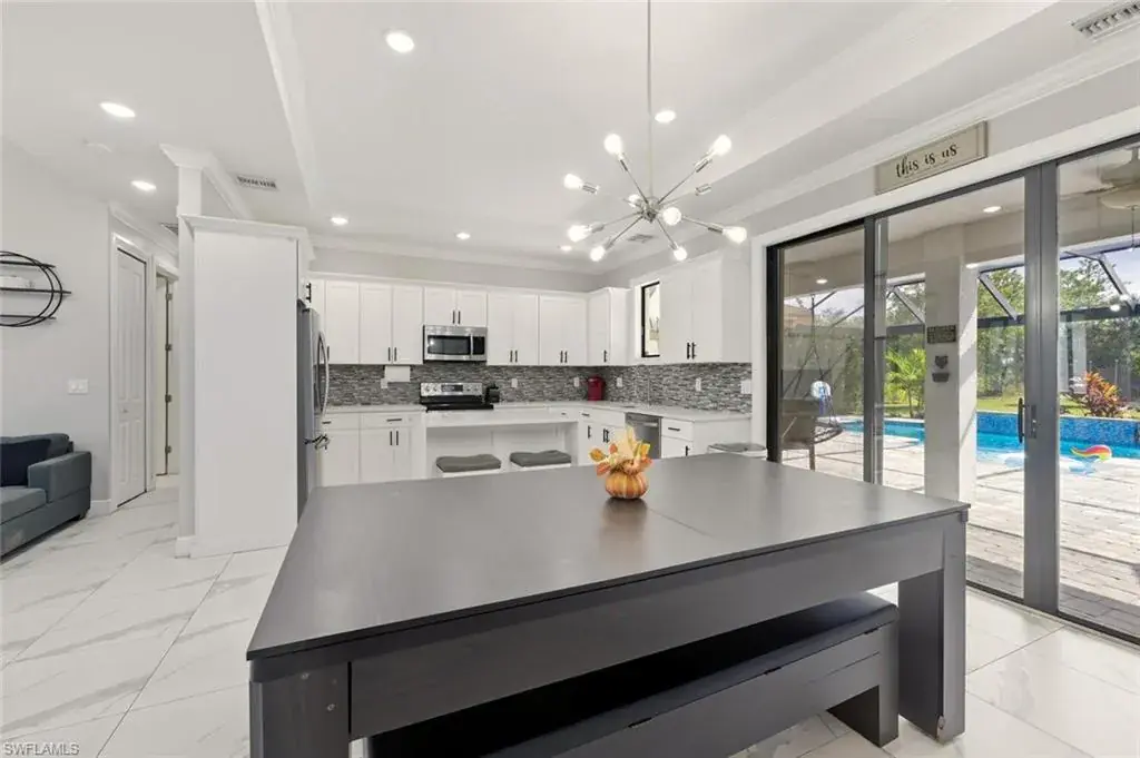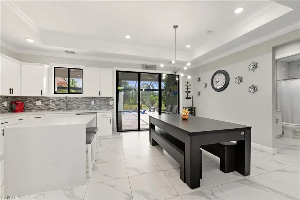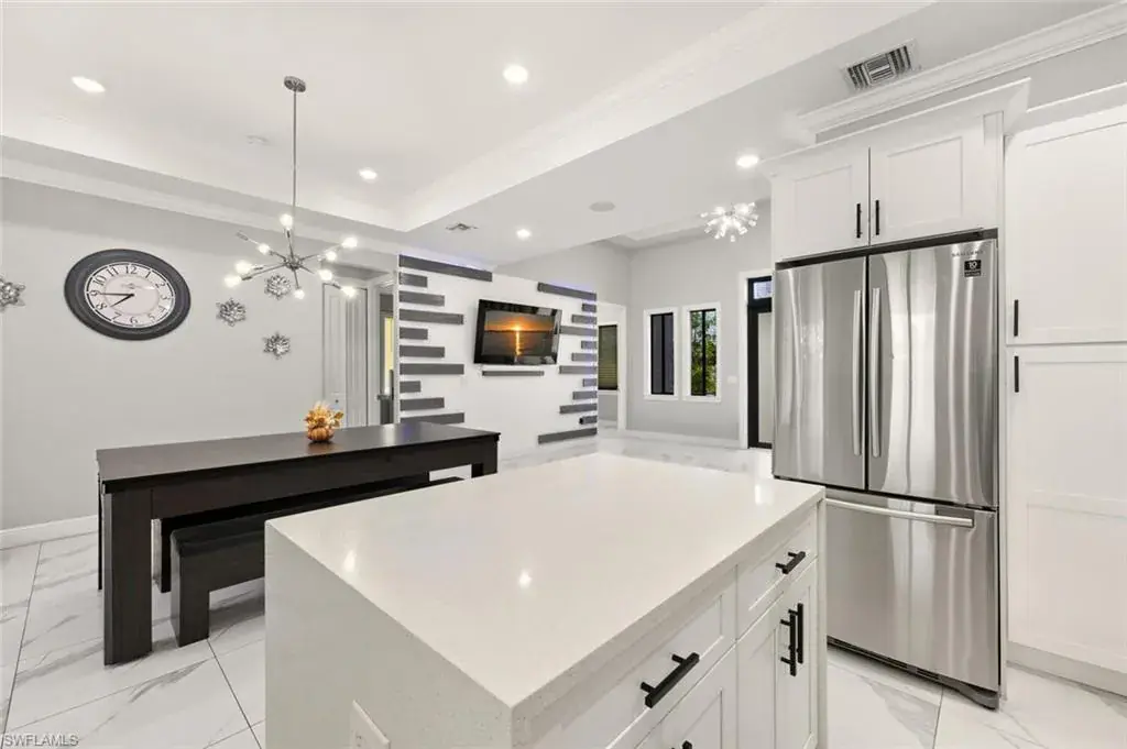 Beautiful 3BR + Den, 2BA home on 2.58 acres of 100% upland in Golden Gate Estates with no HOA fees! Great curb appeal with lush landscaped trees, huge palms lining an extended asphalt driveway with plenty of parking. Inside the home features an open floor plan with high ceilings, quartz kitchen countertops with stainless steel appliances and a dining/kitchen combo. There is also a den which is ideal for guests or your own home office! The main bedroom offers private entry with high ceilings, dual walk-in closets and beautiful main bathroom.Now, step outside to your own private retreat with a screened-in patio, saltwater pool with sun shelf for sunbathing, lush landscaping, and side privacy screens.Home also features a 2-car garage. Prime location just minutes to the new Publix and future shopping centers!