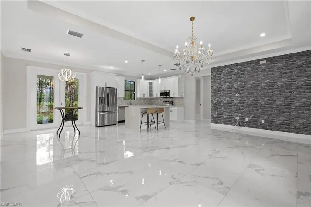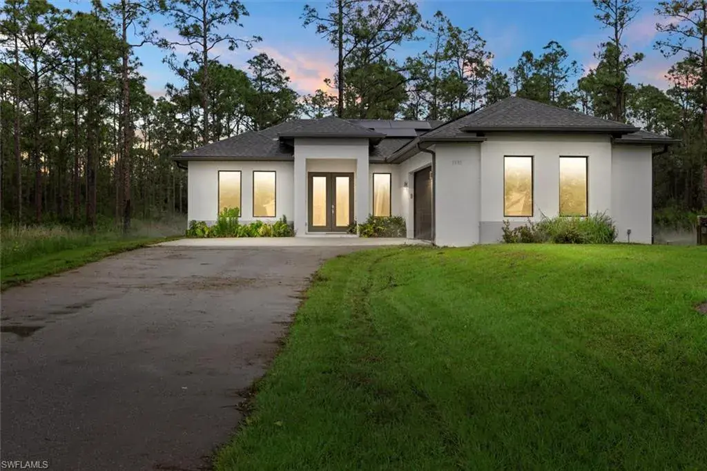 This modern 3 bedroom, 2 bathroom home sits on a spacious 1.59-acre lot in a fast-growing area of Naples, where many new homes are being built. The home features an open layout with large windows that brings in lots of natural light, giving the space a bright and welcoming feel. Each bedroom is generously sized, and there’s a bonus room that’s perfect for a home office, playroom, or extra storage.