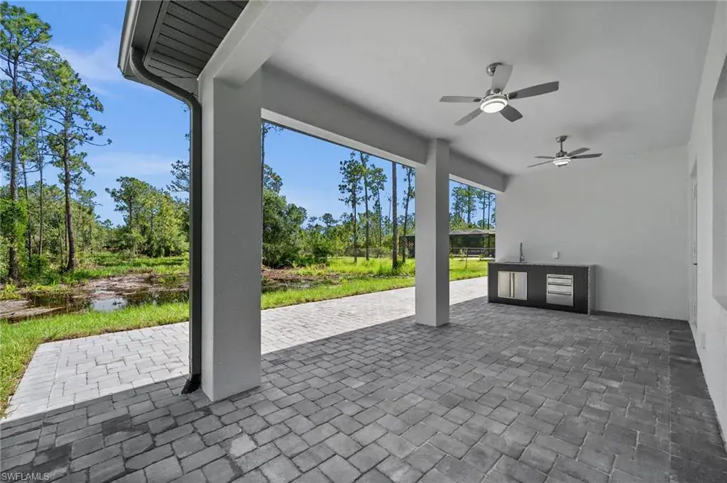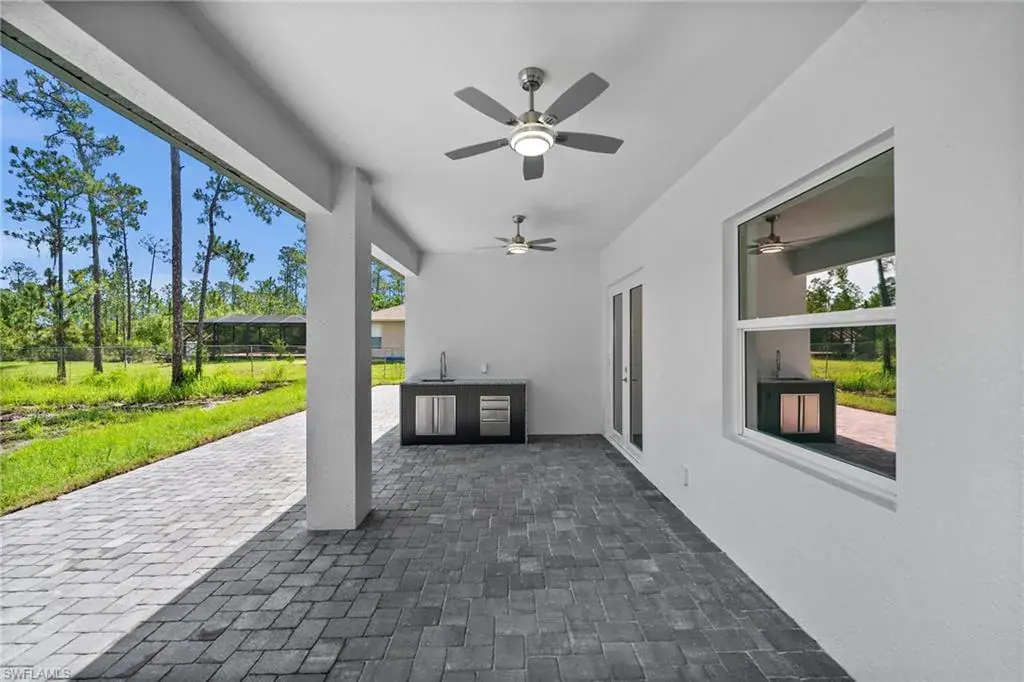 READY TO MOVE IN! Discover the unique Nova model featuring 4 bedrooms and 3 full-bathrooms located in the very desirable Golden Gate Estates. The property sits on a 100% upland lot—FULLY USABLE. Offering 1,774 sq. ft. of A/C living space and nearly 3,000 sq. ft. under roof, the home showcases luxury details throughout, including 48″ x 48″ imported porcelain tile, soaring ceilings, and impact-resistant windows and doors. The custom kitchen features quartz countertops, a dramatic waterfall island, soft-close cabinets, and top-of-the-line stainless steel appliances, complemented by custom closets in every room. Enjoy an extended paver driveway with extra space, caminery, and a spacious extended patio with a built-in outdoor kitchen—perfect for entertaining. The reverse osmosis water system delivers purified water throughout the entire home. Located in a peaceful section of Golden Gate Estates, with plenty of room for a pool or guest house and just minutes from Naples amenities, top schools, and beaches. NO HOA and HOME WARRANTY INCLUDED!