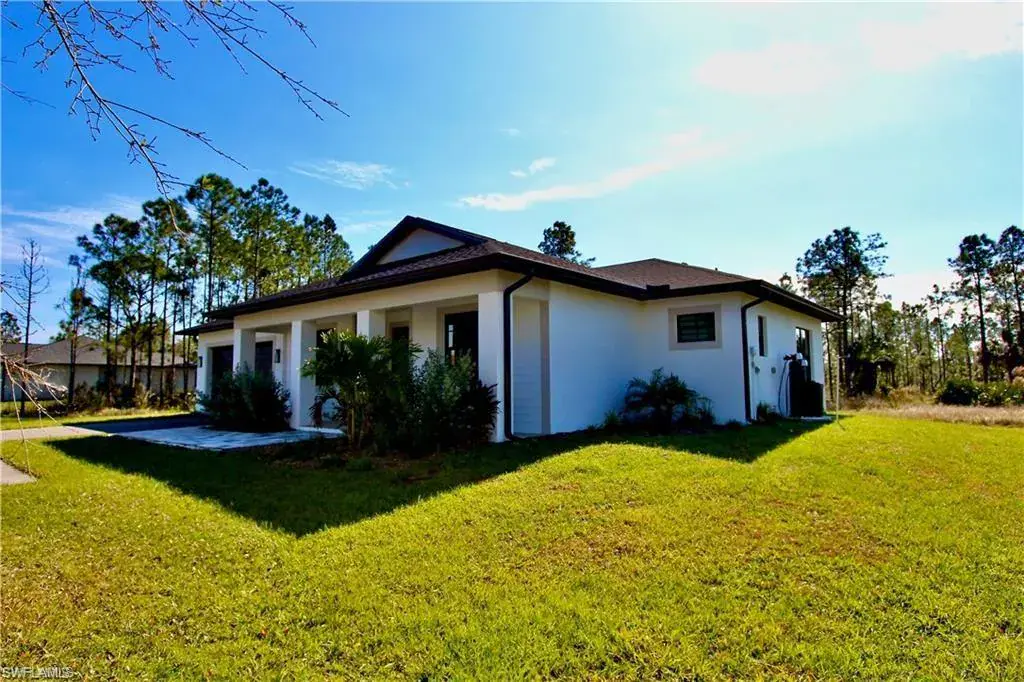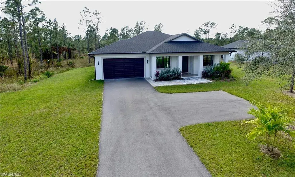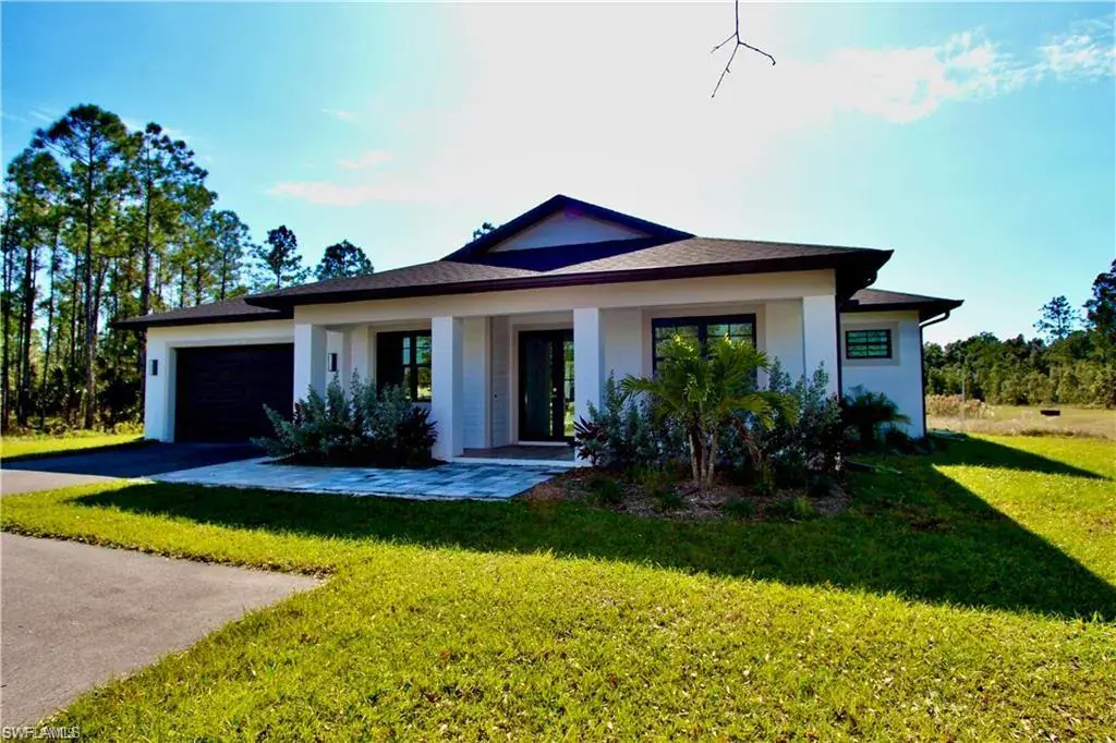 PRICED TO SELL! Seller offering $10,000 towards closing costs and prepaids for a current full price offer of $610K! BEAUTIFUL NEW HOME 2024 on 2.73 acres with 10′ ceilings – coffer ceiling in living area and 8′ doors throughout. Hurricane Impact windows and doors throughout. This home is an open great room design with stainless steel appliances. Separate Utility room with washer, dryer, sink and large 2-car garage and driveway that has a turnaround area. Den/Office with double doors and a view of the front yard. Large primary bathroom has a walk-in glass shower, with 2 sinks, a separate toilet space with door, and grand walk-in closet. 2 guest bedrooms are split by the guest bathroom. Front of home has a covered porch and a large lanai on the back with an additional access door from the master bedroom.