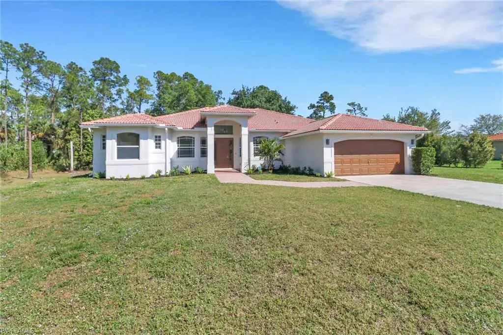 The spacious master suite is a true sanctuary, boasting two large walk-in closets and a transom window that brings in natural light. Outside, an oversized lanai invites you to enjoy the tranquility of the expansive property, while the garage features a sleek epoxy-coated floor for added utility and appeal.