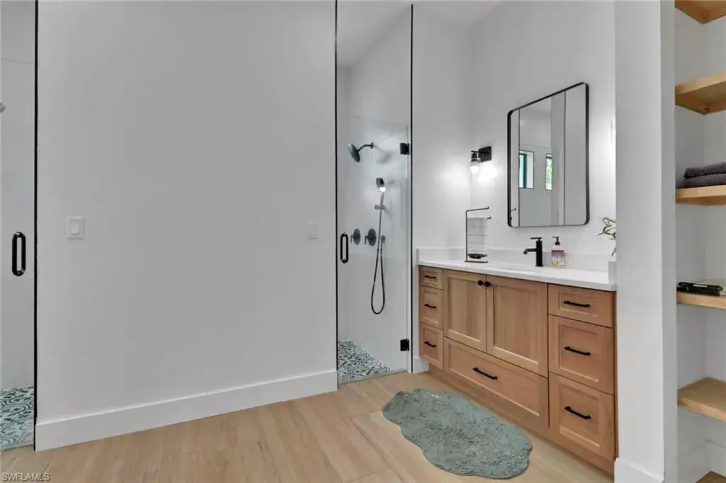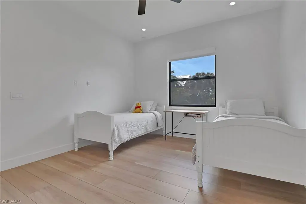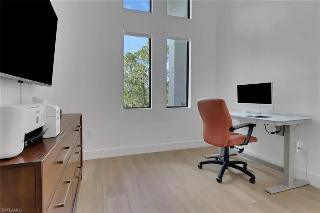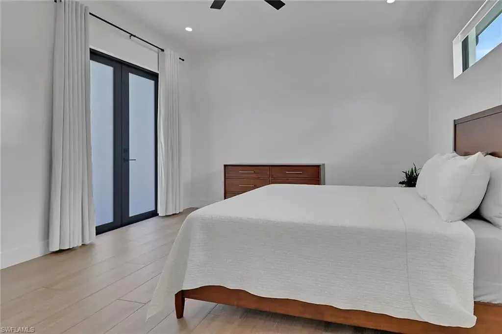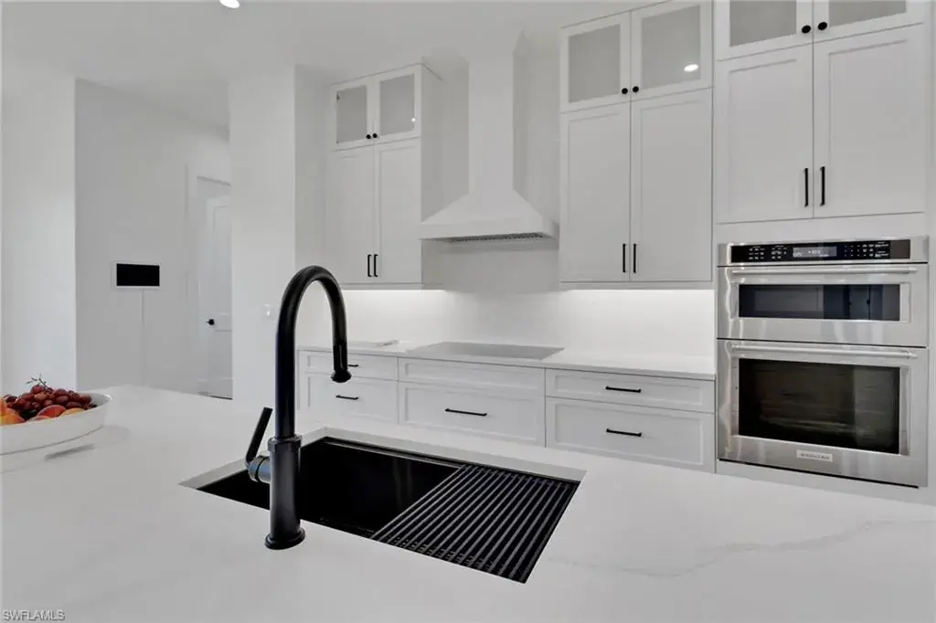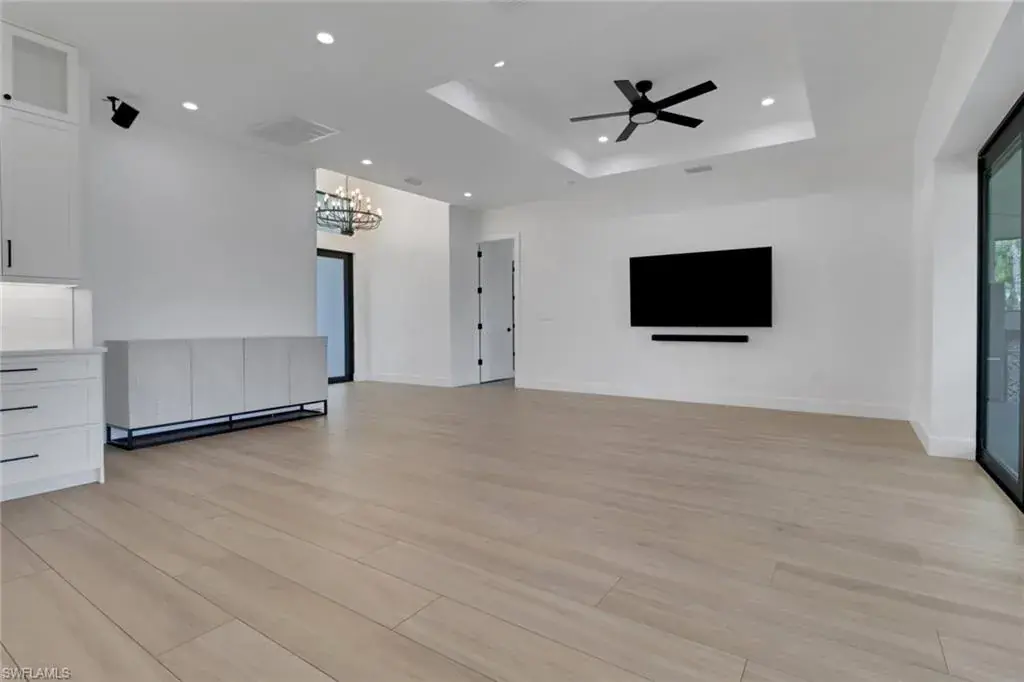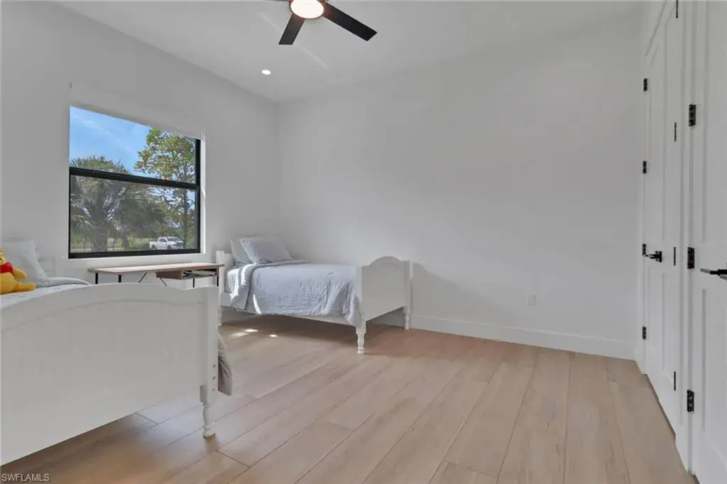 Welcome to this stunning custom built home offering the perfect blend of modern design, open space, and luxurious finishes all set on 2.34 acres of 100% uplands in one of the most desirable and rapidly growing areas of Naples, FL. With 3 bedrooms plus a den, 3 full bathrooms, and an oversized 2 car garage with an extended side, this home was thoughtfully designed for both comfort and style. Step inside to an inviting open concept floor plan highlighted by plank wood tile flooring throughout, volume and tray ceilings, and an abundance of natural light from impact resistant windows and zero corner sliding glass doors that fully open to bring the outdoors in. The seamless flow between living, dining, and kitchen areas creates an ideal setting for both everyday living and entertaining. The chef inspired kitchen is the centerpiece of the home, featuring custom white shaker cabinetry with soft close drawers, quartz countertops, a spacious center island with waterfall edge, modern black fixtures, and designer pendant lighting. Top of the line stainless steel appliances, including double wall ovens, complete this elegant and highly functional space. The owner’s suite offers a peaceful retreat with spa like luxury. The en suite bathroom features dual vanities, a large walk in shower, and high end finishes throughout. Two additional bedrooms and a den provide flexible space for guests, a home office, or a hobby room. Enjoy peace of mind and convenience with a whole home reverse osmosis system, fully fenced and gated property, and impact rated construction throughout. The back portion of the property is completely cleared, offering a blank canvas for your dream pool, guest house, barn, or expansive outdoor living area. With 100% uplands, every inch of the property is usable and ready for your vision. This home captures the essence of refined Naples living a perfect combination of modern architecture, quality craftsmanship, and open acreage with limitless potential. All this while being just minutes away from shopping, dining, schools, and the beautiful Gulf Coast beaches that make Naples one of Florida’s most sought after destinations. Experience elegance, space, and privacy this exceptional property offers it all.