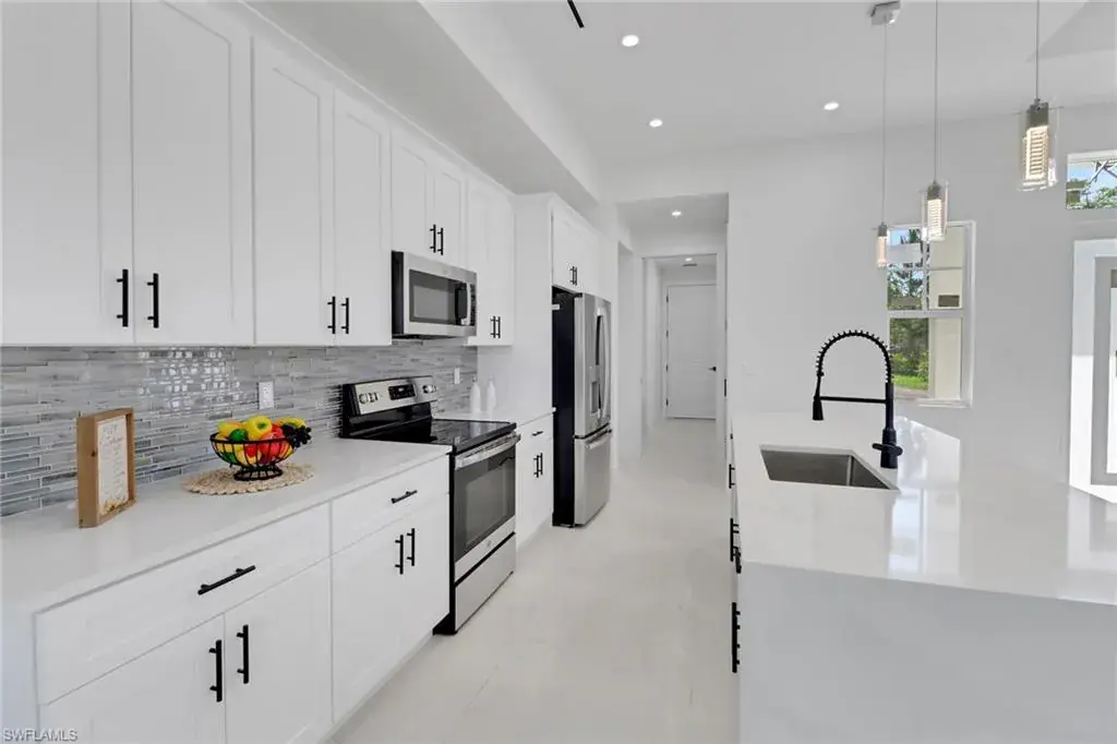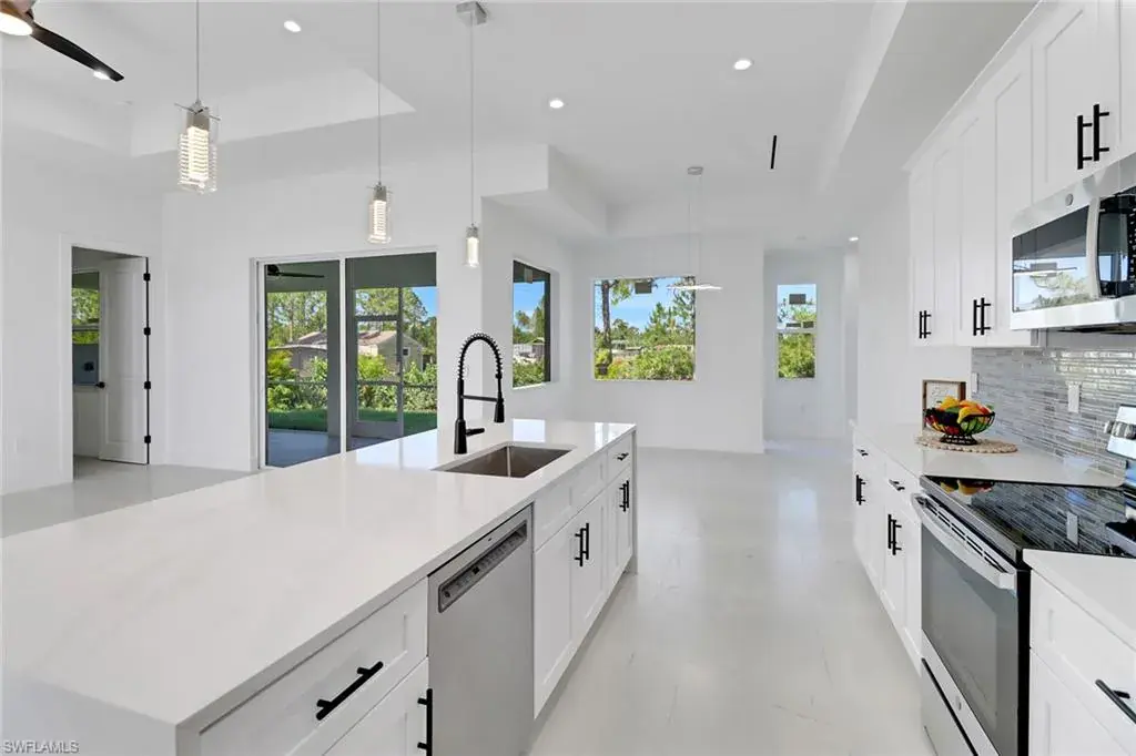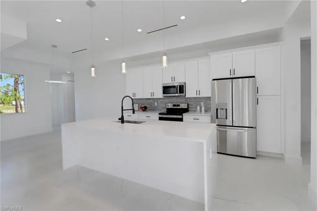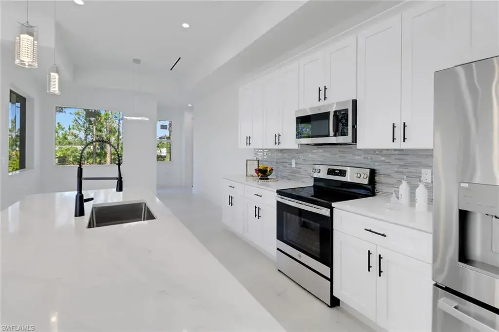 PRICE ADJUSTMENT!!!!! When it comes to PERFECTION our Amazonas Model check all the boxes. Lovely NEW CONSTRUCTION offering 4 bedroom and 3 bathrooms sitting in 1.17 acres UPLAND lot. This property, boasting high end finishes, is situated on a perfect location in the fast growing area of Golden Gate Estates . Enjoy the open, airy and bright kitchen with sparkling high end quartz countertop; 42″ wood cabinets. 24″ x 48″ tile throughout the home; gorgeous tray ceilings, impact windows and doors, stainless steel appliances and epoxy garage floor . Deep lot with plenty of space for a future pool . This property is conveniently located just a short distance to Golden Gate Blvd.; just 5 minutes from the new Everglades Square Mall, and less than 10 minutes from Publix. NO HOA fee!