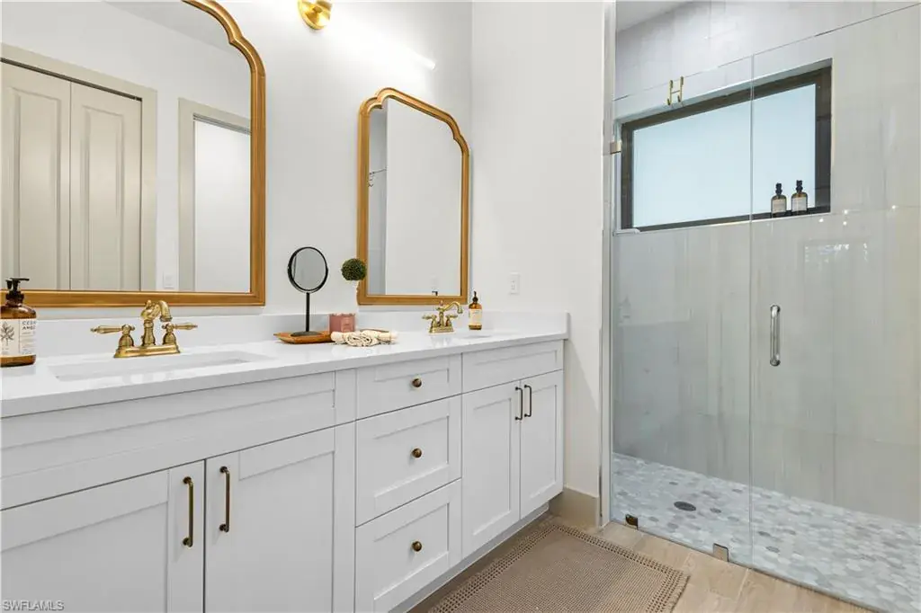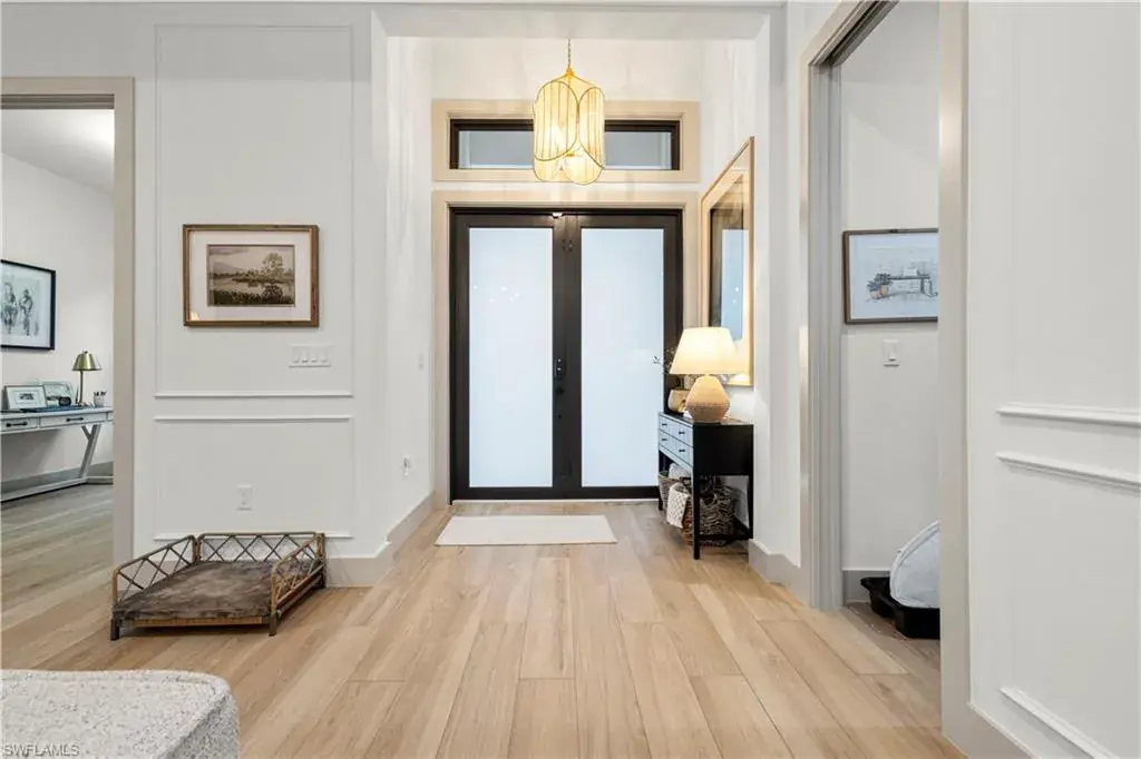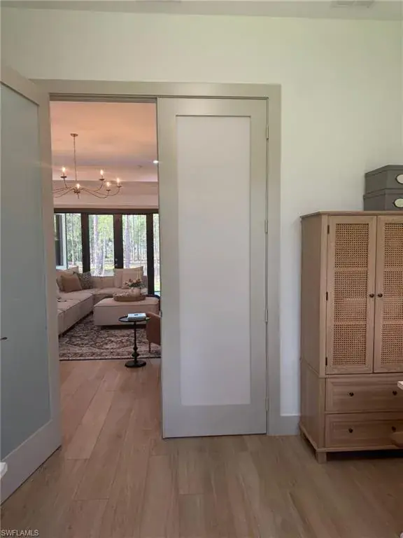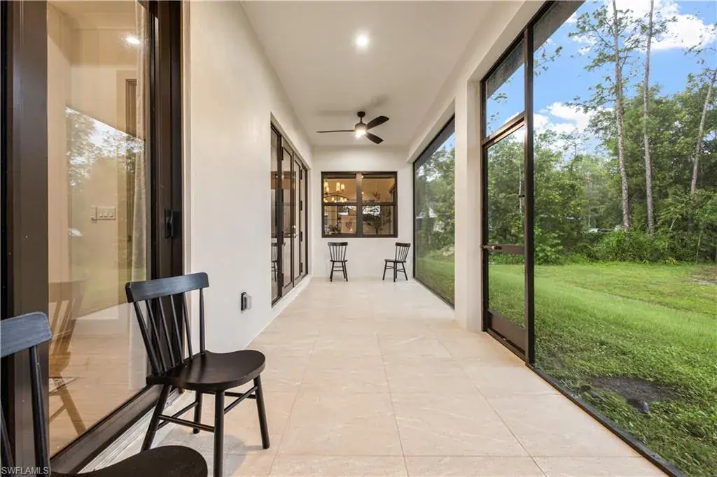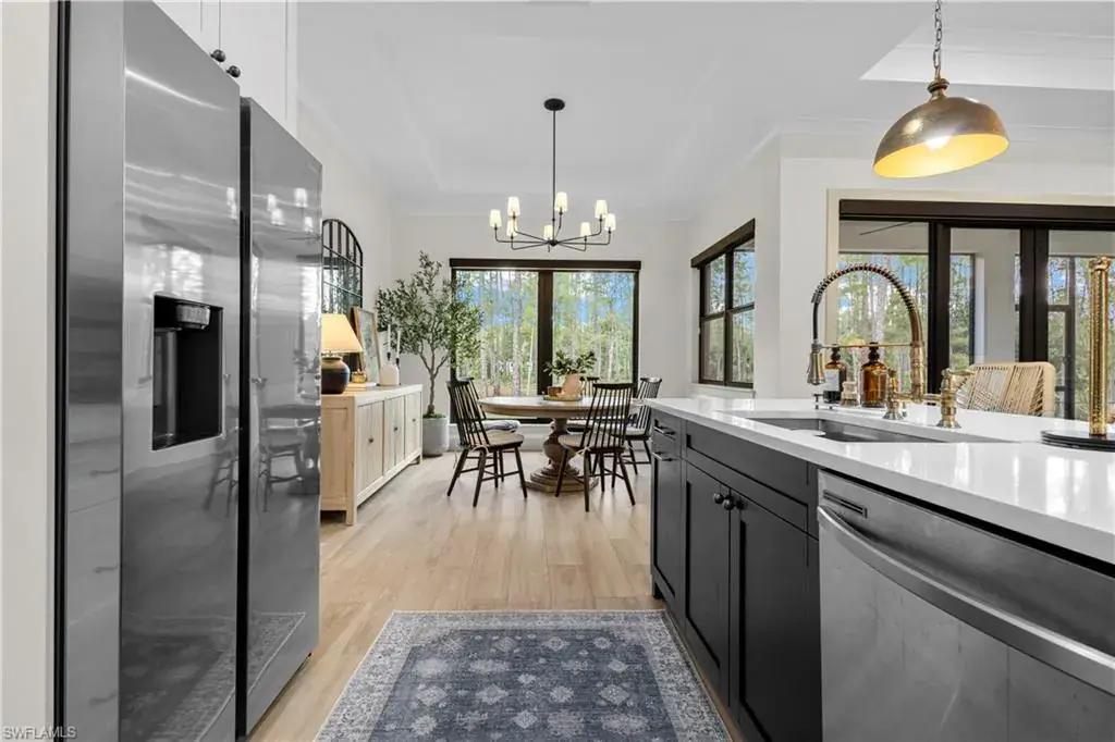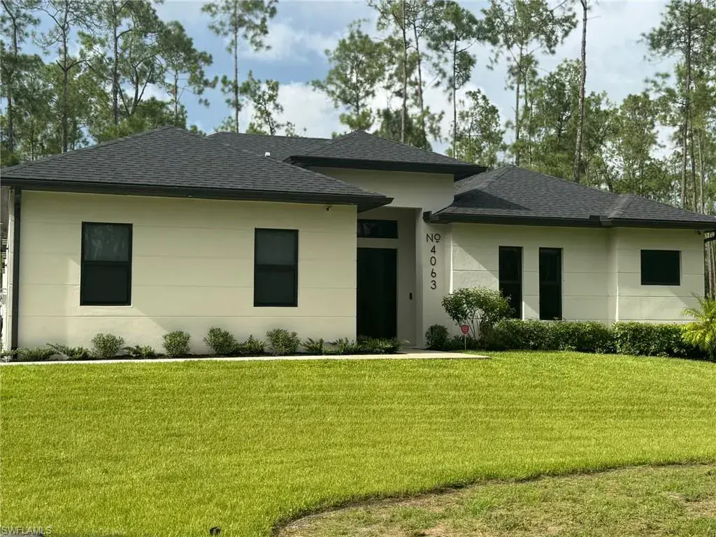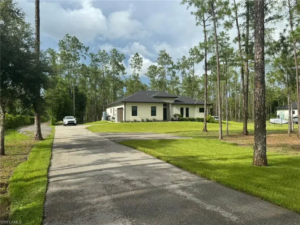 This is a one-of-a-kind home, impeccably designed, with open concept living area. Beautiful 3-bedroom + den/office, 2.5 bath home on 2.5 fully fenced acres in Golden Gates estates, offers stunning wooded views from every angle with a bright open layout. Features include impact doors/windows, osmosis water system, full camera wiring, updated kitchen hood, electric blackout shades throughout, and two electric fireplaces (one with a concrete marble mix mantle). Upscale finishes such as elegant moldings and designer lighting bring warmth and sophistication. Enjoy the fully panoramic screened-in lanai, 2-car garage, and a private road leading to the back of the property, perfect for RVs, boats, work trucks, and more.