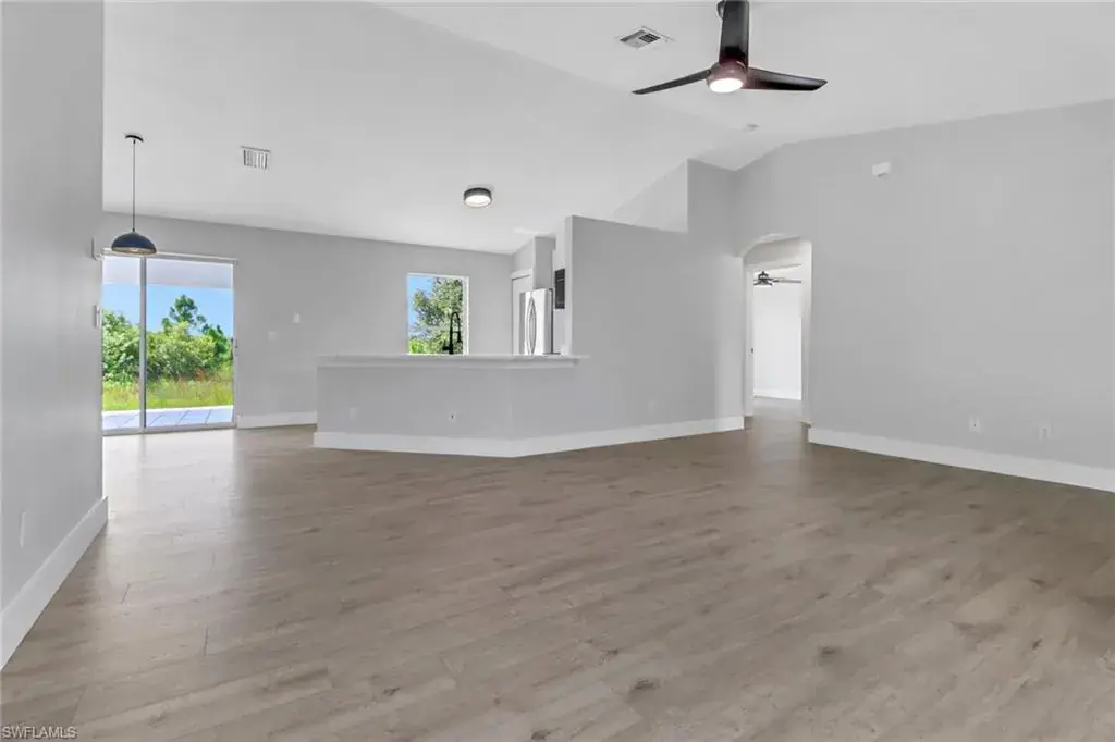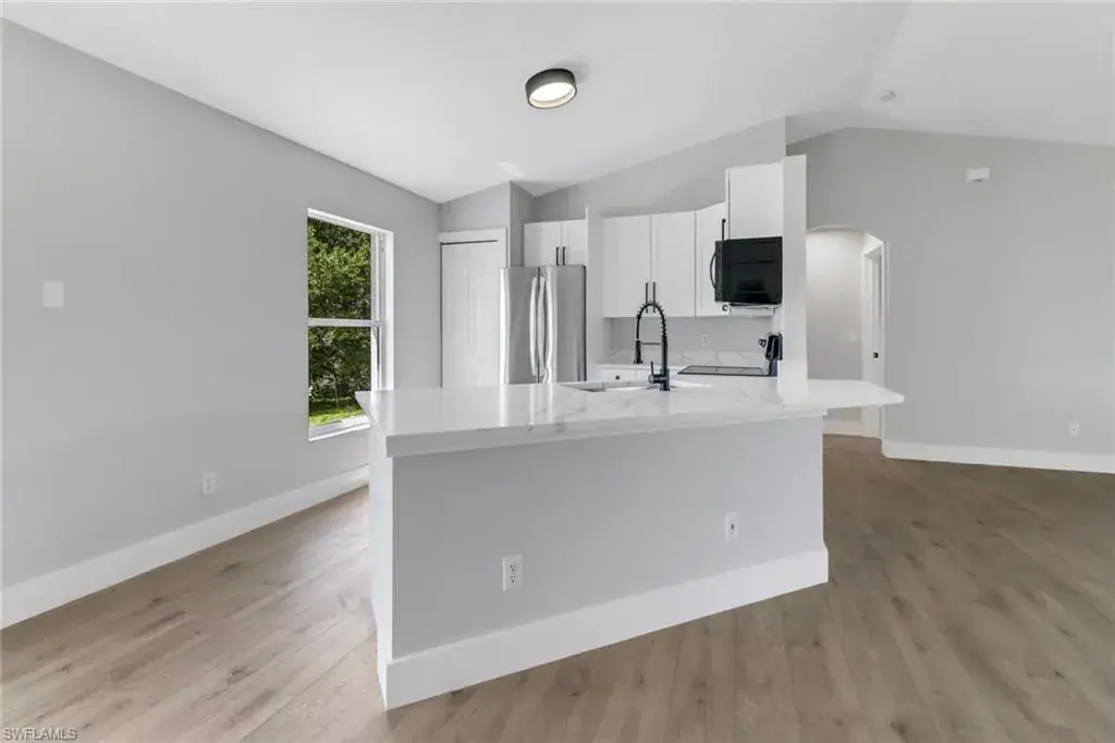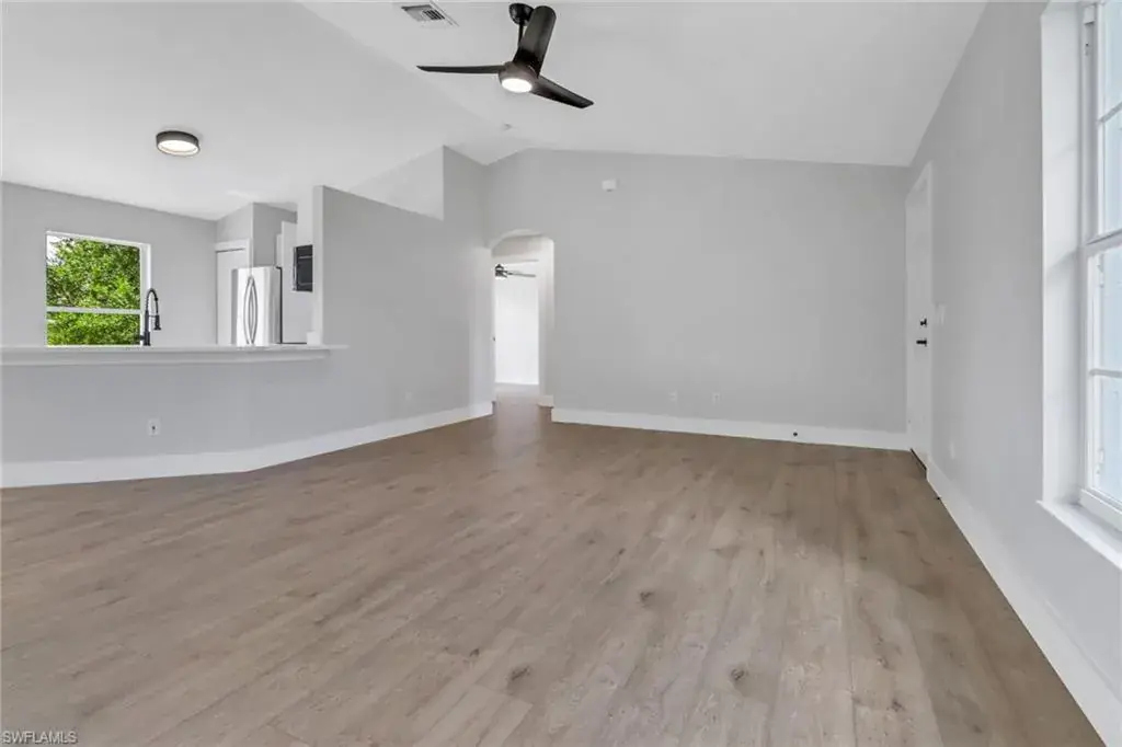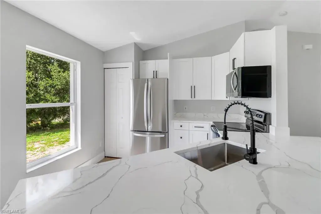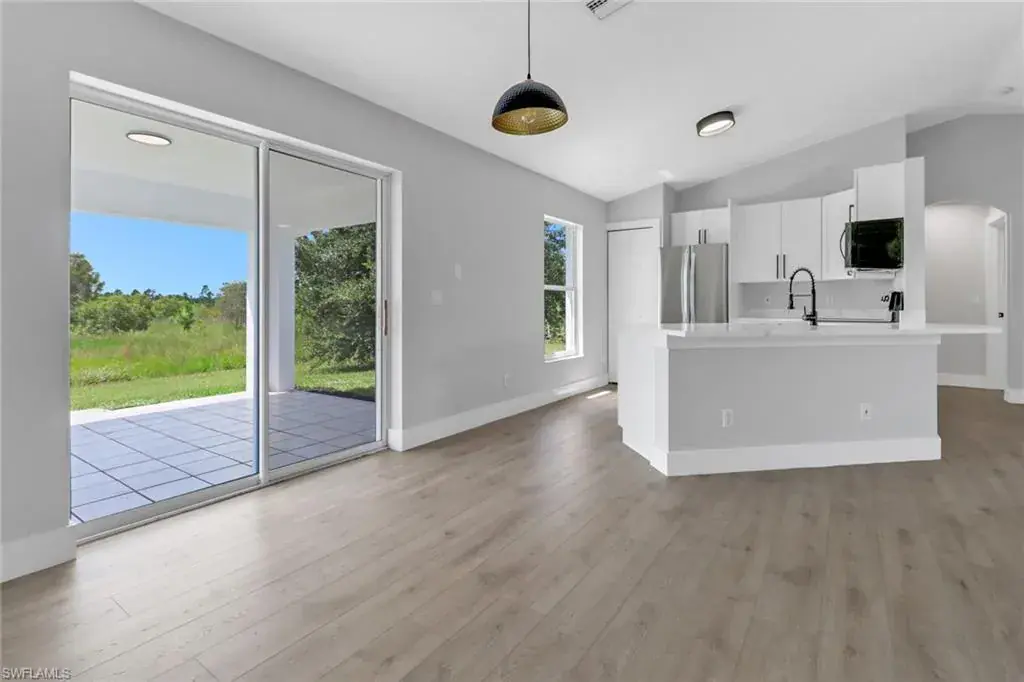 Check out this stunning home on 2.27 Acres in Golden Gate Estates. Home boasts modern design, updated laminated floors throughout, an open floor plan, and plenty of natural light throughout. Step into a fully renovated kitchen that features quartz countertops and stainless-steel appliances with ample space for meal prep and casual dining. Beautiful, updated bathrooms that showcase elegant quartz countertops, the Master suite offers a serene retreat with a spacious en-suite bathroom. Enjoy indoor-outdoor living with sliding doors that open to your expansive backyard, perfect for future pool installation or outdoor activities. Outside you’ll see a detached oversize shed perfect for storage or workshop. Located in a peaceful neighborhood, and best of all No HOA Fees. Enough room in this high and dry lot to bring your RV, Trucks, build a future guest house if you like, have animals or just enjoy your land. This property is a rare find that combines modern living with the beauty of nature. Don’t miss out on this incredible opportunity – schedule your showing today!