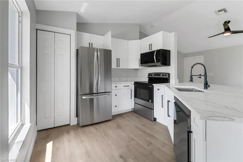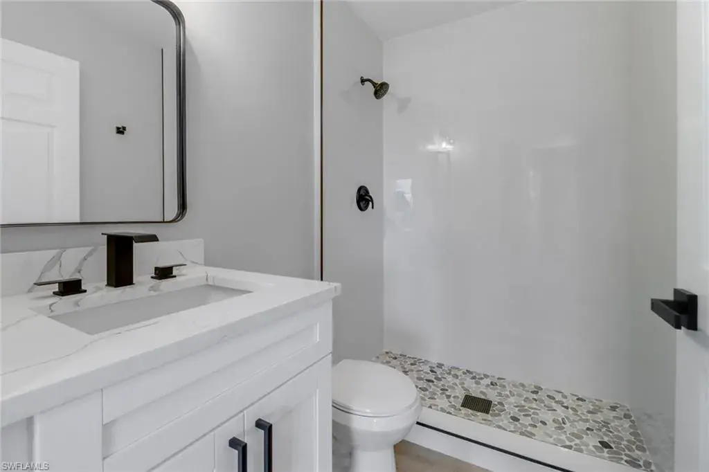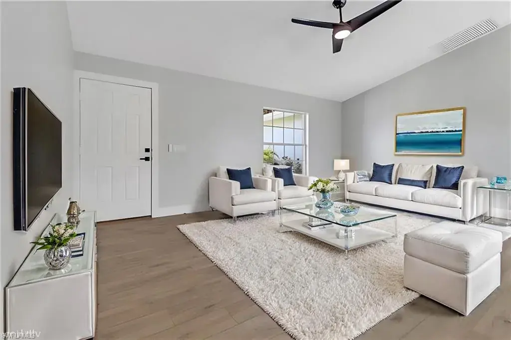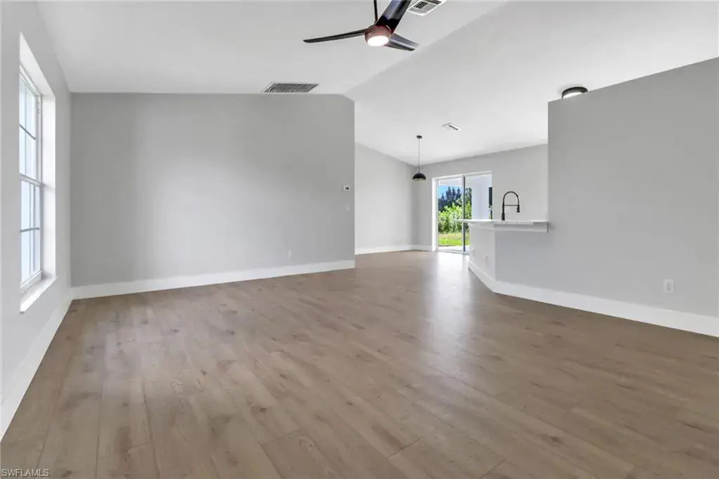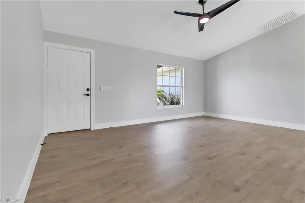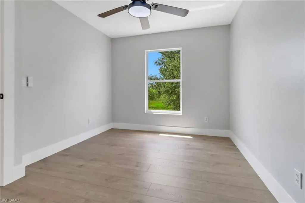 Check out this stunning home on 2.27 Acres in Golden Gate Estates. Home boasts modern design, updated laminated floors throughout, an open floor plan, and plenty of natural light throughout. Step into a fully renovated kitchen that features quartz countertops and stainless-steel appliances with ample space for meal prep and casual dining. Beautiful, updated bathrooms that showcase elegant quartz countertops, the Master suite offers a serene retreat with a spacious en-suite bathroom. Enjoy indoor-outdoor living with sliding doors that open to your expansive backyard, perfect for future pool installation or outdoor activities. Outside you’ll see a detached oversize shed perfect for storage or workshop. Located in a peaceful neighborhood, and best of all No HOA Fees. Enough room in this high and dry lot to bring your RV, Trucks, build a future guest house if you like, have animals or just enjoy your land. This property is a rare find that combines modern living with the beauty of nature. Don’t miss out on this incredible opportunity – schedule your showing today!