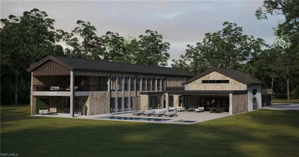 Unveiling a new era of Contemporary Coastal homebuilding in Naples, Florida, this modern bespoke concrete home redefines art and luxury living. With 2 kitchens, 5 bedrooms, 5 full bathrooms, and 2 half baths spread across 7,957 sq ft, it offers unparalleled space and privacy. Nestled on 2.5 acres west of Collier Boulevard, its secluded location provides tranquility within minutes of Naples beaches. Inside, discover unique concrete, wood and natural stone accents, complemented by floor to ceiling windows and vaulted ceilings that naturally illuminate the entire home and provide breathtaking views of the surrounding landscape. Illuminated grand hallways suitable for an art collection lead to each of the bedrooms, all of which possess oversized closets and ensuite baths. The expansive outdoor living area—complete with pool, spa, and kitchen—?is suitable for a large family gathering or entertaining at its best. Experience the allure of unmatched sophistication and exclusivity with this one of a kind estate.