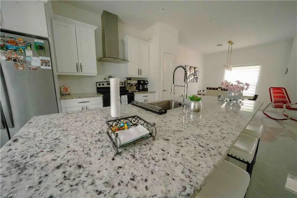 The kitchen flows seamlessly into the living and dining areas, making it ideal for entertaining. Retreat to the primary suite with two closets.