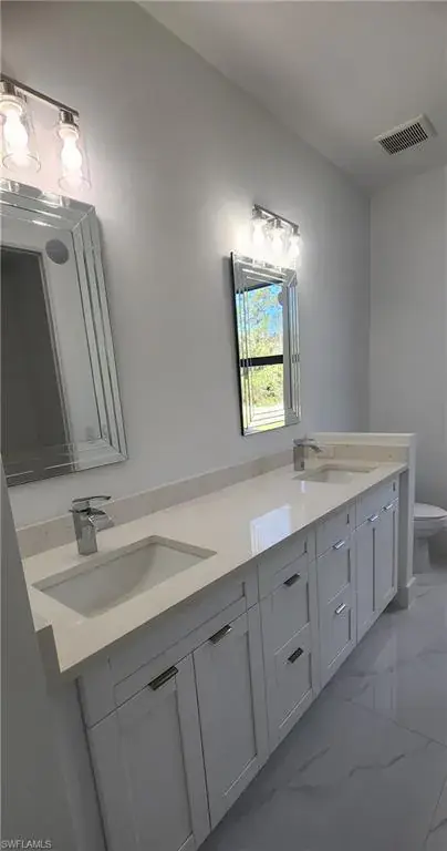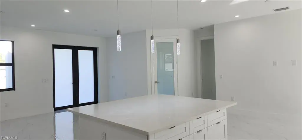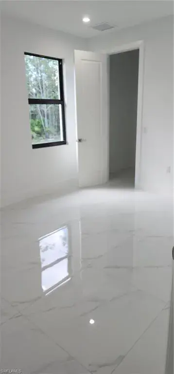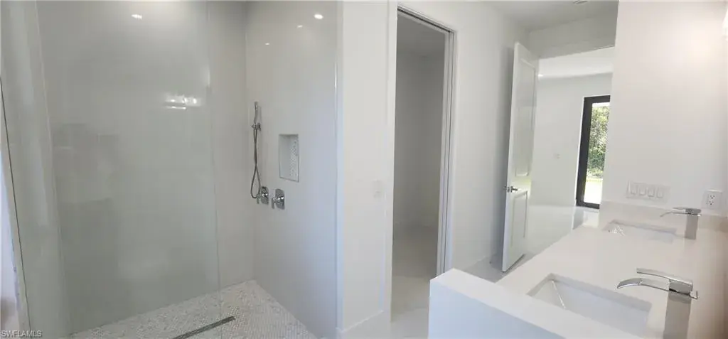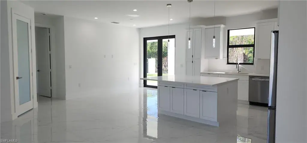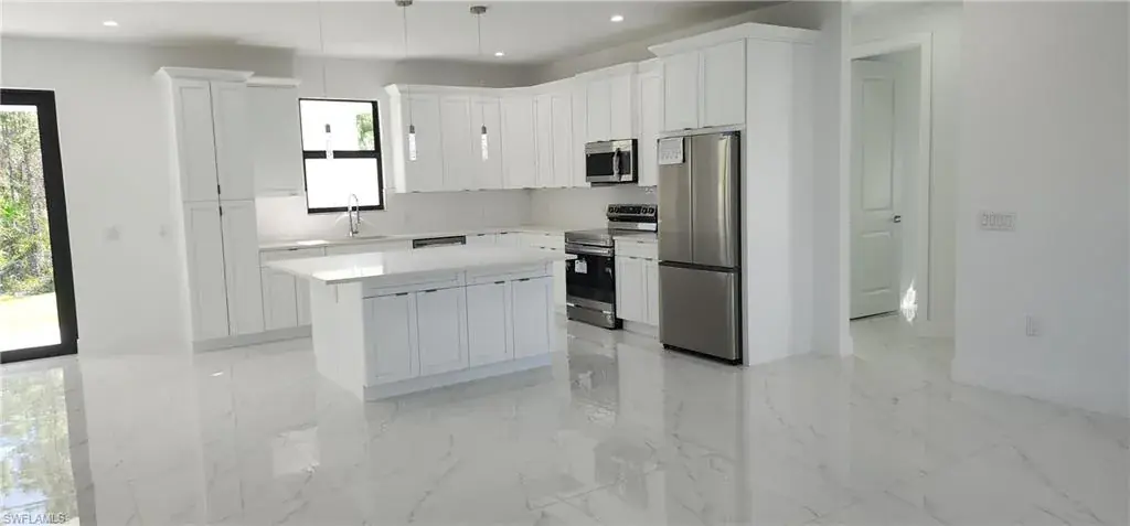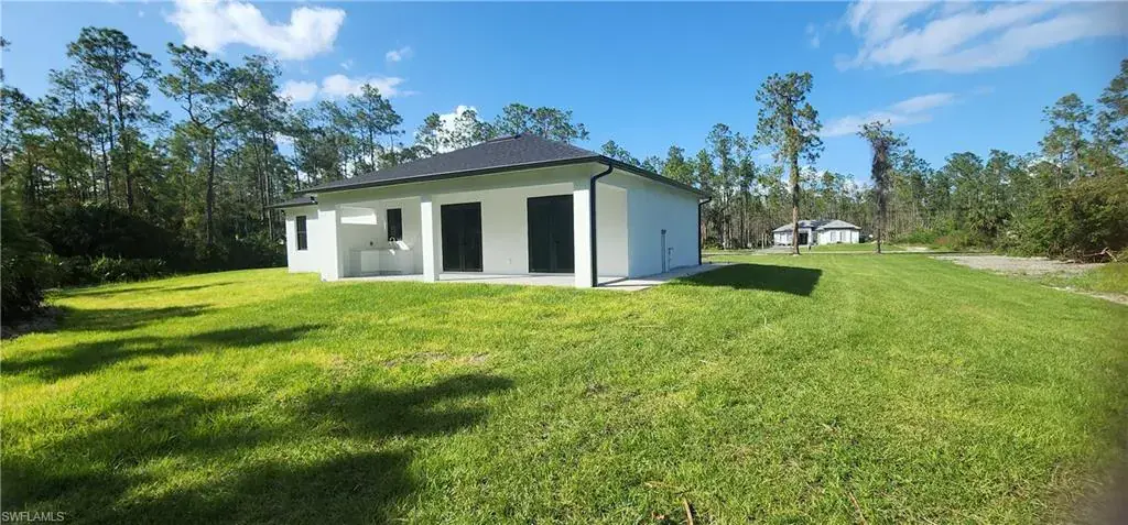 Beautiful new construction home in the up and coming Golden Gate Estates on 2.73 acres. Beautiful polished porcelain tiles throughout home. Open concept living room / kitchen / dining room is great for family time and entertainment. White shaker cabinets and quartz countertops in kitchen and bathrooms. Kitchen equipped with gorgeous stainless steel appliances and island offers sitting space for countertop dining. The master bedroom has double doors that lead to nice size lanai area and a spacious walk in closet. Laundry room inside home with a wash sink for convenience. Double car garage has epoxied floor and plenty of space. Walkway from driveway to side door and walkway to back of home. Lanai has sink and countertop for ease of outside entertainment. Reverse osmosis system installed in home with plenty of room to add pool. Tranquil neighborhood, a must see home.