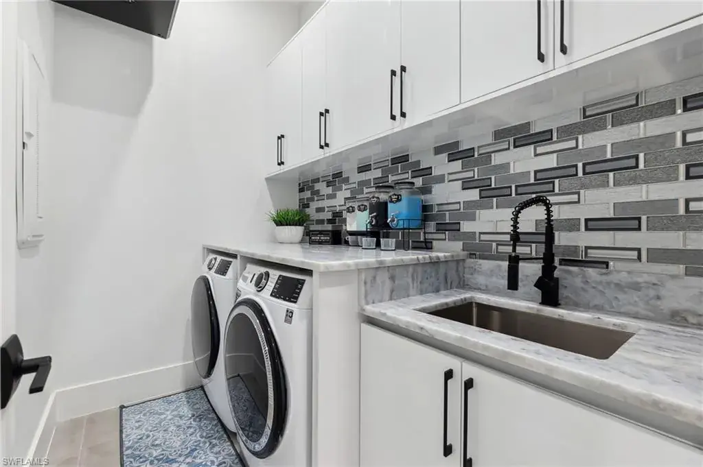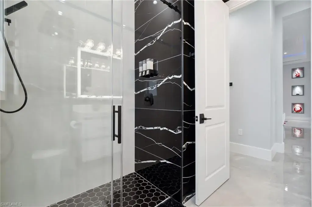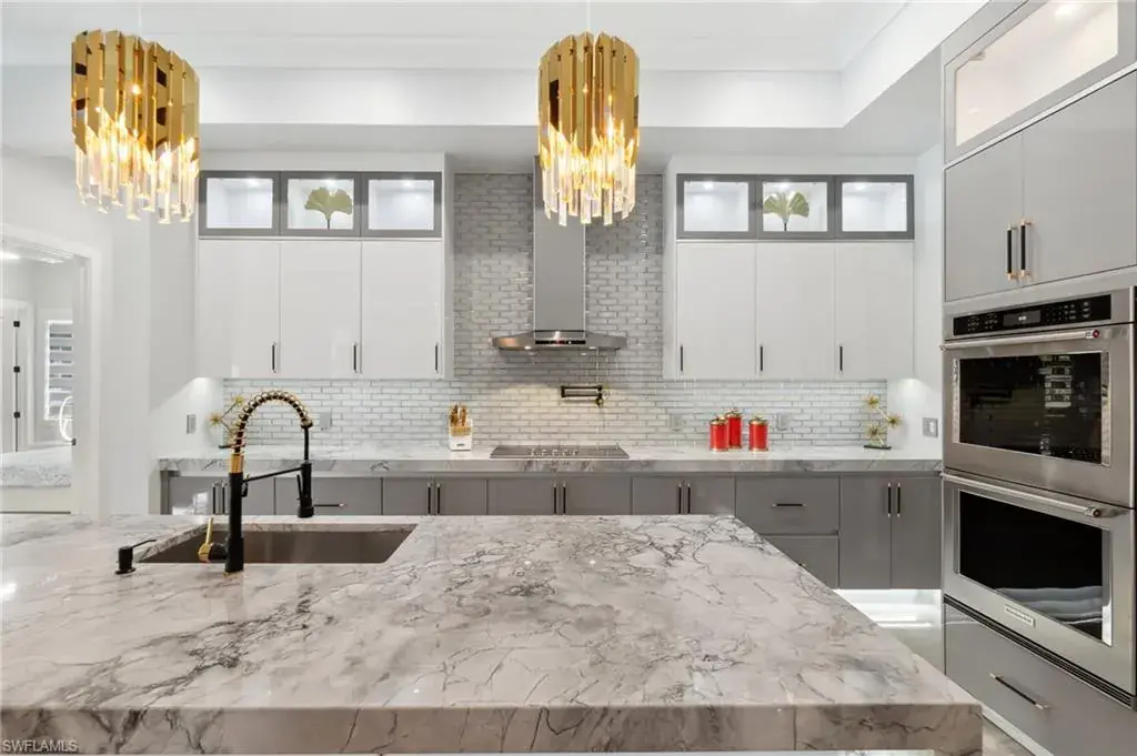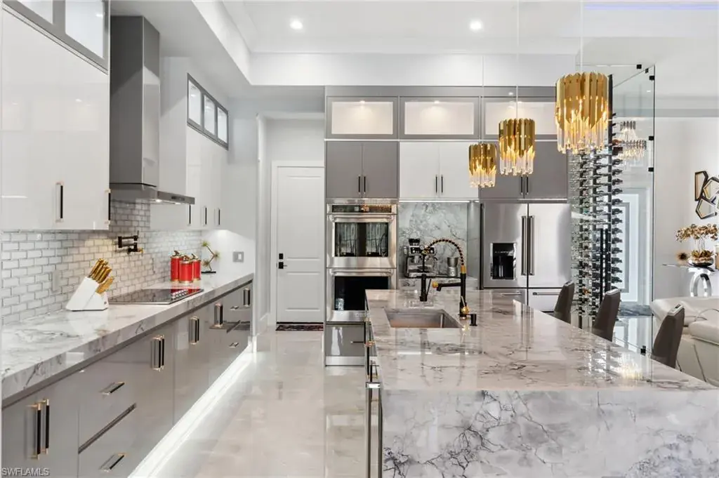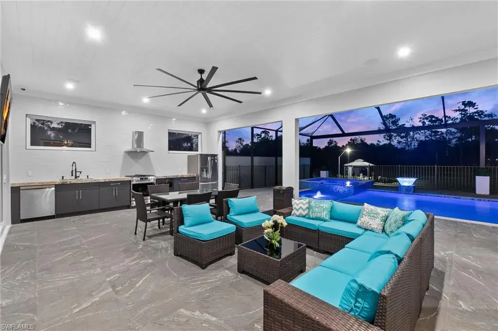 rare find in Golden Gate Estates! As you enter through the gated paver driveway, the spacious 3-car garage and meticulously designed landscaping immediately set the tone for the elegance inside. This 4,052 sq. ft. home (2,565 sq. ft. under air) showcases a well-planned layout, featuring 3 bedrooms + office and 3 modern bathrooms, each designed with a sleek, contemporary aesthetic. Thoughtfully crafted storage solutions throughout the home maximize space, while the advanced insulation system promotes year-round comfort. Built for both resilience and stvle. this estate is eauioned with impact-resistant windows and doors, a reinforced stem wall foundation. and a durable metal roof. Two high-capacity A/C units ensure optimal climate control, while an advanced reverse osmosis system delivers high-quality water throughout the home. At the heart of the home, the gourmet kitchen is a chef’s dream, featuring custom-built cabinetry, stunning quartz countertops, and top-tier appliances. Its open design flows effortlessly into the main living area, making it ideal for both everyday living and entertaining. Step outside to your private retreat, where an expansive pool and spa invite relaxation. Ine screened lanal is bullt for year-round enjoyment complete with a fully equipped summer kitchen featuring PVC Starboard cabinetry, built to withstand the elements. Designed for security and convenience, the property includes a comprenensive smart nome system that controls lignting, security cameras, and the 10-zone irrigatio system directly from your phone. A fully fenced perimeter with custom aluminum gates and automated entry ensures privacy and peace of mind. This exceptional estate blends modern luxury, smart technology, and premium craftsmanship, offering a unique opportunity to own a high-end home in one of Naples’ most desirable areas. Schedule your private tour today!