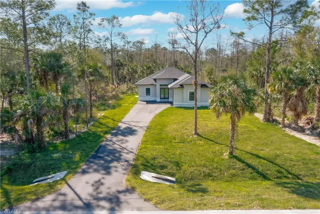 Step inside to discover a thoughtfully designed open floor plan that promotes a seamless flow throughout the home. The split-bedroom layout ensures privacy and comfort, while elegant tile flooring throughout adds a contemporary touch and easy maintenance. The heart of the home is a stunning kitchen featuring sleek quartz countertops, perfect for both cooking and entertaining. Every detail of this new construction home has been carefully crafted, with premium upgrades that enhance your lifestyle. Enjoy the added peace of mind with impact-resistant windows and doors, an automated sprinkler system, and a durable asphalt driveway that ensures low-maintenance living. Located in the highly sought-after Golden Gate Estates, this home offers the ideal combination of serene country living and convenient access to shopping, schools, and more – all without the restrictions of HOA fees. New FIRE & EMS 5min away Coming 2025. For the lover of wide-open spaces, this property is an incredible opportunity that you won’t want to miss. Make this beautiful ranch home your own and start living the life you’ve always dreamed of!