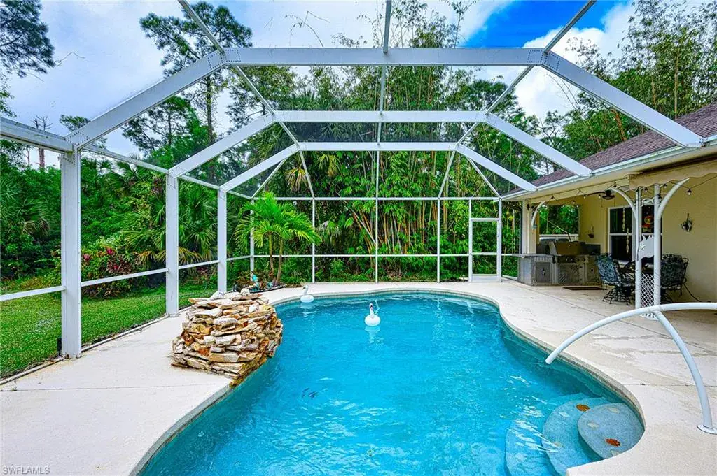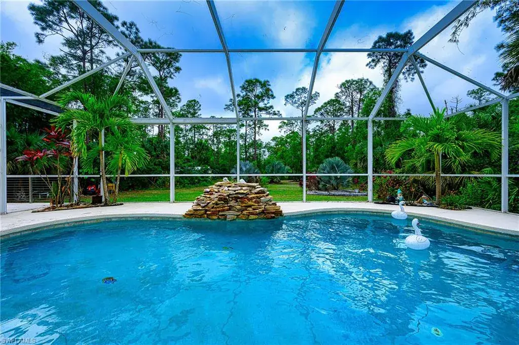 JUST REDUCED. $40,500. Let’s get this sold. February 20,2025 A BRAND NEW AIR CONDITIONER WAS INSTALLED. Step into this lovely home on 1.59 acres with the beauty of nature surrounding you. Enjoy the salt water pool and restful lanai with your morning coffee or a glass of wine in the evening .The Sunsetter awning with its remote control and the fan with its remote control beside you to make your comfort perfect.. Or you can relax in the family room with the 85 “ TV. Four bedrooms and three baths and one serves as the pool bath as well. The owners suite offers large bedroom with two walk in closets, separate tub and large shower, two sink areas and a closed toilet room. The previous owner built this custom home with isoline insulation for very low electric bills. All windows and doors are of impact resistant glass and have plantation shutters . Unique outdoor shower and Dacor propane gas burner grill with under counter refrigerator. Built in fire pit on patio . Alarm system, Irrigation system and Kinetico water softener. This property offers privacy, space and a taste of Florida lifestyle. The large lot offers driveway access for RV / boat parking. Near by is the Founders Square shopping center with many restaurants for you to enjoy. The new Big Corkscrew Island Regional Park with water slides and more for the family to enjoy.