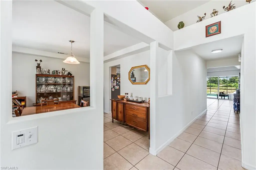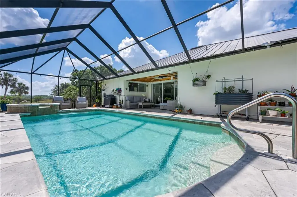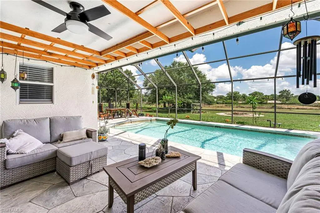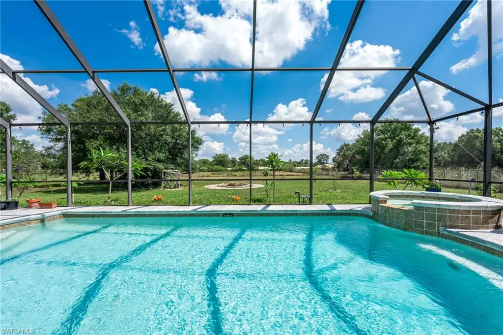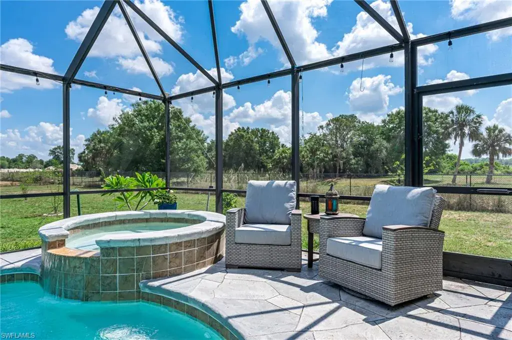 Nestled on 2.27 acres of peace and solitude in a rapidly growing area of Golden Gate Estates, this impeccably maintained home with spacious rooms has numerous upgrades that will bring peace of mind and modern comfort, and include, a brand new $17k, Lennox AC system with uv light and extra filtration function, (installed 7/9/2025), a durable metal roof with new guttering, a whole-house reverse osmosis system, an upgraded electrical panel with generator inlet and well breaker, underground wiring to the road, a whole-house surge protector, and upgraded interior/exterior lighting. The home also boasts a new pool pump, spa heater, water heater, and fresh Sherwin-Williams paint inside and out. You’ll also find a wide variety of ornamental trees and flowers. Several types of Frangipani, two Royal Poinciana trees, very young, Mexican Sunflower bushes/trees, Queen‘s Wreath, rose bushes, including Heirloom Hybrid Roses in a white rose garden, lemongrass plants, three Confederate/Star Jasmine‘s growing up trees, two varieties of Claredendrom-Light Bulb, and Harold’s Trumpet, Yellow Tabebuias and huge oak trees in the front yard along with beautiful Water Oak trees, white and blue Plumbago, and so many more. And…All of the gardening has been maintained by natural gardening concepts, including, composting, hand-pulled weeding, and natural pest control! The expansive backyard includes a fenced-in three-quarters of an acre with a six-foot black chain link fence—perfect for the safety of pets and small children.  In addition to all of that, the seller has laid plywood flooring and shelving in the attic for extra storage!!—every detail here has been thoughtfully addressed.