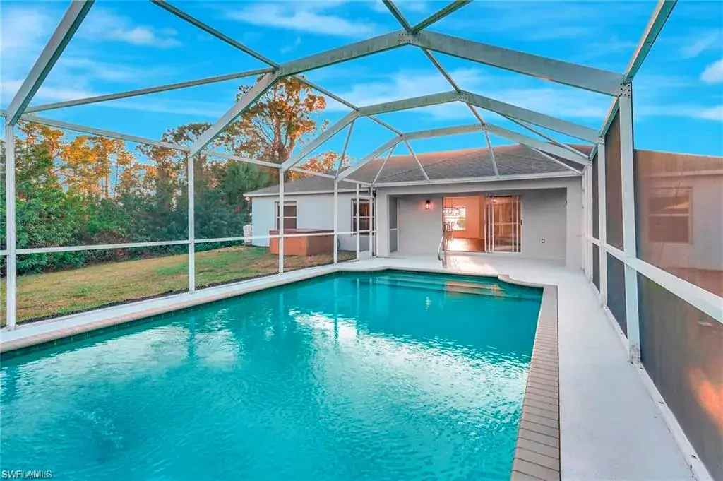 Step outside to your screened-in pool, ideal for entertaining or relaxing while overlooking the spacious backyard. The home offers a roundabout driveway for easy access, and two sheds for extra storage.