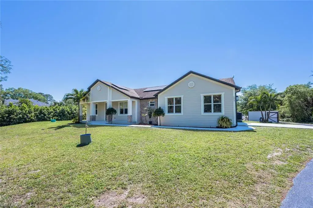 Concrete block home with Decorative cement stucco siding with real brick accents in the front. This Pool home has an Adorable Farmhouse theme. The pool has a built in sunshelf perfect for sunbathing that is surrounded by a beautiful deck. 10th Ave NW is located right off of Wilson Blvd N. This Farm house themed home is perfect for the country setting it is on with its gated 2.5 acres. Fresh water canal at the back of the lot is perfect for the fresh water fishing enthusiasts. 3 bedroom plus Den with 2 bathrooms. Jetted Tub in master bathroom. Stone fireplace and crown molding. The 9X9 Den/Office is located off of the laundry room with a separate entrance to the garage which makes its use perfect to run a home business. This property has plenty of room to make a horse lovers dream come true! Comes equipped with a whole house generator with a 500 Gallon tank, hurricane impact windows and impact doors. Reverse osmosis system. Saltwater Pool with electric pool heater. Solar Panels to help with the electric bill. The home is still covered under the 10 year structural warranty that still has some time left. Don’t miss out on this Special Gem!!