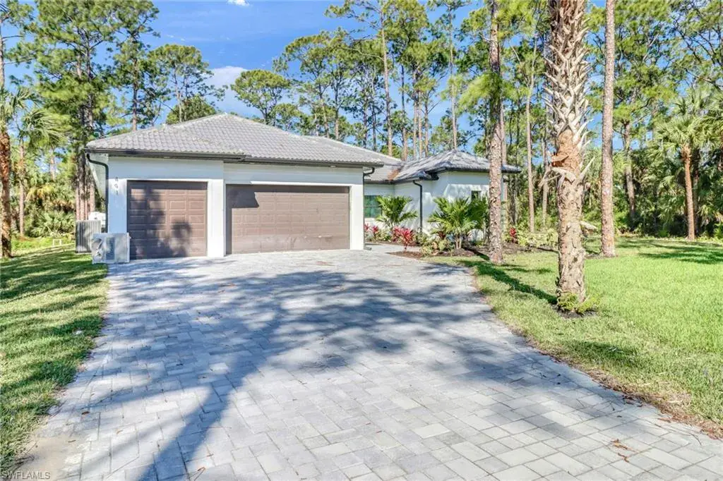 NEW CONSTRUCTION!! Welcome to your private oasis in Golden Gate Estates, Naples! This stunning single-family home combines LUXURIOUSliving with the tranquility of Florida’s outdoor lifestyle. 4 BEDROOMS+ DEN, 3 FULL BATHS, 1 of them just off the pool. THREE car GARAGE.Step inside and be captivated by the spacious and BRIGHT INTERIOR, boasting an OPEN FLOOR PLAN that seamlessly connects the living,dining, and kitchen areas. The gourmet kitchen features countertops, stainless steel appliances, and a generous island, making it a chef’sdream. With ample space for both casual dining and formal gatherings, this home is an entertainer’s delight. Unwind in the elegant mastersuite, complete with a lavish ensuite bathroom and direct access to the outdoor area. Three additional bedrooms provide comfort and versatilityfor family members or guests. Step outside to your own private paradise, where a screened-in lanai and sparkling pool await. The covered lanaioffers the perfect spot for al fresco dining or simply relaxing while overlooking the lush landscaped surroundings. With its convenient location inGolden Gate Estates, this property provides easy access to top-rated schools, shopping centers, dining destinations, and recreational activities.Experience the life style of Naples living – schedule your showing today and make this dream home yours! NOTE THAT PICTURES WITHFURNITURE ARE DIGITALLY MODIFIED. THE HOUSE IS UNFURNISHED.