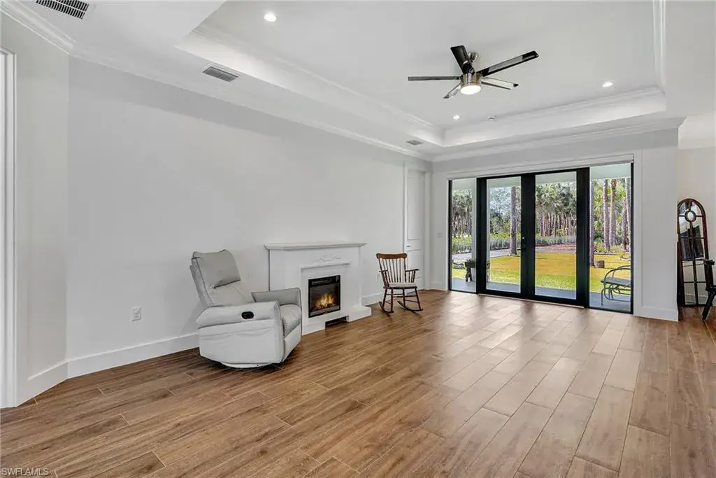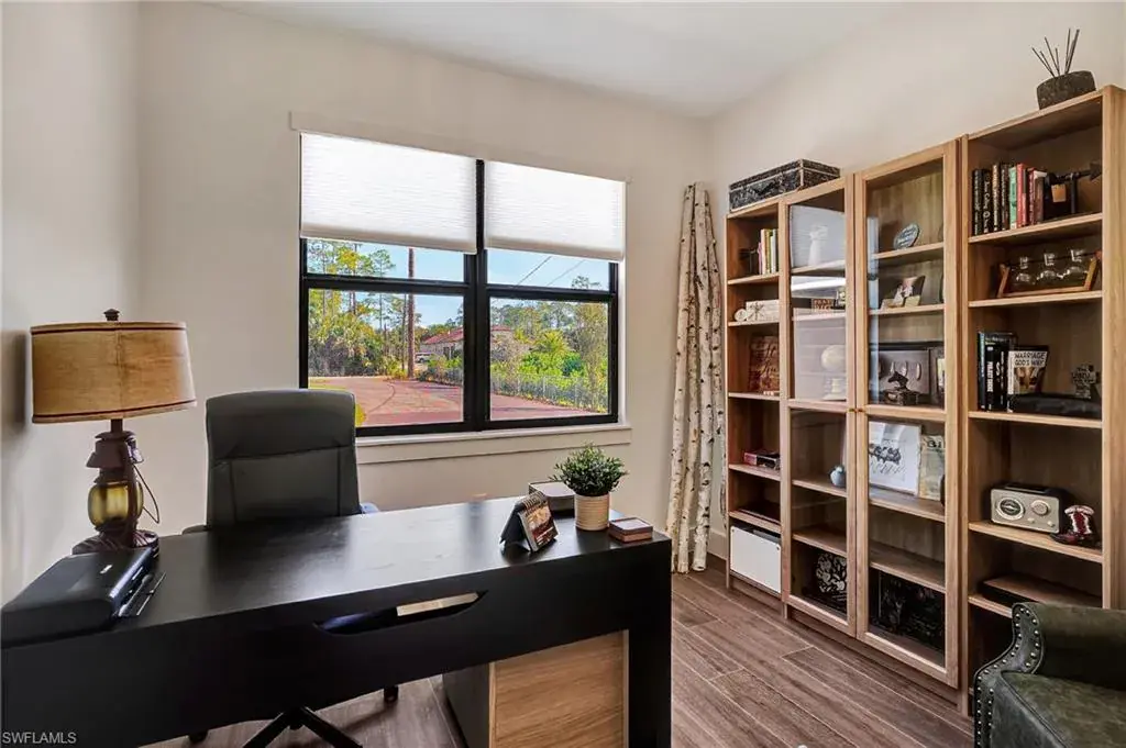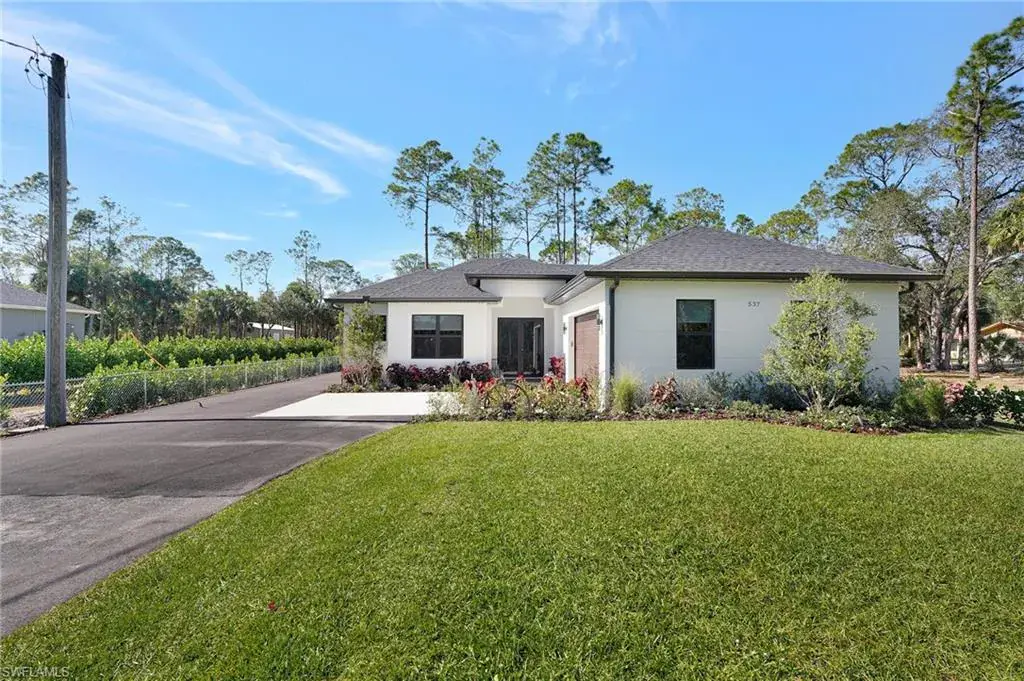Welcome to your dream home in the sought-after Golden Gate Estates area, west of Wilson Blvd! This stunning new construction is set on a 1.14-acre rare 100% upland lot and offers 3 bedrooms, a versatile den, 2 bathrooms, and a 2-car garage. The home spans 1,656 sq. ft. of living space with a grand total of 2,398 sq. ft. Carefully selected upgrades include elegant wood plank porcelain tile flooring, sophisticated crown molding, and gorgeous quartz countertops. The kitchen is a chef’s delight, featuring Refrigerator and appliances with customize door panels in white glass, solid wood cabinets, and two pantries for ample storage.