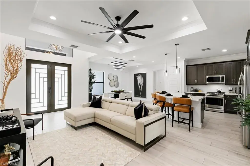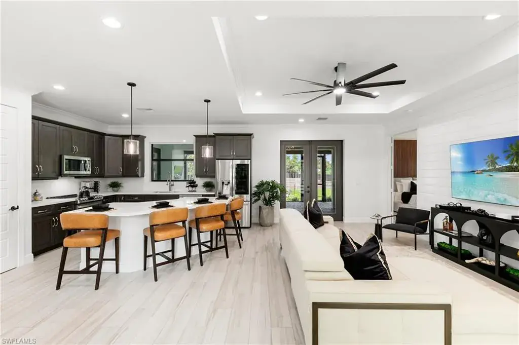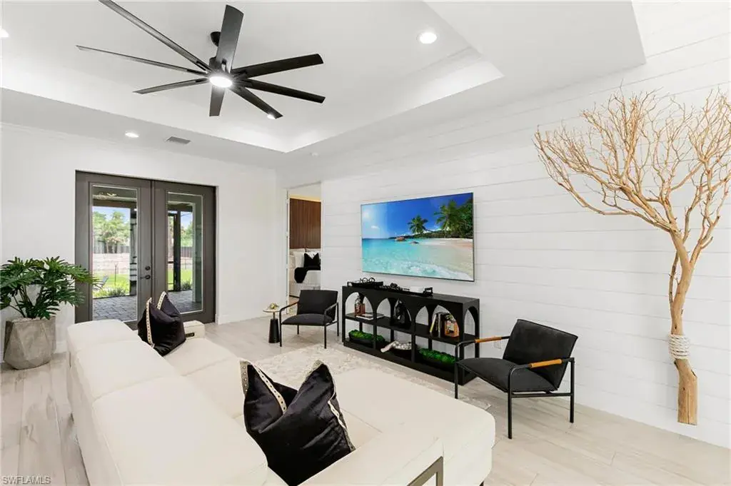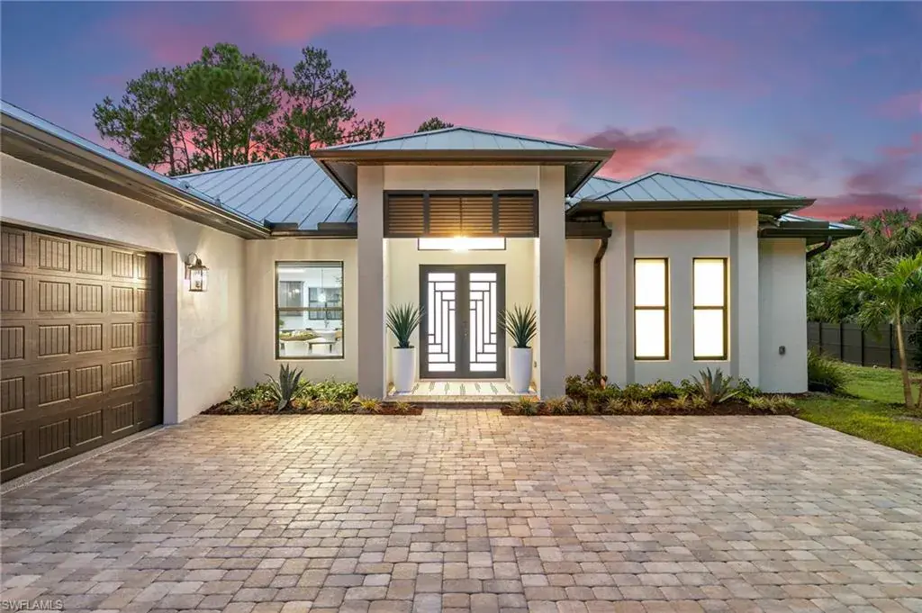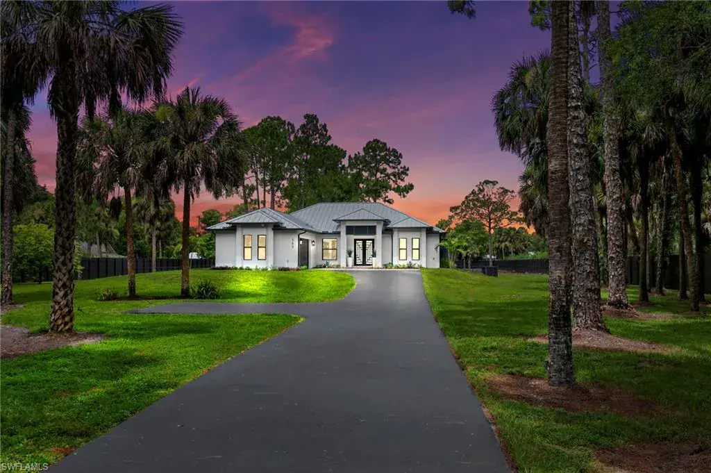 LUXURIOUS TURNKEY HOME IS READY FOR YOU TO MOVE RIGHT IN! Exquisite high-end finishes throughout this home make it truly unique! Freshly painted interior with wood plank porcelain tile, new window treatments, ceiling fans and lighting throughout, the home is flooded with light via large windows, giving the whole house an airy, spacious feel. Open concept main living area is accented with stunning shiplap detail, giving an elegant touch. Built for entertaining and relaxing, the kitchen features dark cabinetry, white quartz countertops, new backsplash, stainless steel appliances, and a center island with wine refrigerator and seating. Separate dining area for sit down meals and larger gatherings. The primary suite is spacious, featuring a unique oak accent wall and sliders out to the lanai. Designer wallpapered primary bath has a soaking tub and glass enclosed tile shower. Additional bedrooms are large with ample closet space and share a full bath with tiled shower/tub combo and glass doors. Separate casita with a wet bar and mini fridge and half bath is an ideal spot as a fourth bedroom, in-law suite, guest bedroom, a home office, or a private retreat. Large pavered extended lanai with an enclosed area is ideal for outdoor entertaining, and there’s plenty of room for a pool or a guest house. The 2.5 acre lot is 100% UPLANDS, fully cleared and fenced with electric gate, remote camera system and key pad for access, and ring camera system provides peace of mind and security. Metal roof and gutters, 250 gallon propane tank and generator and new reverse osmosis system with upgraded 500 gallon tank. Location is private yet still close to Collier Blvd, shopping, dining and beaches.