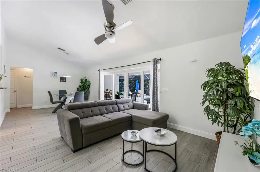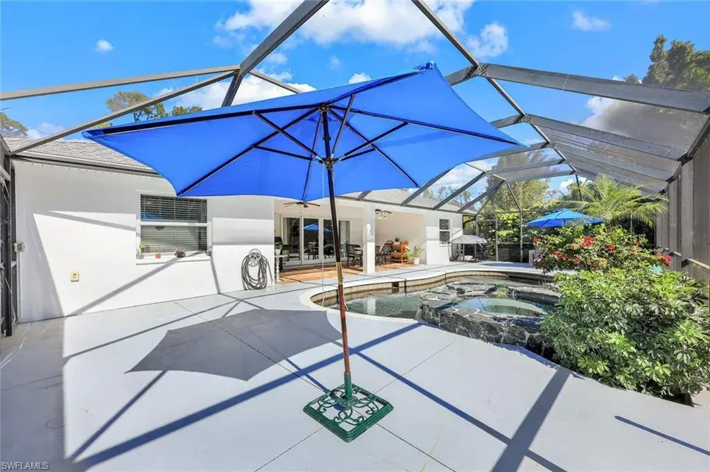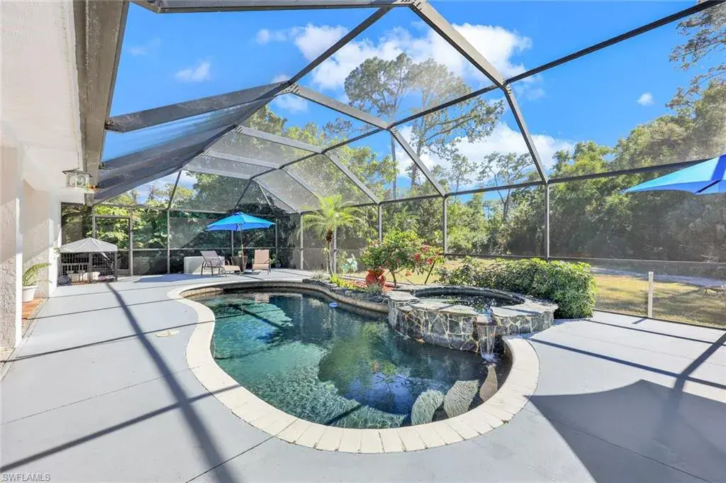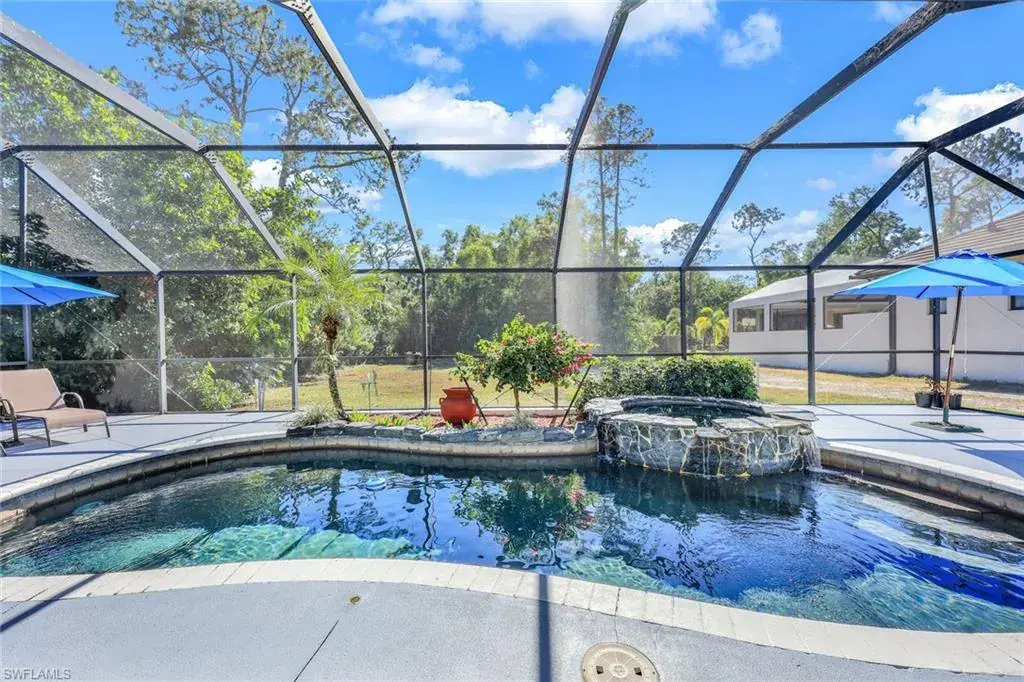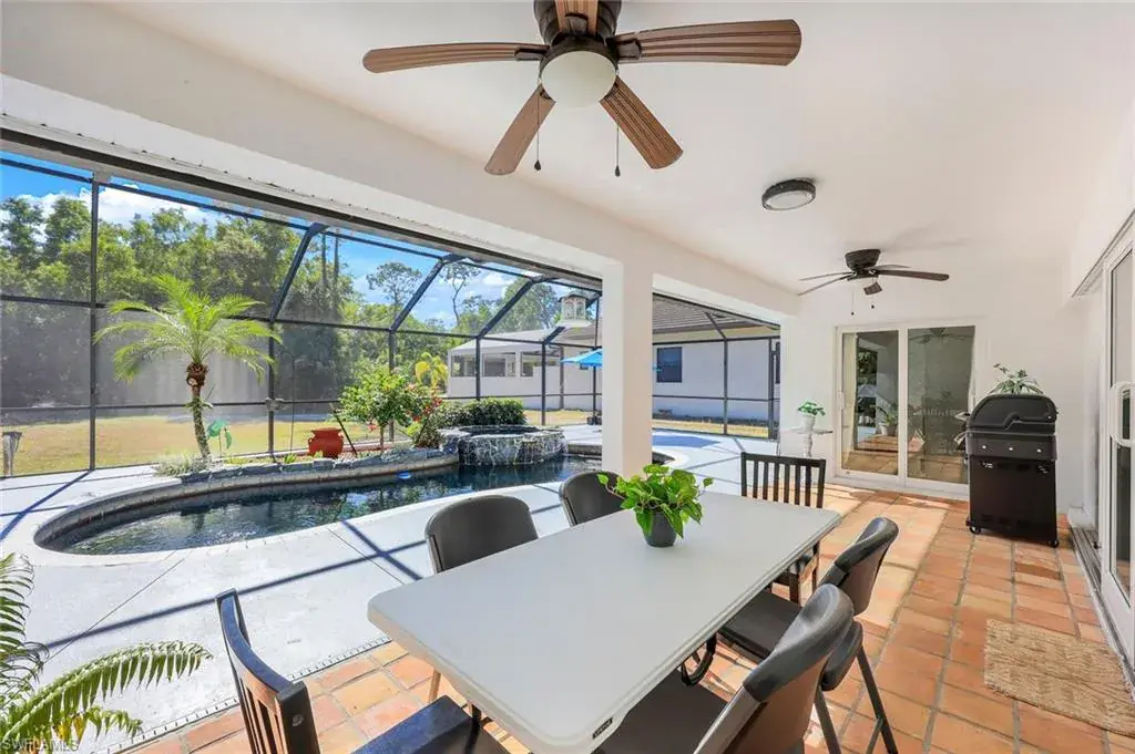 When it comes to purchasing an Estate home in Naples, you don’t always have to be 30 – 60 minutes away from the action. This is one of the lowest priced pool/spa home west of Wilson Boulevard in all of the Golden Gate Estates. This is your opportunity to be on over an acre of land that is 10 minutes to Coastland Mall, 15 minutes from Downtown Fifth Avenue, 20 minutes to Mercato, and under 25 minutes to the beautiful Gulf Beaches. You will find comfort in knowing that the roof was just replaced in 2023, all new hurricane impact doors, windows, and sliders installed in 2021, HVAC in 2020, and the well equipment in 2019 (maintained by Culligan and has a transferrable warranty). The split-bedroom floor plan has a wide-open living and dinning area in between. There is no carpet in this home; all tile flooring makes it easier to maintain. The rear lanai and screened pool/spa deck combine for over 1,200 sq. ft. of entertainment area for your guests. There is plenty of space behind the home; some cleared and even more with trees and foliage.