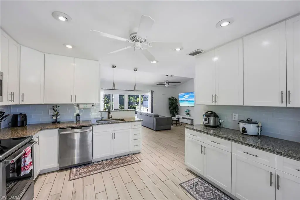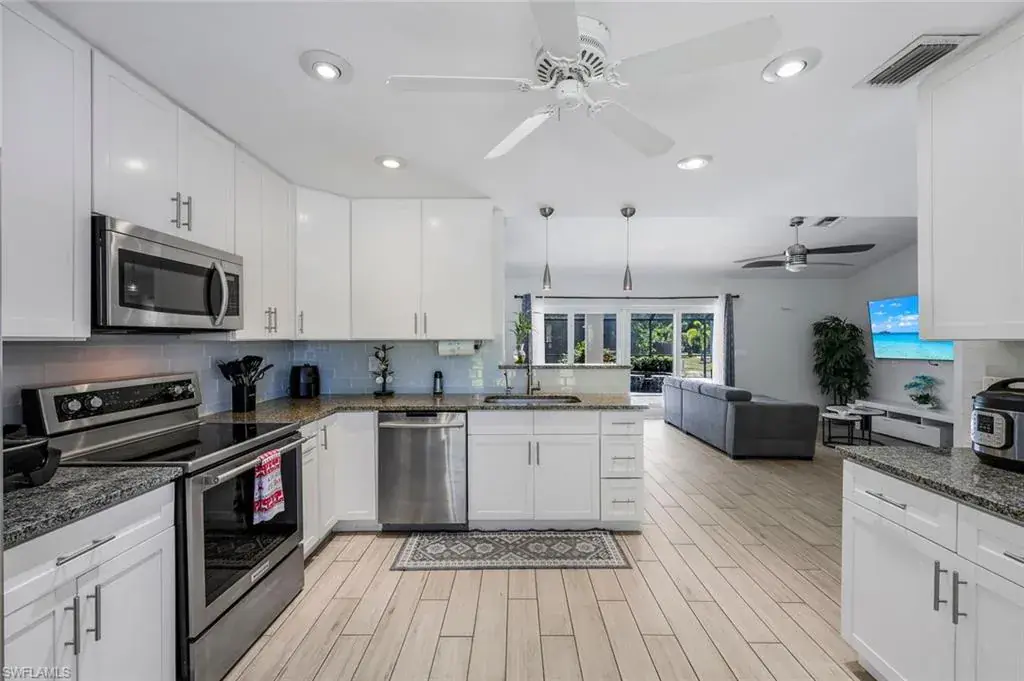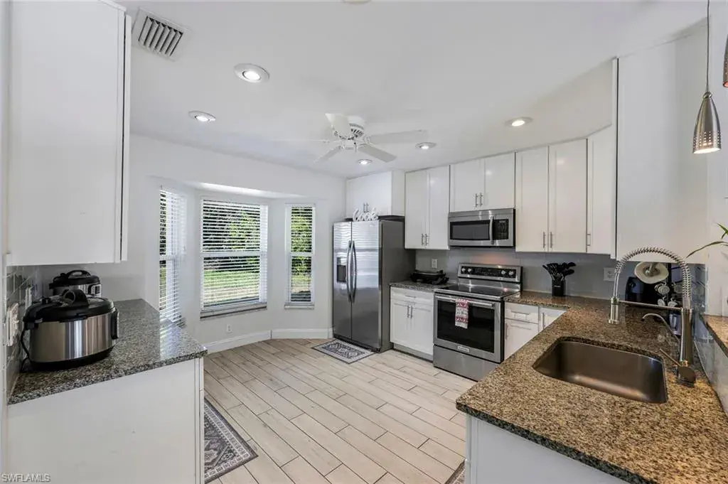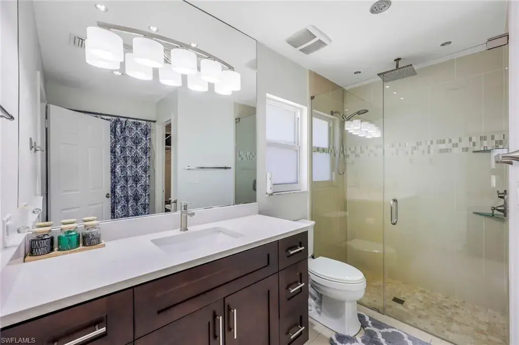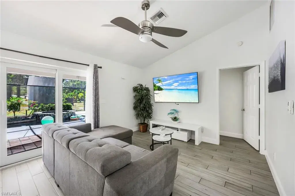 When it comes to purchasing an Estate home in Naples, you don’t always have to be 30 – 60 minutes away from the action. This is one of the lowest priced pool/spa home west of Wilson Boulevard in all of the Golden Gate Estates. This is your opportunity to be on over an acre of land that is 10 minutes to Coastland Mall, 15 minutes from Downtown Fifth Avenue, 20 minutes to Mercato, and under 25 minutes to the beautiful Gulf Beaches. You will find comfort in knowing that the roof was just replaced in 2023, all new hurricane impact doors, windows, and sliders installed in 2021, HVAC in 2020, and the well equipment in 2019 (maintained by Culligan and has a transferrable warranty). The split-bedroom floor plan has a wide-open living and dinning area in between. There is no carpet in this home; all tile flooring makes it easier to maintain. The rear lanai and screened pool/spa deck combine for over 1,200 sq. ft. of entertainment area for your guests. There is plenty of space behind the home; some cleared and even more with trees and foliage.