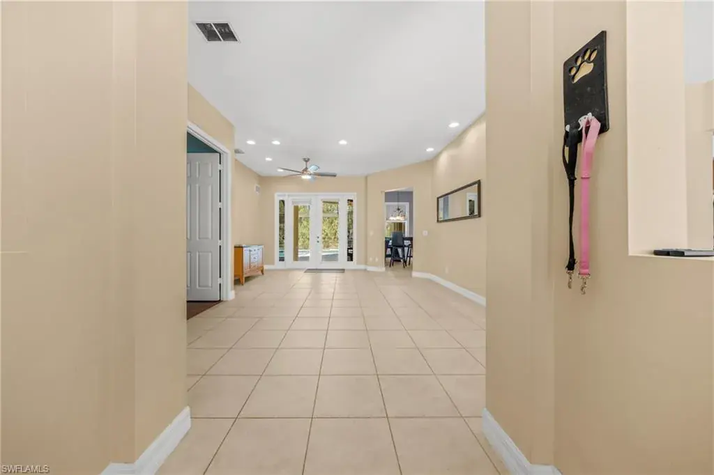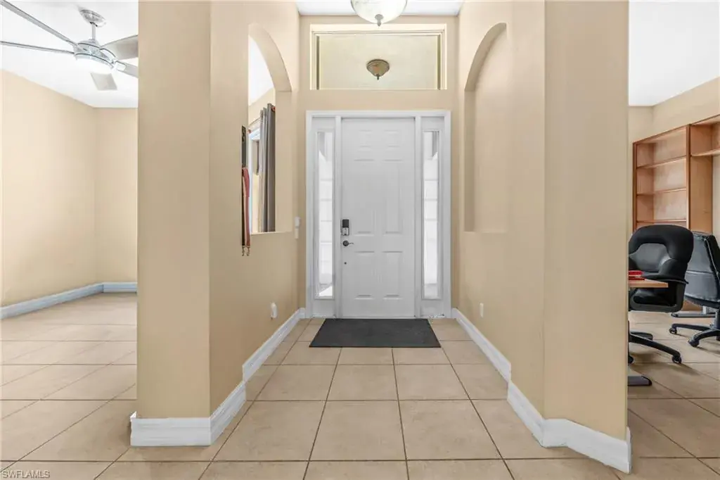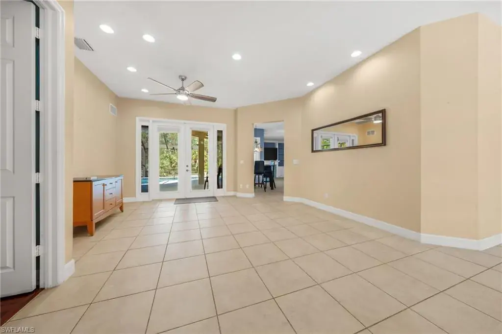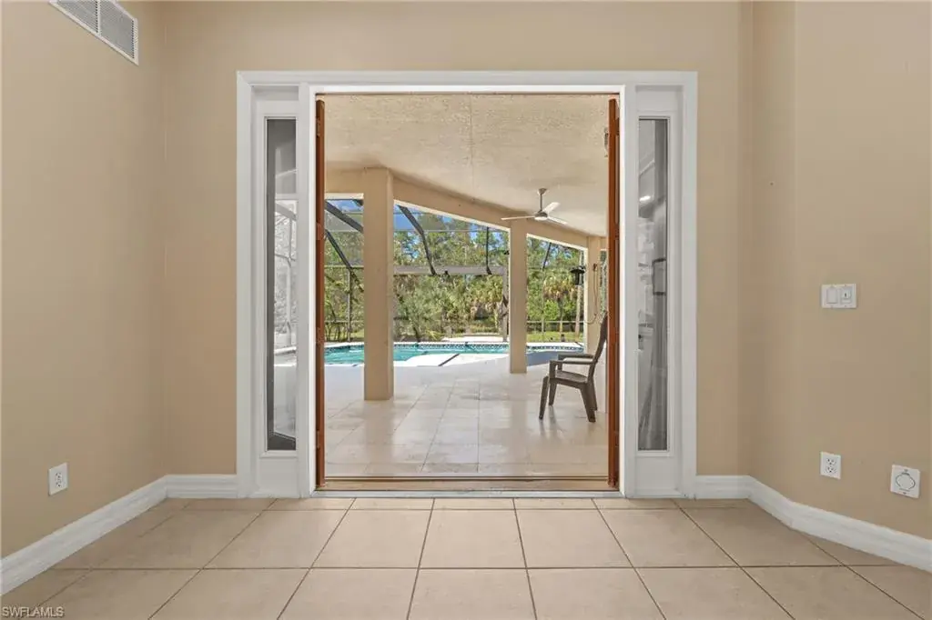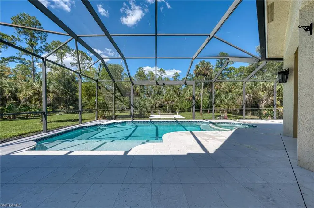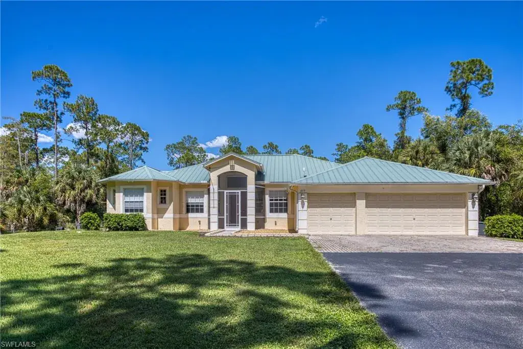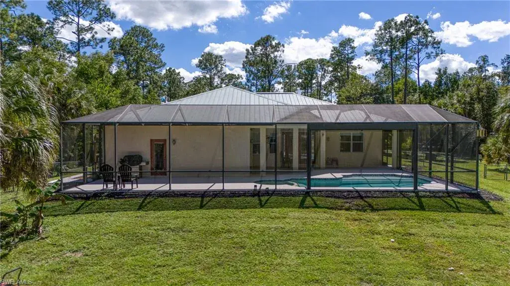 Escape to your private and quiet oasis in this stunning 2.73 acres of dry land, 4+ den and 3 full bath, 3-car garage attached, nearly 2,800 Sq Ft of living space. Heated pool home in one off the most conveniently located areas of Golden Gate Estates with a bonus building (1,200 work-shop/ garage) for your work, toys, or storage! Storms are afraid of you with an underground propane gas generator with up to two weeks of use! Metal Roof (2018) HVAC System (2019) The 3 L’s of real estate (location, location, location) ring true with this property on the NORTH side of 12th Ave NE away from the noise of the future Vanderbilt Beach Rd but close enough to it to enjoy with access from 8th St NE, just three quarters of a mile away! Greetings from your private gated entryway, passed the long driveway, and through the front foyer is impactful and will leave your guests impressed. The foyer branches off to the great room straight ahead, office to the left, formal dining area to the right, and kitchen just beyond. Your office includes gorgeous custom built in shelving and enjoys tons of natural light. The great room also enjoys tons of natural light and is flanked by French door access to the enclosed lanai. The kitchen is a chefs dream with gorgeous granite counters, center island, stainless steel appliances, elongated breakfast bar, and is perfect for entertaining with your second great room with a grand gas (propane) fireplace. The primary bedroom is a retreat with tons of space, walk-in closet, double vanity, separate tub & shower, and is oversized. Your guest suite enjoys privacy off the kitchen great room through a pocket door with private access to the enclosed lanai and use of the second full bath. The two remaining guest bedrooms boast plentiful closet space and close proximity to the third full bathroom as well. Entertaining any event is a breeze with great flow from the kitchen to the enclosed lanai with the pool/spa (heated with propane) and magnificent views of the completely fenced in backyard and even more wooded property (which is yours) beyond the fence. An extra bonus, enjoy the fire pit beyond the enclosed lanai for BBQ. Enjoy tropical fruits from mangos, soursop, dragonfruit, banana, plantain, pineapple, orange, lemon, Florida peach, elderberry, & coconut trees. Peace of mind is enhanced with your 3- car garage, roll down, accordion, and manual storm shutters, underground generator, gated access, brand new hot water heater, reverse osmosis system, water metric well (with service contract), and in a brand new rezoned school system. Enjoy close proximity to Wilson Blvd, Golden Gate Pkwy E, future access to Vanderbilt Beach Rd, easy access to Randall Blvd, with easy access to Immokalee Rd with tons of nearby shopping and dining options.