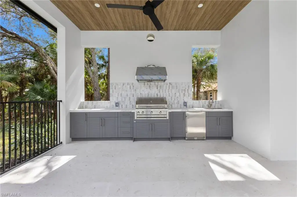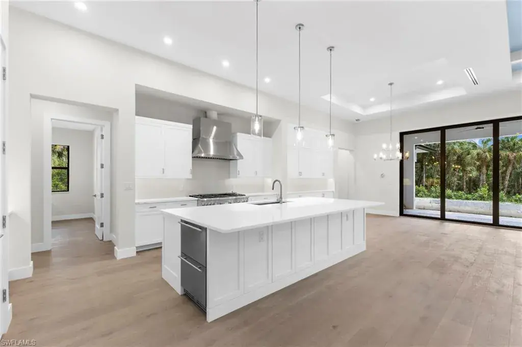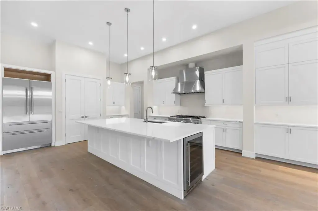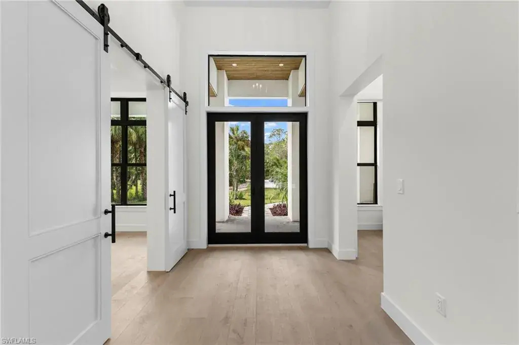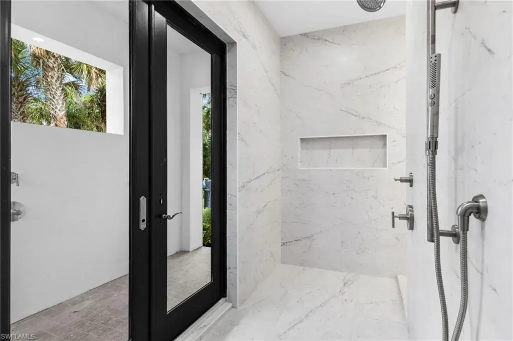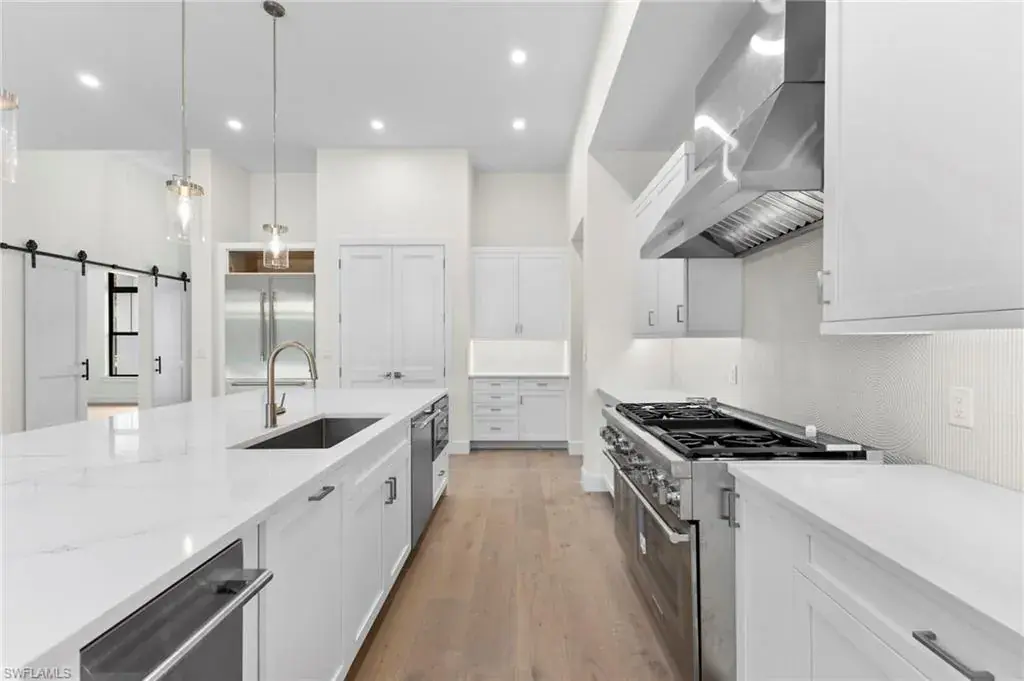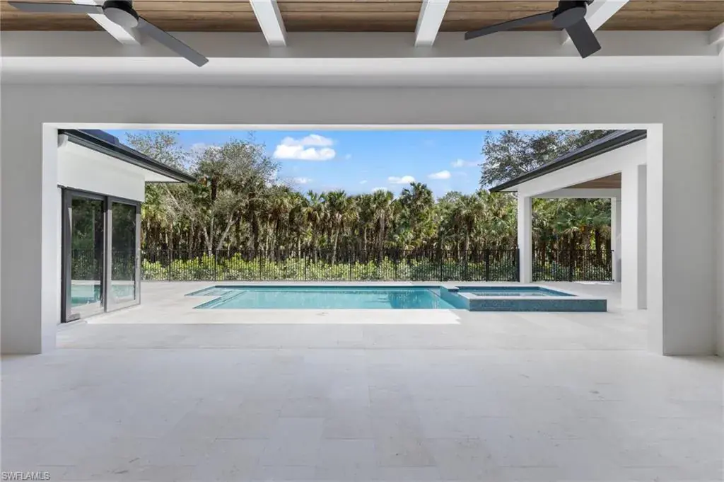 Soaring ceilings up to 15 feet create an airy and sophisticated ambiance, while the gourmet kitchen is a chef’s dream. It features high-end Thermador appliances, a 48″ gas stove, double oven, separate cooling drawers, ice maker, wine cooler, oversized refrigerator and freezer, and an extra-large walk-in pantry/butler’s kitchen. Situated in a FEMA X 500 elevated zone, flood insurance may not be required, adding peace of mind. Plus, with no HOA rules or fees, you’ll enjoy the freedom to truly make this property your own. Conveniently located just minutes from Publix, world-class shopping and dining, beaches, and all that North Naples has to offer, this estate combines privacy and accessibility like no other.