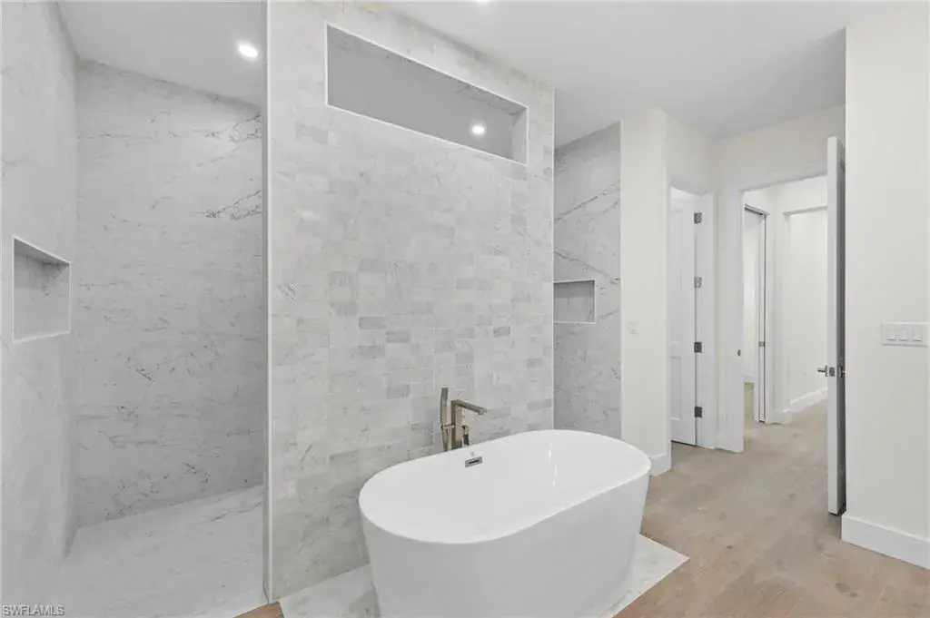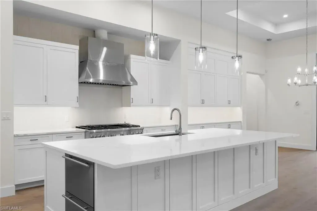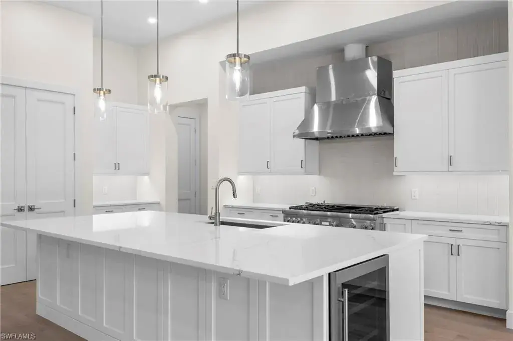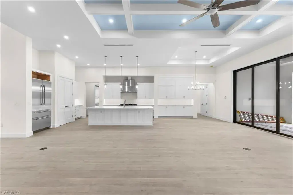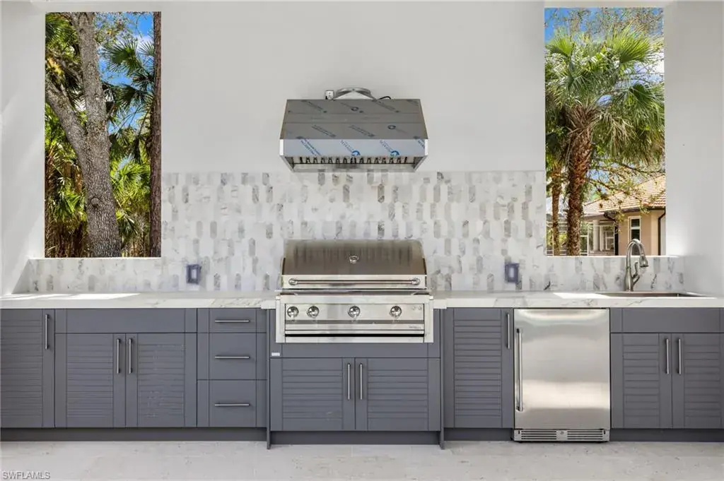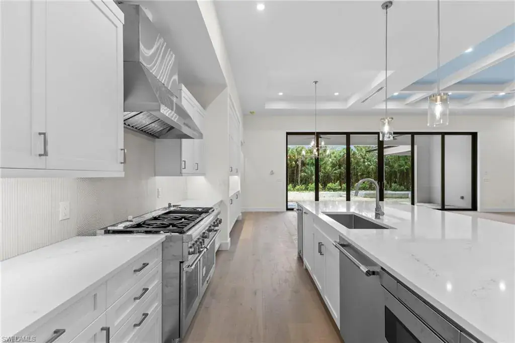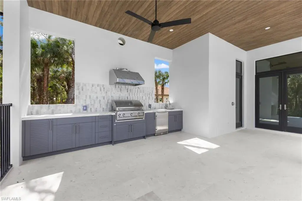 Soaring ceilings up to 15 feet create an airy and sophisticated ambiance, while the gourmet kitchen is a chef’s dream. It features high-end Thermador appliances, a 48″ gas stove, double oven, separate cooling drawers, ice maker, wine cooler, oversized refrigerator and freezer, and an extra-large walk-in pantry/butler’s kitchen. Situated in a FEMA X 500 elevated zone, flood insurance may not be required, adding peace of mind. Plus, with no HOA rules or fees, you’ll enjoy the freedom to truly make this property your own. Conveniently located just minutes from Publix, world-class shopping and dining, beaches, and all that North Naples has to offer, this estate combines privacy and accessibility like no other.