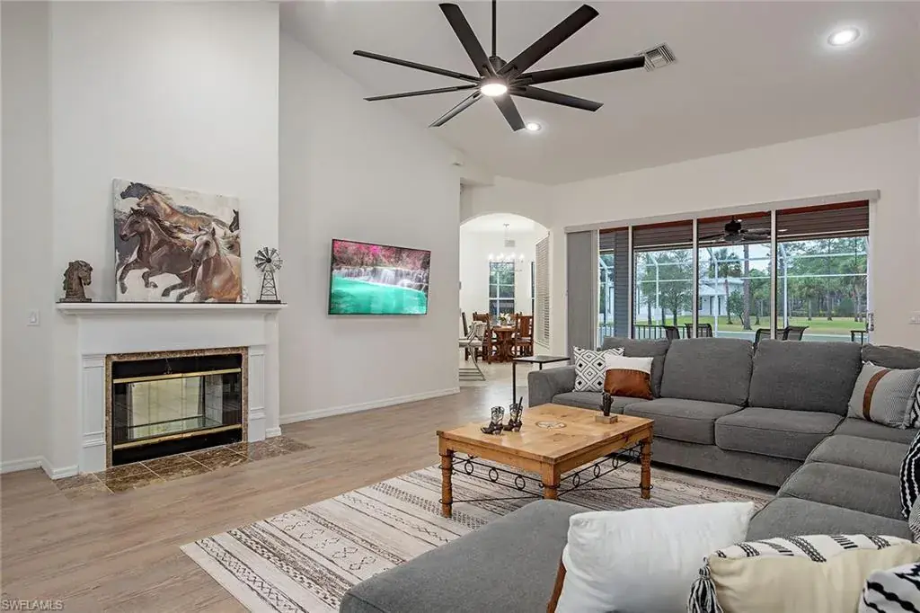 Discover your private oasis on a breathtaking five-acre property, fully fenced with an electric gate ensuring privacy and security. This elegant home boasts three bedrooms, plus an attached cabana/den ideal as an exercise room or a comfortable space for overflow guests. Open floor plan, high ceilings and a spacious great room with a double-sided fireplace going through to the dining room. The welcoming front porch invites you to relax and soak in the serene beauty of the lush, manicured grounds. The covered patio overlooks a sparkling pool offering the ideal setting for entertaining or simply unwinding in the tranquility of your surroundings. Enhancing the property’s appeal is a remarkable 60-by-40-foot concrete block building. This versatile structure is ideal for storing your RV, extra vehicles or crafting the ultimate workshop. It includes an air-conditioned section and a loft, providing ample space for storage or creative projects. Don’t miss the opportunity to make this extraordinary property your new home.