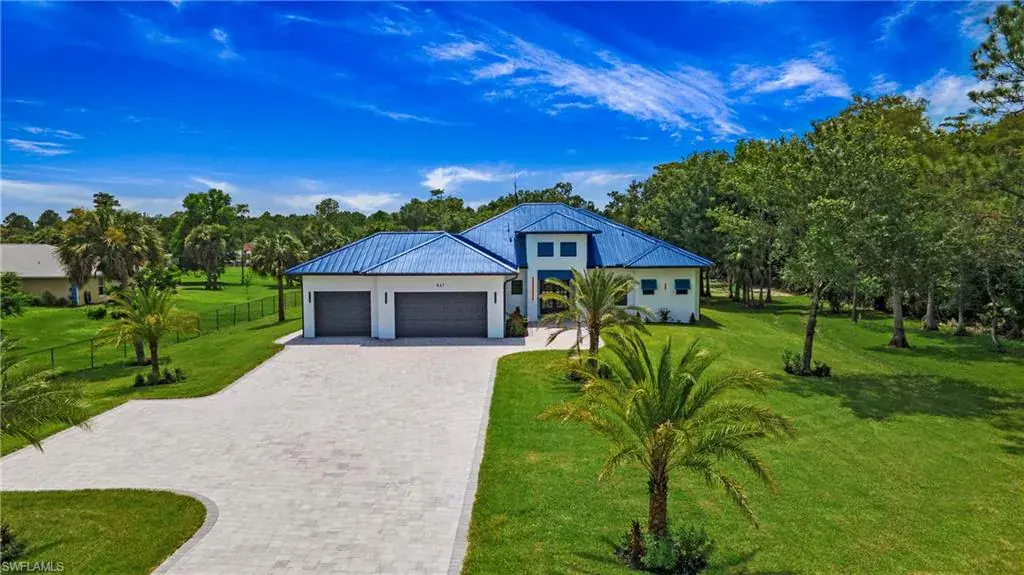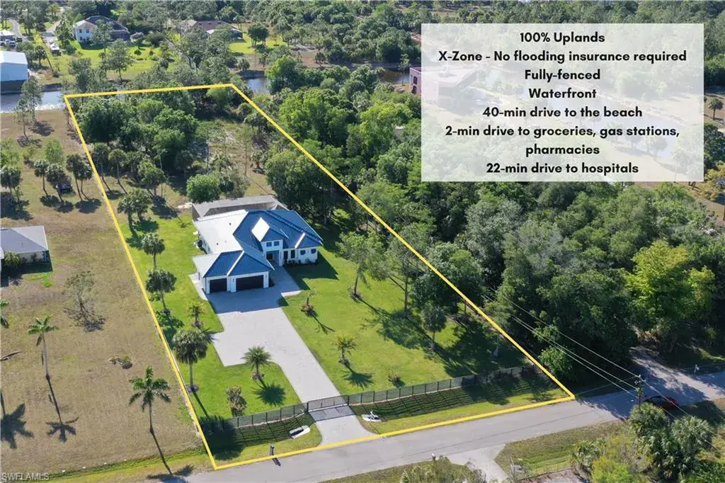 Introducing this stunning new construction home! Nestled on a spacious 2.5-acre land, this house offers a perfect blend of luxury and comfort. With 4 bedrooms plus a den and 3.5 bathrooms, it provides ample space for a growing family. The property boasts a remarkable 3-car garage, providing ample room for parking and storage. Enjoy the ultimate relaxation with a pool and spa, both heated and enclosed within a cage. Privacy is paramount, as the entire property is completely fenced and gated. Not only is this property visually appealing, but it is also functional. The land is entirely buildable and classified as 100% uplands. The metal roof adds a touch of elegance and durability. The driveway is paved with beautiful pavers, creating a grand entrance. Inside, the high-end Kitchen Aid Suite appliances, including a double oven and a 48-inch wide refrigerator, make cooking a joy. The whole house is equipped with a reverse osmosis system, ensuring clean and pure water throughout. To enhance energy efficiency, the house features spray foam insulation, extending even to the garage and lanai area. The lush green lawn is maintained with a sprinkler system, showcasing Floratan sod. This house is a true gem, offering a luxurious lifestyle in a serene and private setting. Don’t miss the opportunity to make it your own!