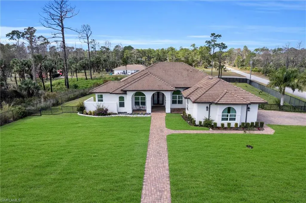 Welcome to your dream estate in Naples! This exceptional, fully fenced 2.81-acre property is 100% upland and features an automatic gated entrance, offering the perfect blend of luxury, privacy, and modern convenience. Now being offered for LESS THAN $300K BELOW appraised value, making this an incredible opportunity! This stunning home features a spacious 3-car garage, three A/C units, and state-of-the-art smart home technology, including security cameras throughout. The chef’s kitchen is a masterpiece, showcasing quartz countertops, brand-new appliances, and an Alexa-enabled refrigerator. The elegantly designed master bathroom includes a high-tech smart toilet for ultimate comfort. A whole-house reverse osmosis system ensures pristine water quality. Step outside to your private oasis—an outdoor kitchen and a heated saltwater pool and spa, which can be controlled from your phone, no matter where you are. Hurricane-proof automatic shutters and impact-resistant windows provide added security and peace of mind. This fully turnkey property is move-in ready, allowing you to start enjoying the Naples lifestyle immediately. Ideally located just off Wilson Blvd, with the upcoming Vanderbilt extension further enhancing its value, this prime Naples estate is a rare find.