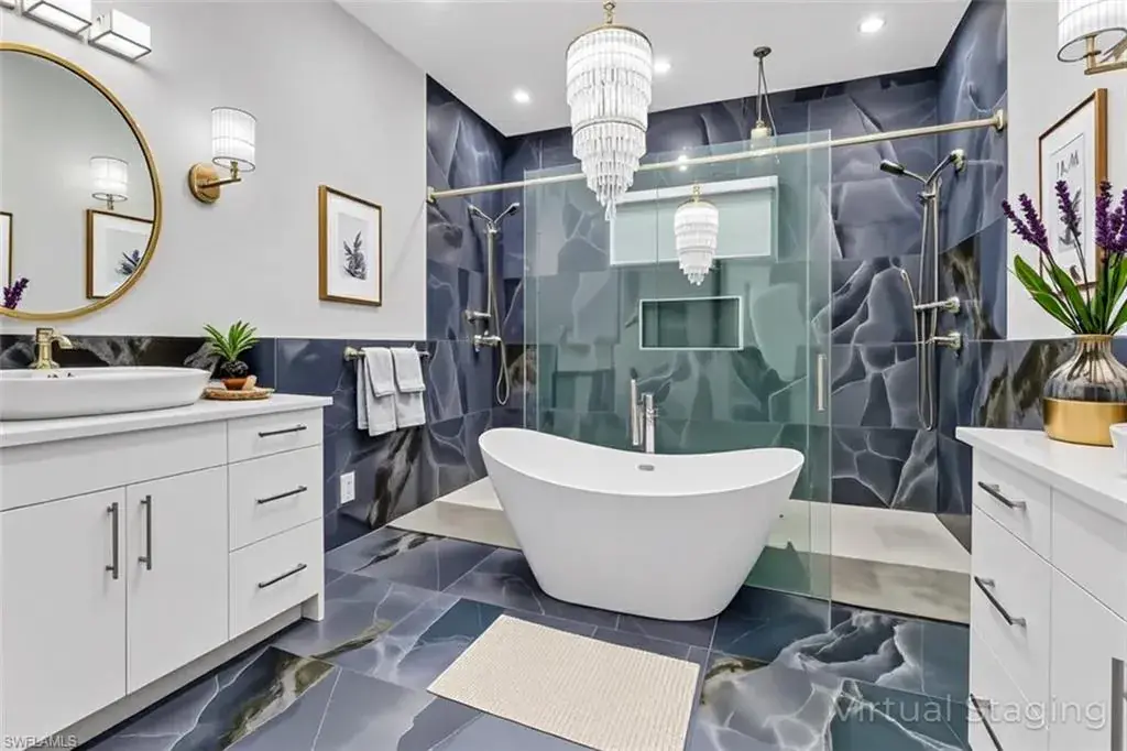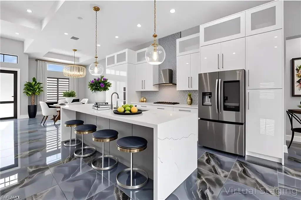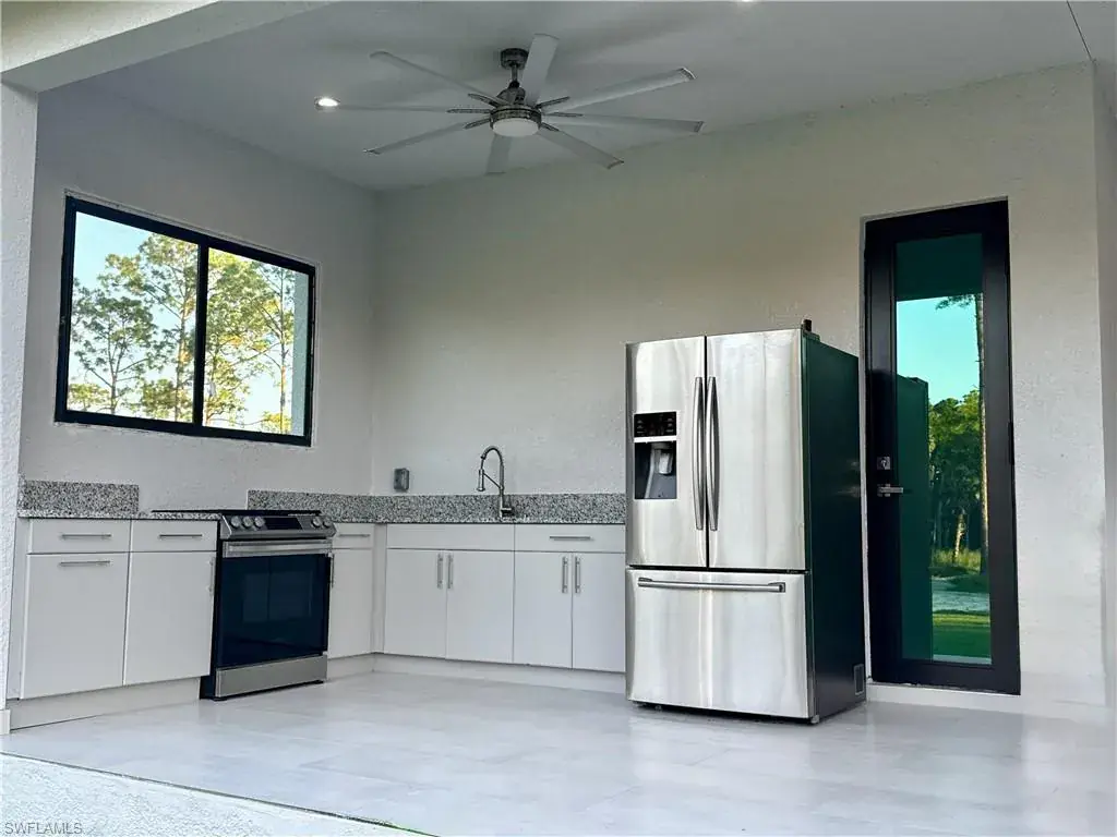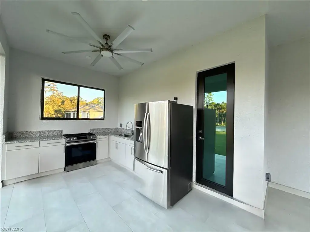 Home Features: Aluminum Roof, Spray Foam Insulated Roof Entire Home including Garage, Impact EE Windows/Doors/Garage Door, Driveway Pavers, Sprinkler system, Reverse Osmosis Entire House System, 24×24 Porcelain Tiles, Moen Plumbing Fixtures, Rain Shower heads, Quartz Bathroom Vanities, Logan 2 Panel Style Luxury Doors, Custom Doorframes, Wider Baseboards, Tray Ceilings, Electric Automatic Blackout window coverings, Ceiling Fans, Light Fixtures, Recessed lighting, SS Kitchen Appliances, Dual load Washer, Dual load Dryer, Quartz Kitchen Counters, Waterfall Counters in Kitchen, Outdoor Kitchen: Quartz Counters, SS Appliances, Gas Range, Refrigerator, Oversized Deep Sink, Custom Modern Extended Kitchen Cabinets which include: Slow Close Cabinets/Drawers w/Specialty Handles, 2 Built-In Pantries, Custom Spice Racks, Glass Tile Back Splash, SS Kitchen Bell.