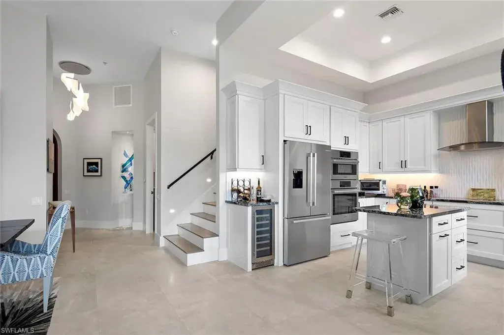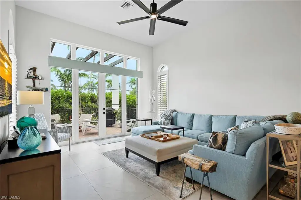 Experience the best of Naples waterfront living in this rarely available 2,200-square-foot, two-story townhouse-style condominium. Featuring three spacious bedrooms with en suites, this beautifully updated home is just steps from world-famous 5th Avenue’s fine dining, upscale shopping and renowned Naples Bay Resort. Renovated in 2022 just before Hurricane Ian, the property remained high and dry during the storm, according to the owner, and includes hurricane-impact windows and doors for added safety and comfort. Inside, enjoy 12-foot-high ceilings, abundant natural light, motorized blinds on the patio doors and plantation shutters on all other windows for a polished, luxurious finish. Boaters will love the 30-foot private dock with a 12,000-pound lift, providing deep water, direct Gulf access with no bridges. The home also includes a two-car garage and is pet-friendly. This home offers an unmatched combination of location, style and convenience. This is a must-see property for anyone seeking a prime waterfront lifestyle in the heart of Naples. Easy to show and competitively priced to sell so don’t miss your chance to own this exceptional residence.
