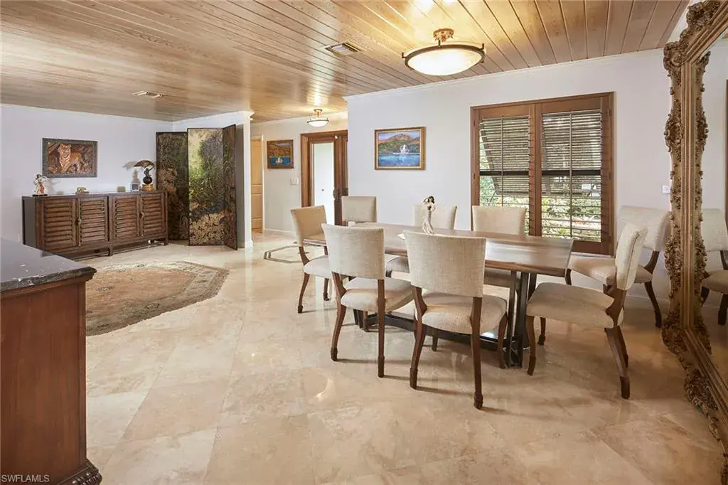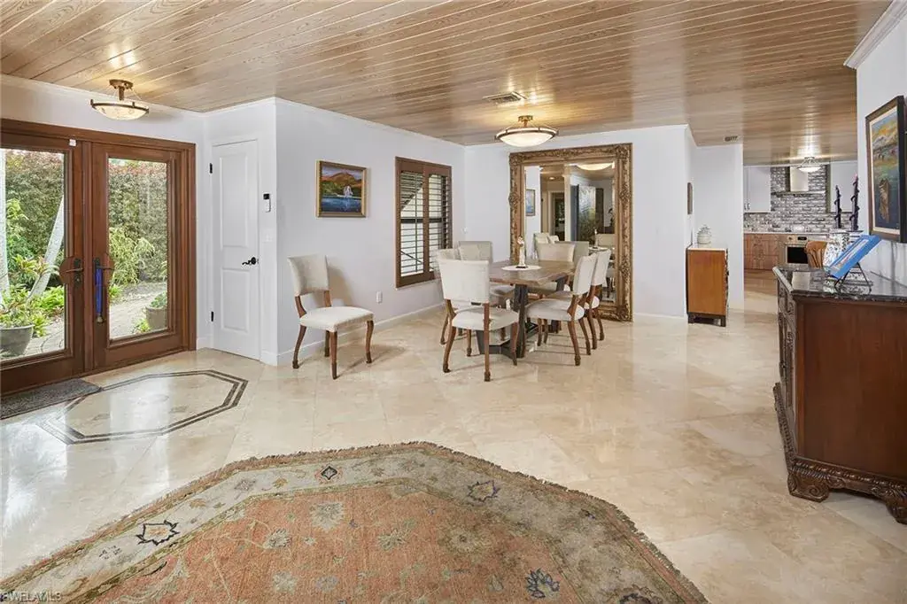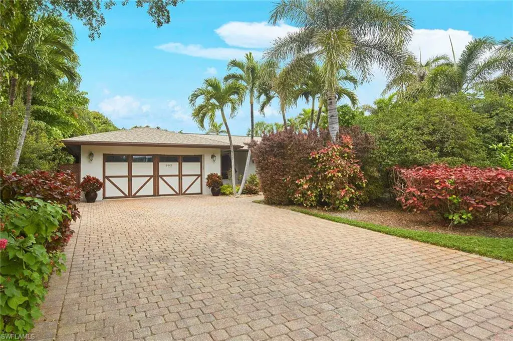 Amazing opportunity in downtown Naples just seven blocks to the beach! Old Florida charm exudes from this extremely well-maintained and loved property. Original home has great curb appeal due to mature vegetation, private walkway and paver driveway leading to a double attached garage. Featuring three spotless bedrooms, three full baths, living room, den and artist’s suite off primary bedroom, with access to another single attached garage. Many wood accents including ceilings and French doors as well as gorgeous marble throughout. Kitchen was completely remodeled with contemporary cabinets, counters and appliances. The large 8-by-23-foot lanai features a covered area for dining and lounging, with mature tropical landscaping featuring an Old Man palm tree and a charming saltwater pool. The entire 90-by-135-foot corner homesite is designed thoughtfully and well-hidden while being accessible. Value is in the lot and location, but home is in a move-in condition.