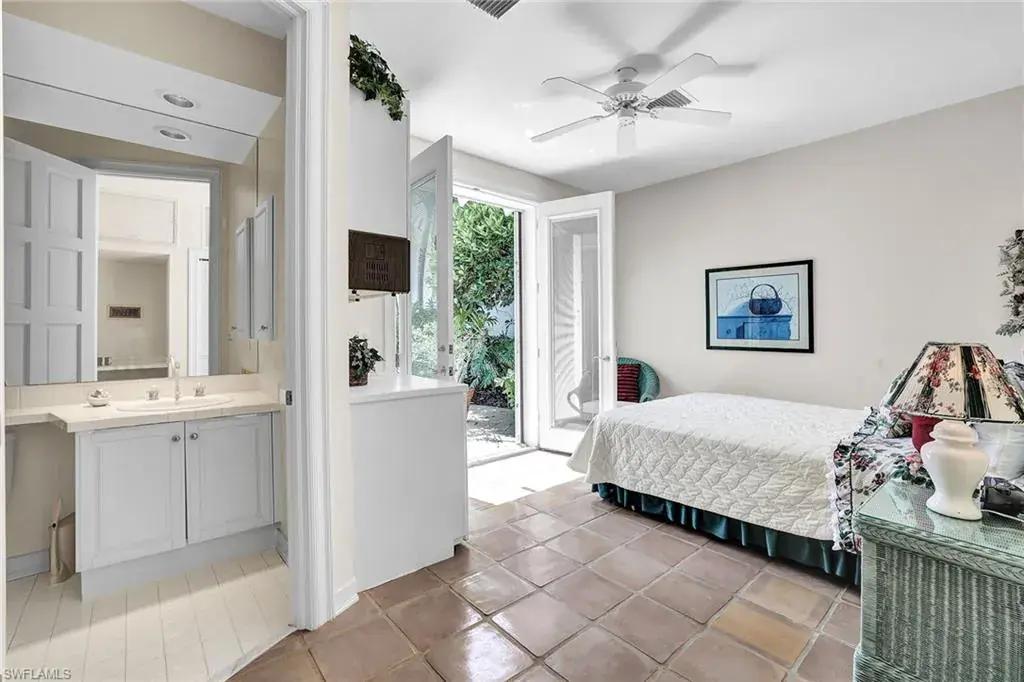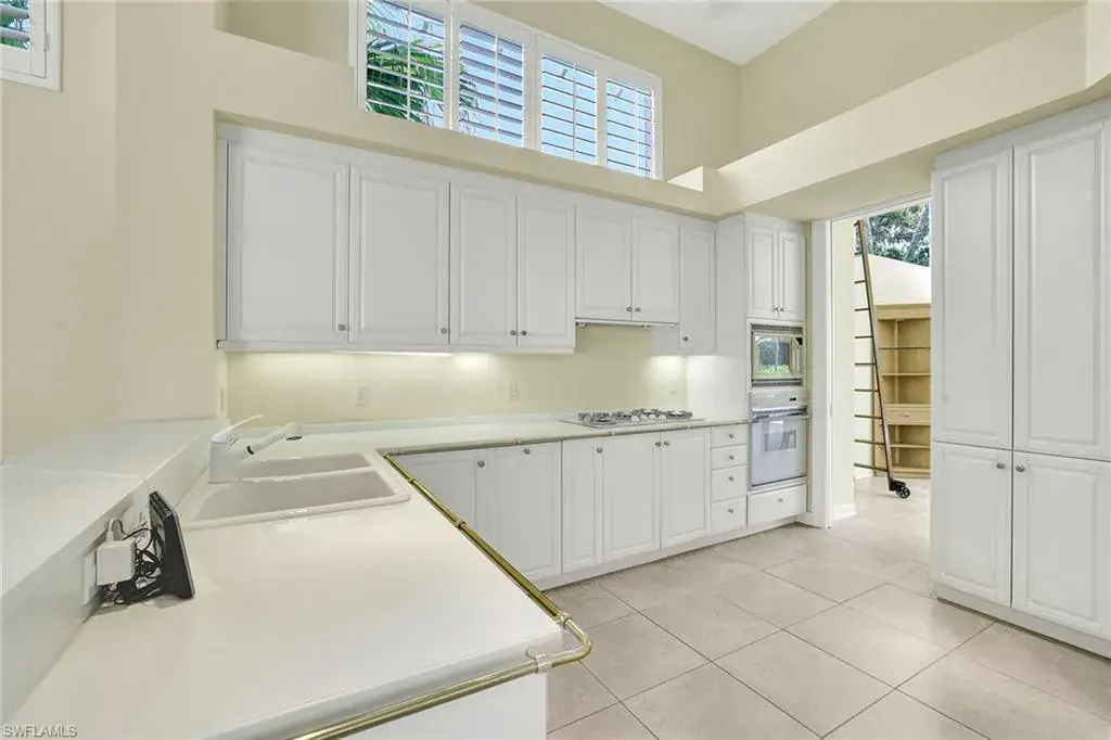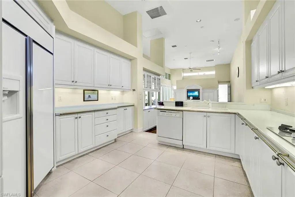Arguably the finest view in all of Grand Bay. This home is large. There are only a few homes with a two-room cabana in Grand Bay, and this lovely home is one of them. Enter the home through the expanded courtyard and into the spacious living room with soaring ceilings. Enjoy dining while looking out at the beautiful Pelican Bay golf course. A wide-open patio off the dining/living area allows one to enjoy sunsets and watch the golfers through the beautiful private vegetation. Two bedrooms are off the living area. There is a third bedroom off the family room with its private bath. The kitchen is conveniently between the dining room and the breakfast room/family room area. The cabana off the courtyard area gives your guests complete privacy. This property is for the buyer who wants to renovate from top to bottom and make it their own. You will be pleasantly surprised when you visit this courtyard home. It shows light and airy with a south-facing lot and lots of windows.