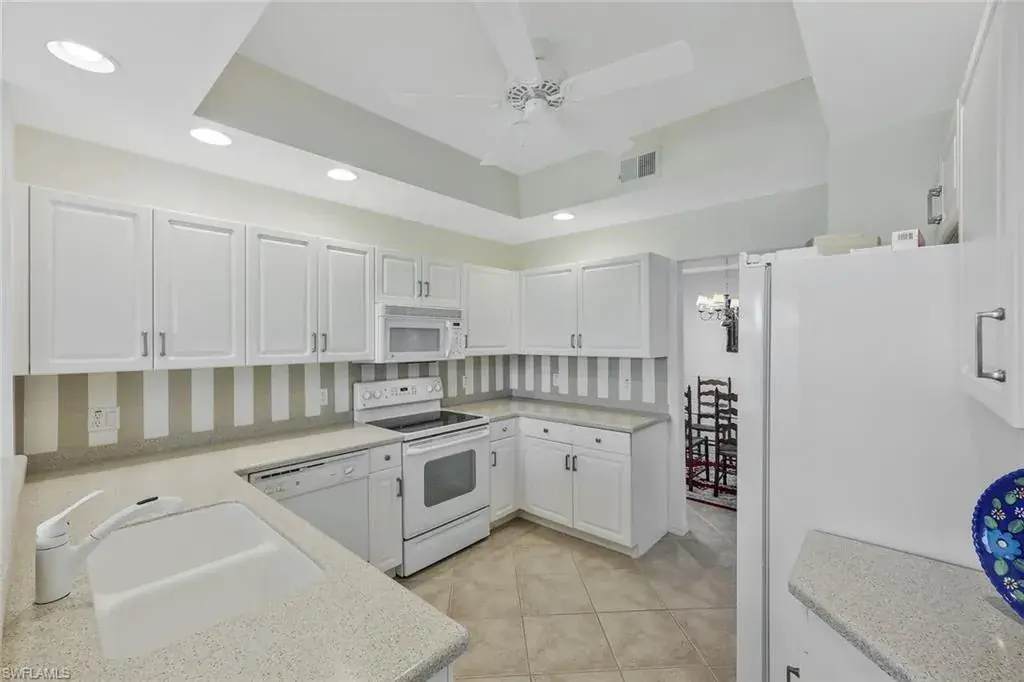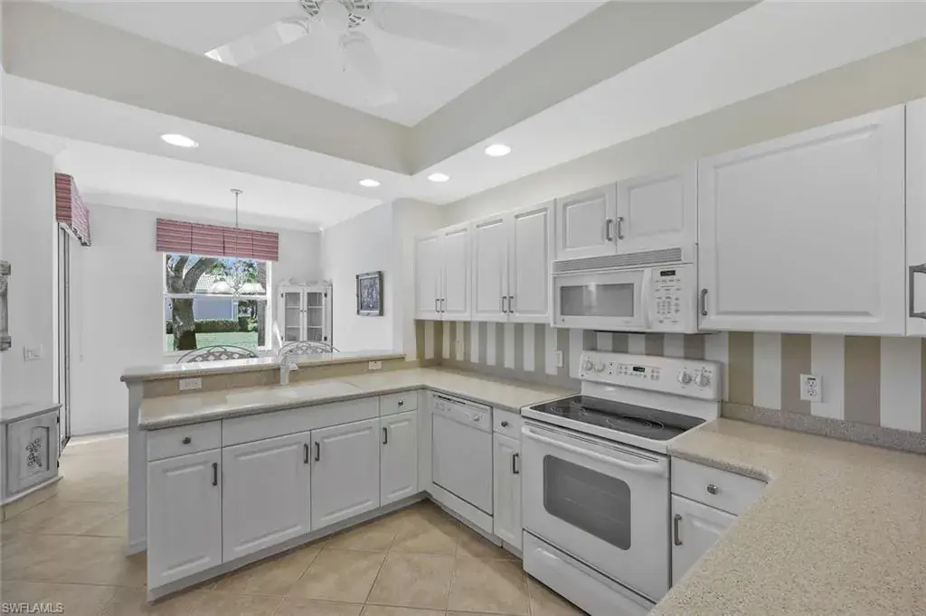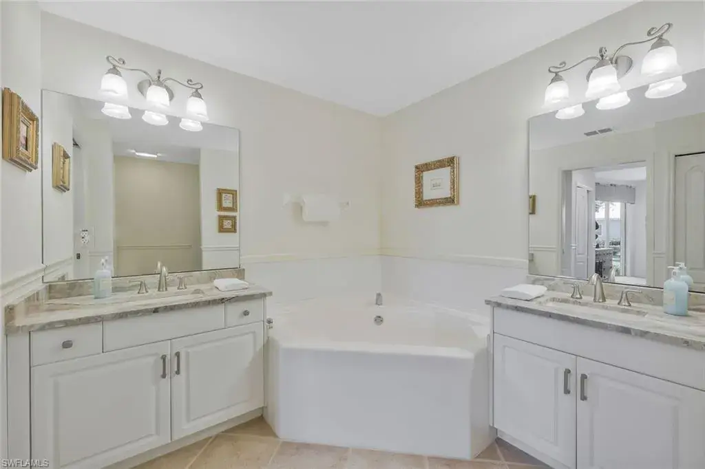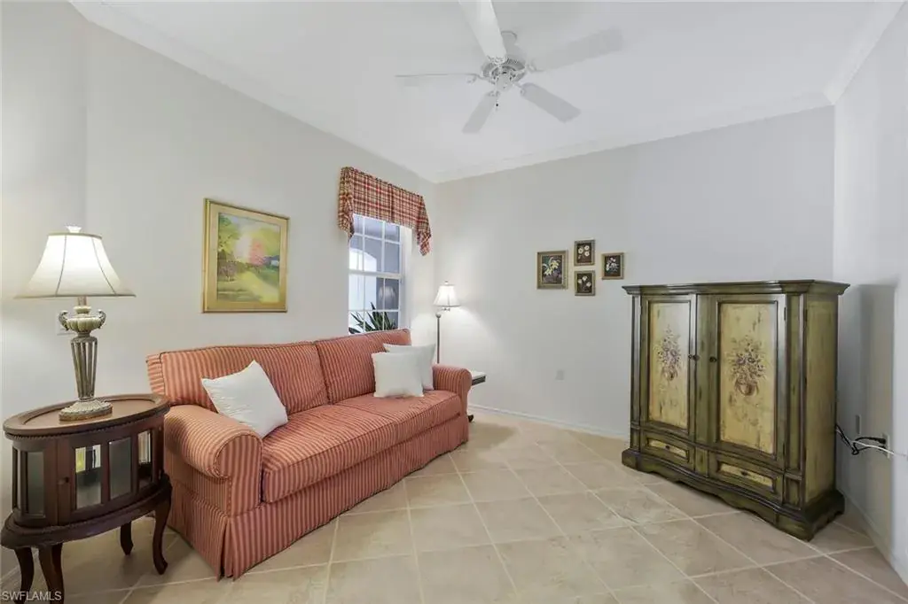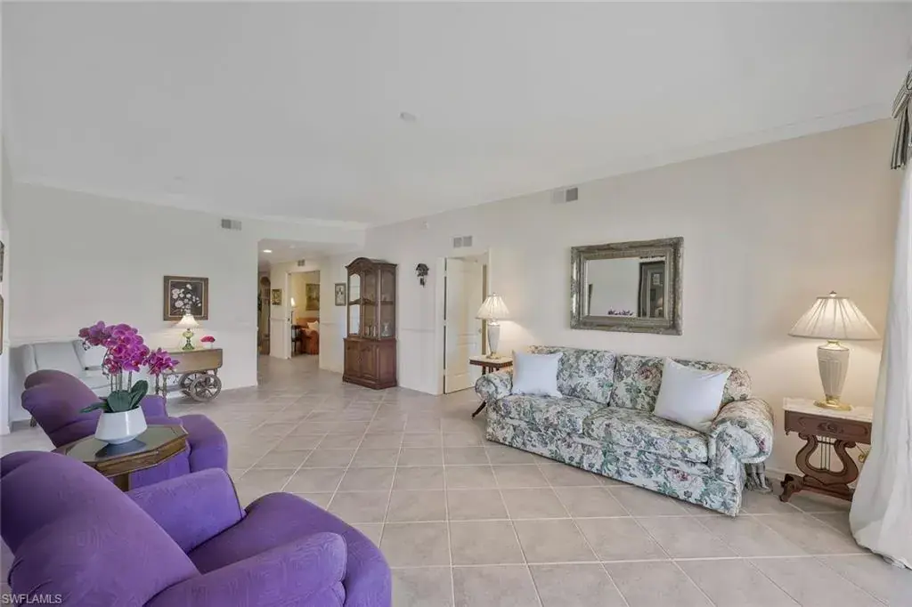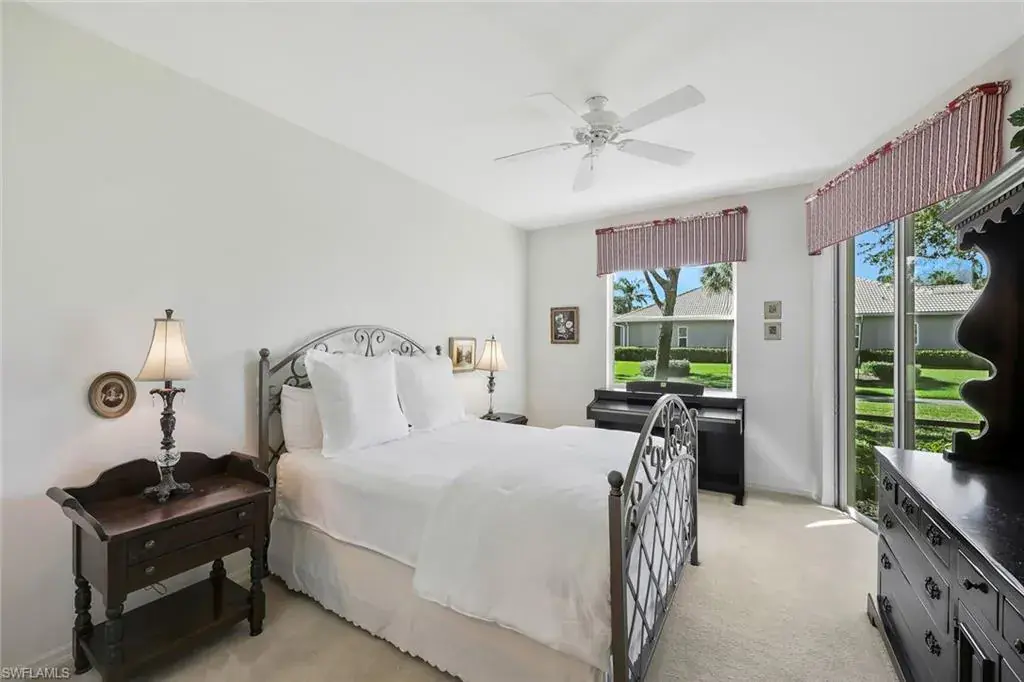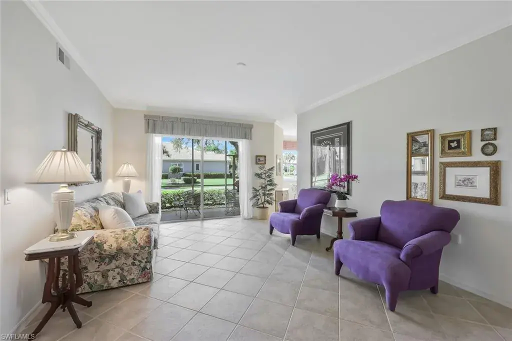This wonderful 1st floor coach home with attached 2-car garage offers a fantastic lifestyle for year round, seasonal, or vacation living in the popular north Naples bundled golf community of Cypress Woods. Golf membership is included. Grand Cypress Drive, a gated neighborhood with its own swimming pool, provides a beautiful, peaceful, and low density streetscape with a golf course to the rear. The 1,763 square foot coach home has lovely updated bathrooms, great entertaining space, a neutral color palate, and is ideally situated within Cypress Woods at a point furthest from I-75. Cypress Woods, known for its camaraderie, relaxed lifestyle, and continuity of club management, staff, and chefs, offers a very beautiful clubhouse, bar and grille, indoor and outdoor dining, golf course and range, pro shop, pickleball, tennis, and bocce courts, club meeting rooms, fitness center, resort-style and lap pools, spa, walking paths, and organized social activities. Television and internet services in the home are included in the HOA fees. For those looking for a real estate investment, the coach home may be rented out up to 12 times annually for minimum periods of 30 days. Cypress Woods is easily accessible to beaches, dining, downtown Naples, Mercato, Waterside Shops, Venetian Village, Artis Naples, and RSW airport. Noteworthy bonus – the owner has fully paid the $3,800 special assessment for the 2026 clubhouse kitchen improvement project.