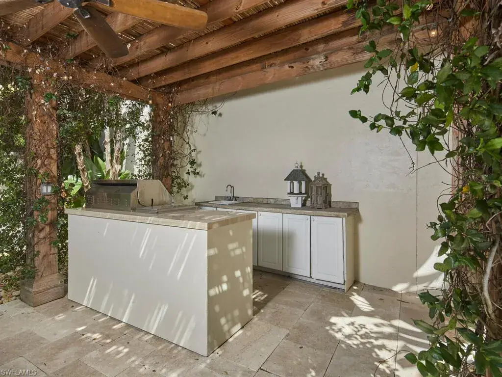 The courtyard oasis is the centerpiece of this home — featuring a pergola-shaded outdoor living space with a fully equipped outdoor kitchen, lush tropical landscaping, and seamless indoor-outdoor flow perfect for alfresco dining and entertaining. Inside, light-filled living areas open to serene garden and courtyard views, creating a sense of calm and connection to nature.