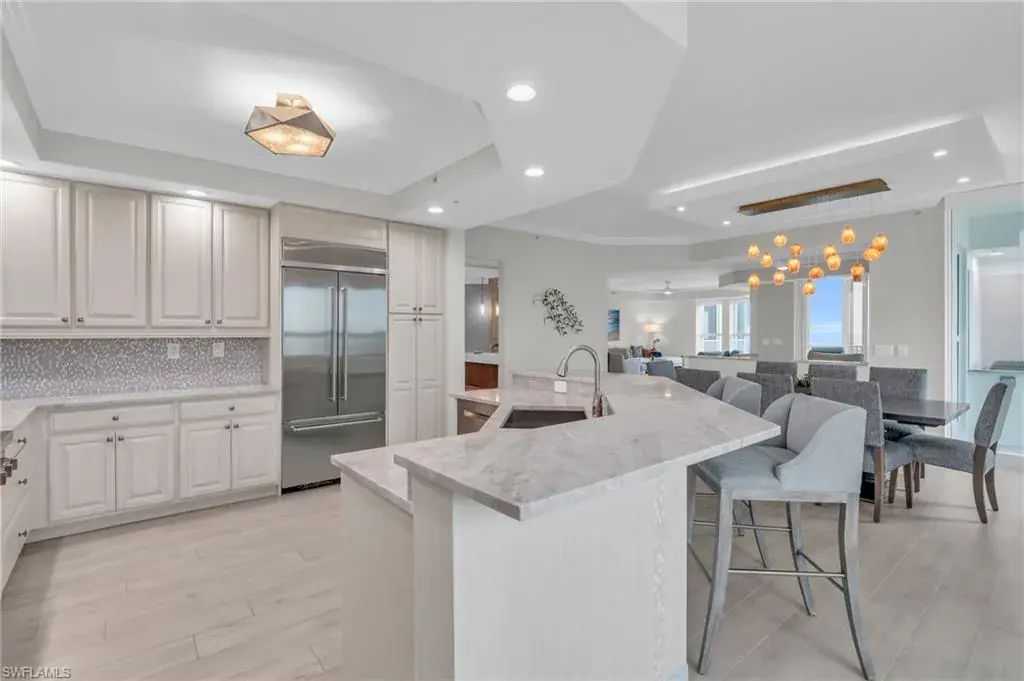 Step into a world of luxury as you exit your private elevator and are greeted with panoramic views of the Gulf of Mexico.. This spacious, end unit with ample windows is 3,404 sq. ft. with 3-bedroom and 3.5-bathroom. The gourmet kitchen is a chef’s dream, with custom cabinetry, gleaming granite countertops, a gas cooktop, double ovens, a built-in microwave, and a wine cooler – perfect for entertaining. Unwind on the expansive lanai, which is fully enclosed with hurricane windows, with wide views of Turkey Bay and indulge in mesmerizing sunsets over the Gulf. Enjoy the ultimate resort-style living with a short ride on a private shuttle, transporting you to the exclusive **Floridian Beach Club**, where you’ll be pampered with beachside service, a full-service restaurant and bar, luxurious beach chairs, towels, and an inviting pool. The Grande Excelsior offers unparalleled amenities, including its own private pool and spa, barbecue area, two underground parking spaces, a state-of-the-art fitness room, and a Concierge Center. The prestigious Club at The Dunes, the hub of this premier coastal community offers residents true resort-style living with on-site dining, tiki bar, a tropical resort-style pool and spa, a tennis center, and a fully-equipped fitness center with personal trainers available.Pet lovers rejoice – The Dunes is pet-friendly! Indulge in the ultimate Naples lifestyle, where coastal luxury meets active beach town living. Whether you’re relaxing by the pool, enjoying a beachside meal, or exploring the vibrant amenities, this community offers everything for an unmatched luxury experience. Your coastal paradise awaits!